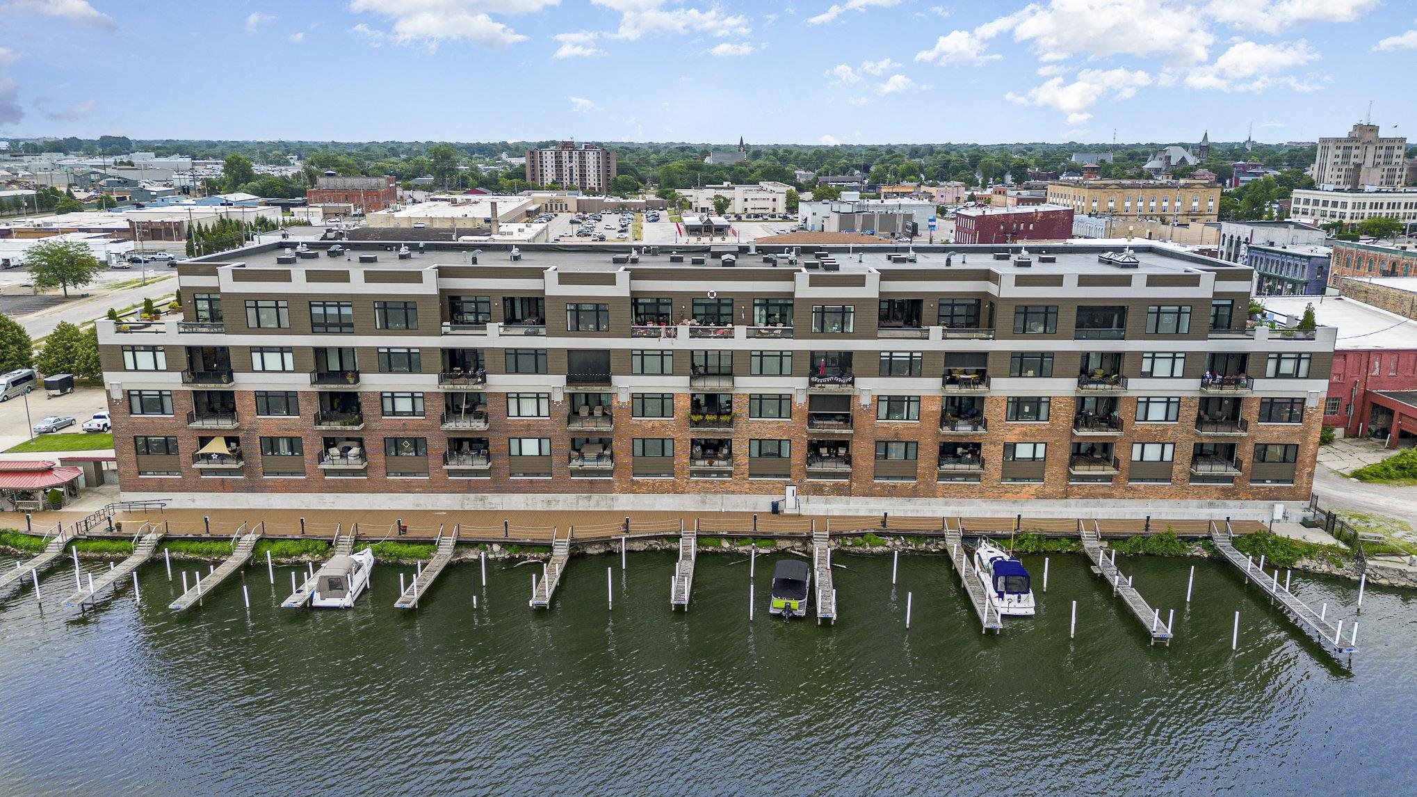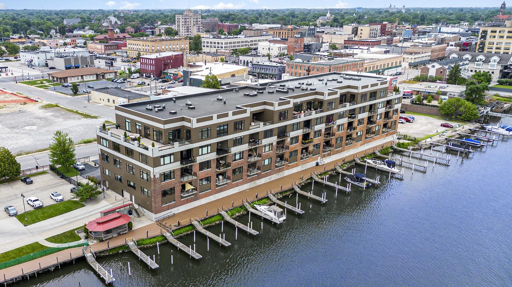 Welcome to a rare opportunity to own one of Bay City's most distinguished waterfront residences. This remarkable penthouse spans over 4,600 square feet of impeccably designed living space, featuring timeless finishes, exceptional craftsmanship, and sweeping views of the Saginaw River. With 4 bedrooms and 5 bathrooms, the residence is anchored by a luxurious primary suite offering private balcony access, a custom walk-in closet, and a distinctive his-and-her bathroom layout. For added indulgence, a private steam room provides the perfect space to unwind and rejuvenate. One of the bedrooms serves as a beautifully designed art studio, featuring a built-in sink, custom cabinetry, and a spacious work desk‹”perfect for artists, hobbyists, or anyone seeking a serene and functional creative space within the comfort of home. From the moment you enter through the custom mahogany front door, you're greeted by soaring ceilings and intricate woodwork throughout. The heart of the home is a true entertainer's dream: a fully outfitted gourmet kitchen designed with professional functionality in mind. It includes a hidden butler's pantry with its own sink, stove, and storage, ideal for catering or staff. The kitchen can also be closed off entirely from the main living area for added discretion during events or gatherings. The adjacent bar is thoughtfully equipped with four refrigerated drawers, two freezer drawers, a wine refrigerator, and a second dishwasher‹”perfect for seamless entertaining on any scale. The residence offers both a formal living room and a separate family room, each with its own fireplace, creating multiple cozy and sophisticated gathering areas. A private office with balcony access offers a serene setting for remote work with inspiring waterfront views. The expansive balcony offers panoramic views of the Saginaw River, Liberty Bridge, and passing freighters‹”ideal for hosting guests at sunset or enjoying tranquil mornings by the water. A unique feature of this penthouse is its dual-entry layout. In addition to the main entrance, a secondary, private entry leads to a distinct section of the home that can be closed off entirely‹”an ideal setup for live-in staff, guests, in-laws, a nanny, or catering teams. This thoughtful layout offers true flexibility without compromising the flow or luxury of the residence. Additional amenities include four dedicated parking spaces, generous private storage, and the largest boat slip in the community‹”perfect for housing your personal watercraft. Residents enjoy access to beautifully maintained common areas, including an elegant lobby and inviting shared spaces that includes a large event space with attached catering kitchen, a club room and a library. This one-of-a-kind penthouse offers the perfect blend of sophistication, flexibility, and stunning scenery‹”a rare opportunity for luxury living in the heart of Bay City. Available for exclusive in-person tours for pre-qualified buyers.