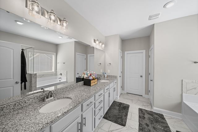 Come fall in love with this gorgeous, spacious home designed with the perfect layout for entertaining and everyday comfort. Offering approximately 2,192 sq ft of living space, this beautifully maintained property features 2 generously sized bedrooms and 2 full baths on the main level, including a large primary suite with a walk-in closet, dual sinks, soaking tub, and separate shower.