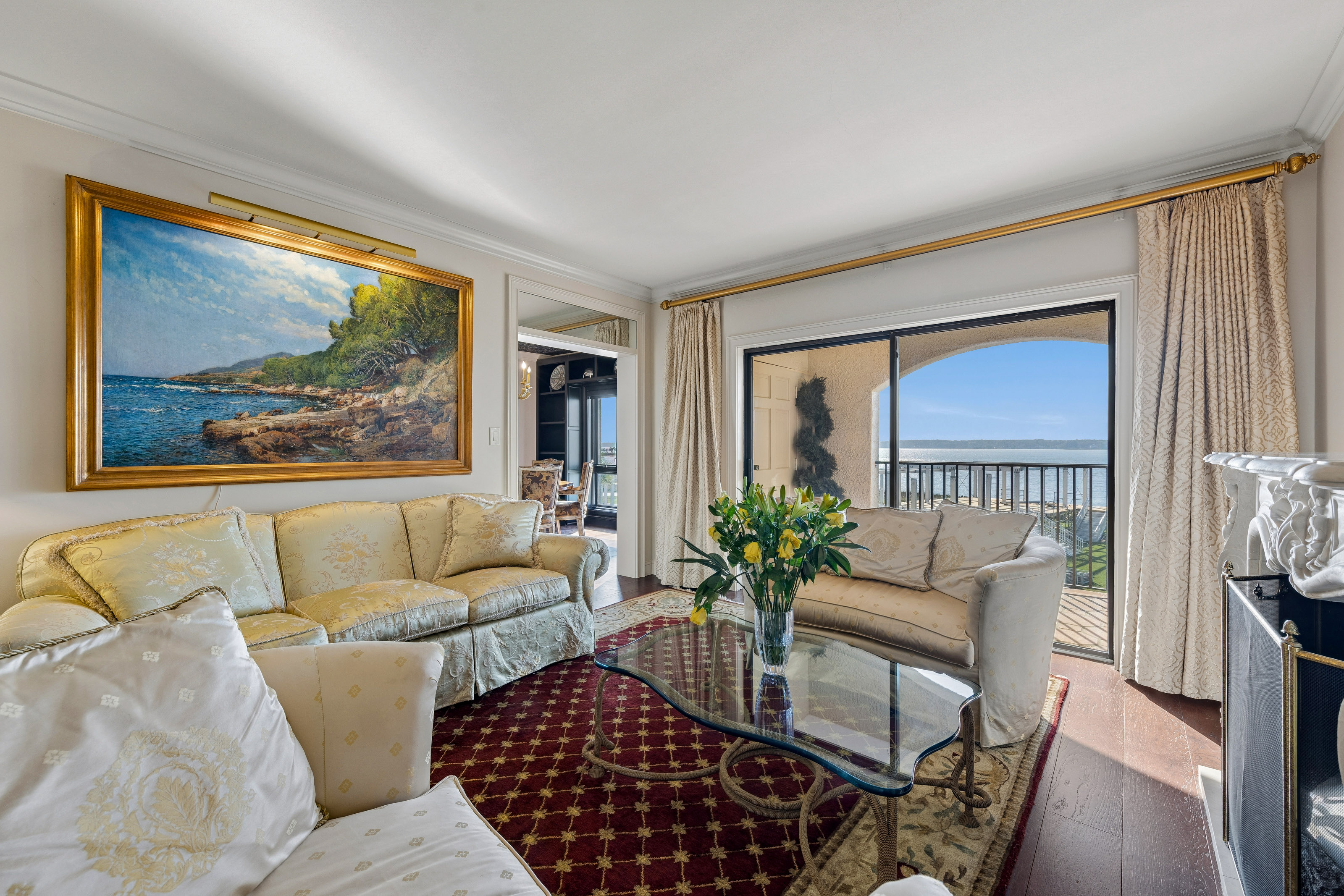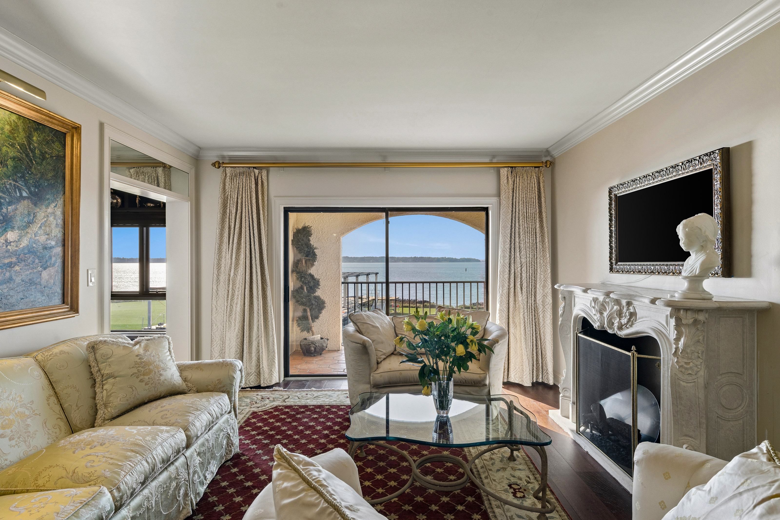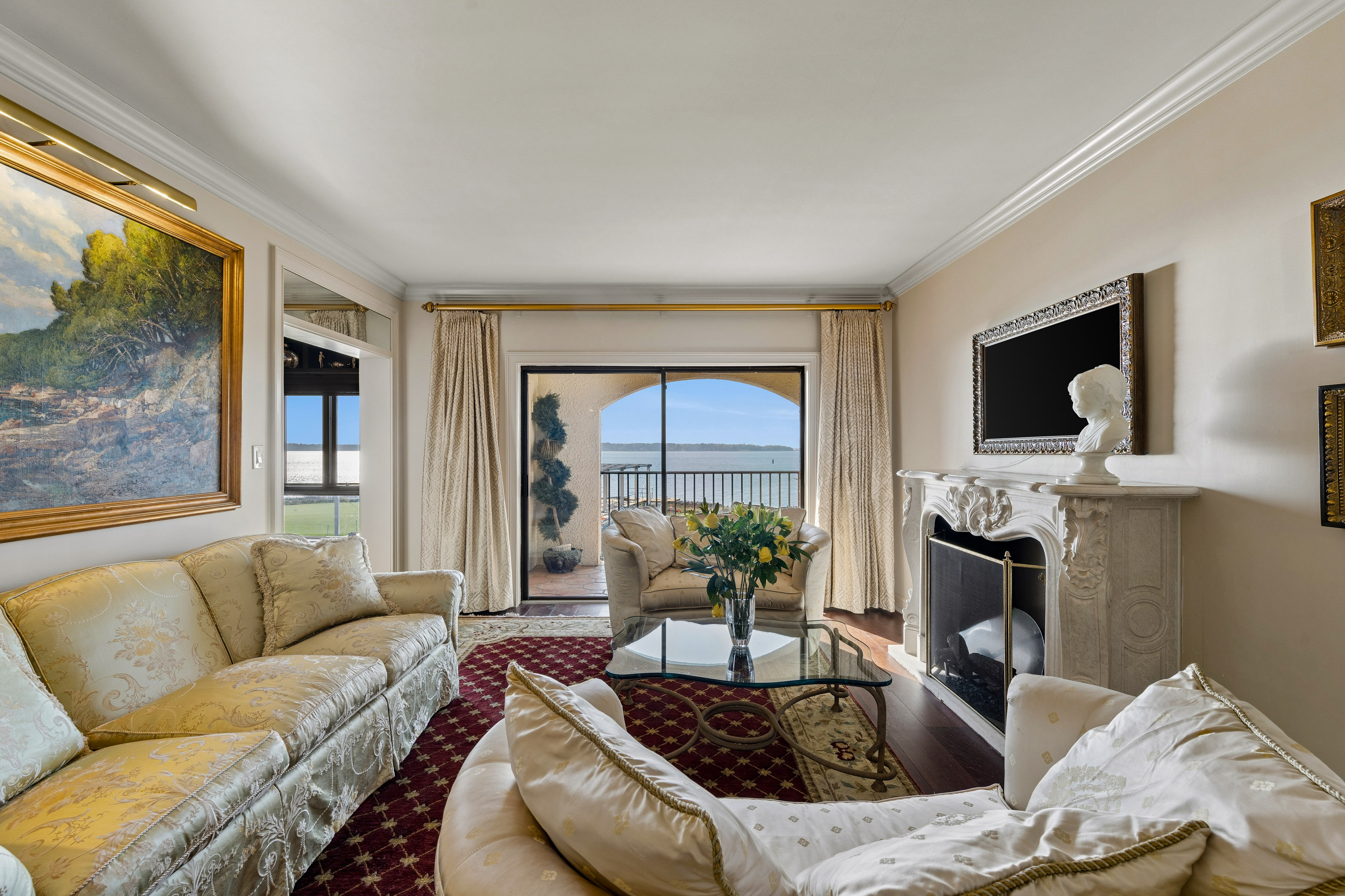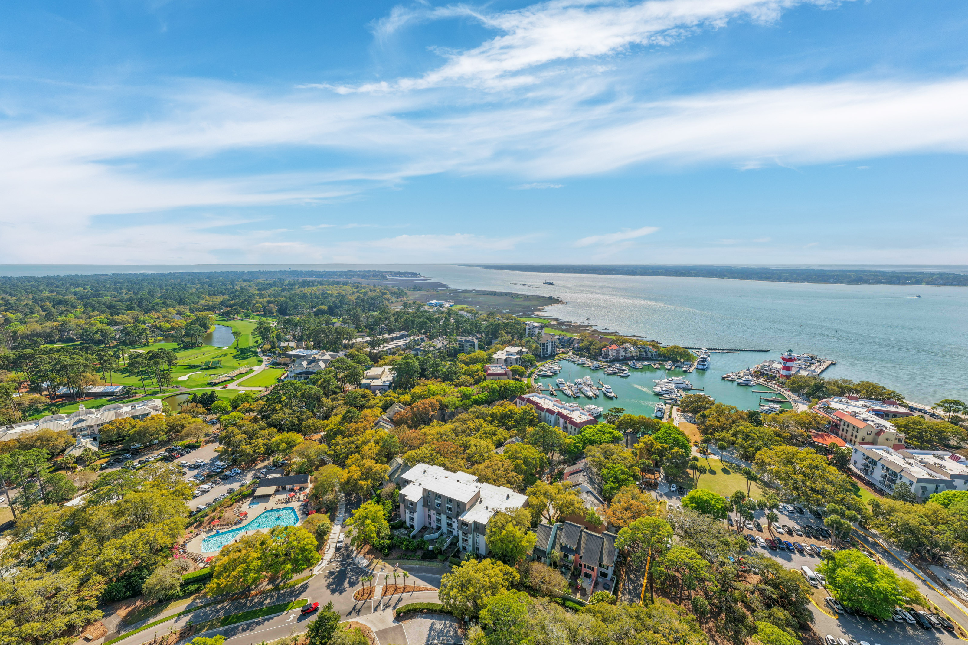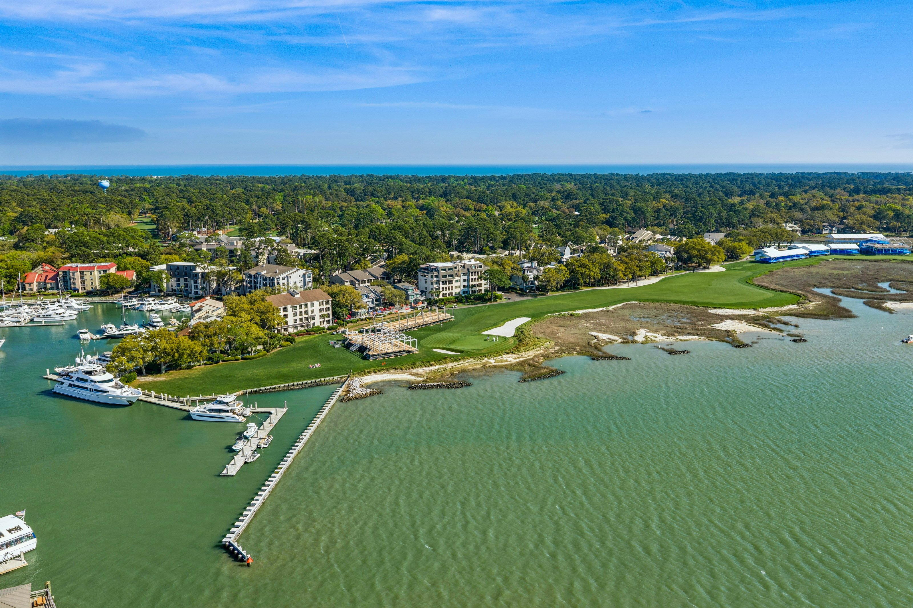 Rare opportunity for a waterfront balcony view on the 18th green of Harbour Town Golf Links. Enjoy breathtaking views of the Calibogue Sound as you watch players finish a notable round of golf and catch the stunning sunset from the islands most prestigious postcard spot. This 3 bedroom 2.5 bath condo boasts elegant style and elaborate finishes throughout. Renovated in 2021, the high-end kitchen includes quality finishes along with Subzero and Miele appliances. A Viking chewy ice machine makes for great entertaining in addition to the wet bar. Originally a 3bed/3bath, the high-end powder room has capped plumbing to make for an easy transition back to a full bath. Remote controlled draperies, 3M storm film on windows, along with all new interior mahogany doors. UV Air sanitizing system runs throughout ductwork. Centered in the marina, famous golf course and iconic restaurants, this location is the heart of Harbour Town.
