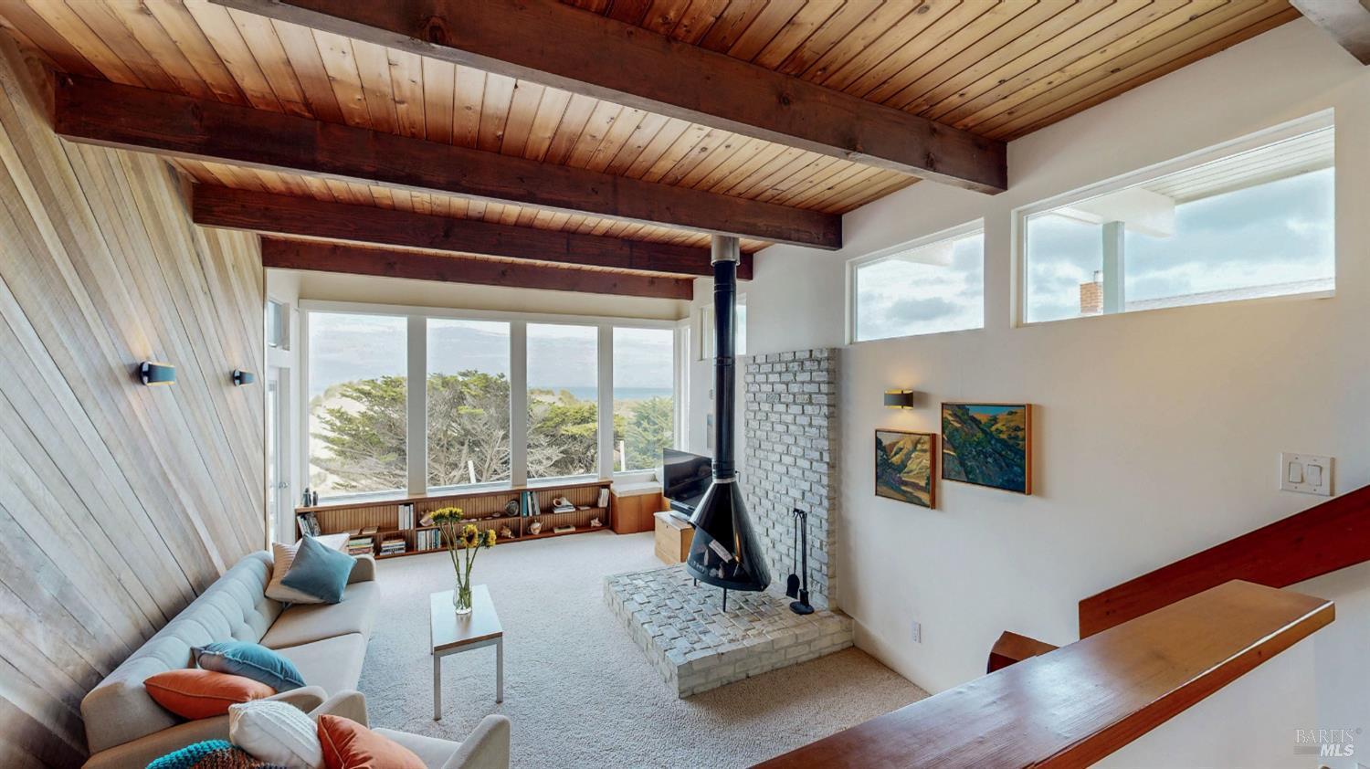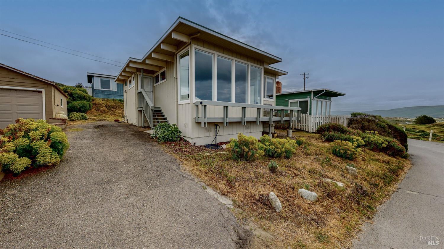 First time on the market since the home was built in 1972, this oceanfront home is situated in a coveted pocket of Dillon Beach known as Portola Beach. Magnificent ocean and bay views framed by large picture windows span Pt. Reyes and Bodega Head Peninsulas. Flying coastal birds and swaying dune grasses capture natures rhythm from this front row seat. Inspired by Sunset Magazine back in the day, this 1970s coastal modern-styled home features high open beam ceiling and wood sourced paneling of pecan, redwood, and Douglas Fir. A balcony opens from living room extending living space bringing in the outdoors. The back deck, with kitchen access, has a privacy wind protection screen - perfect for grilling and relaxing. On cool evenings, cozy up to the fireplace in the living room. The allure of the ocean with the sound of breaking waves and stunning sunsets await you.