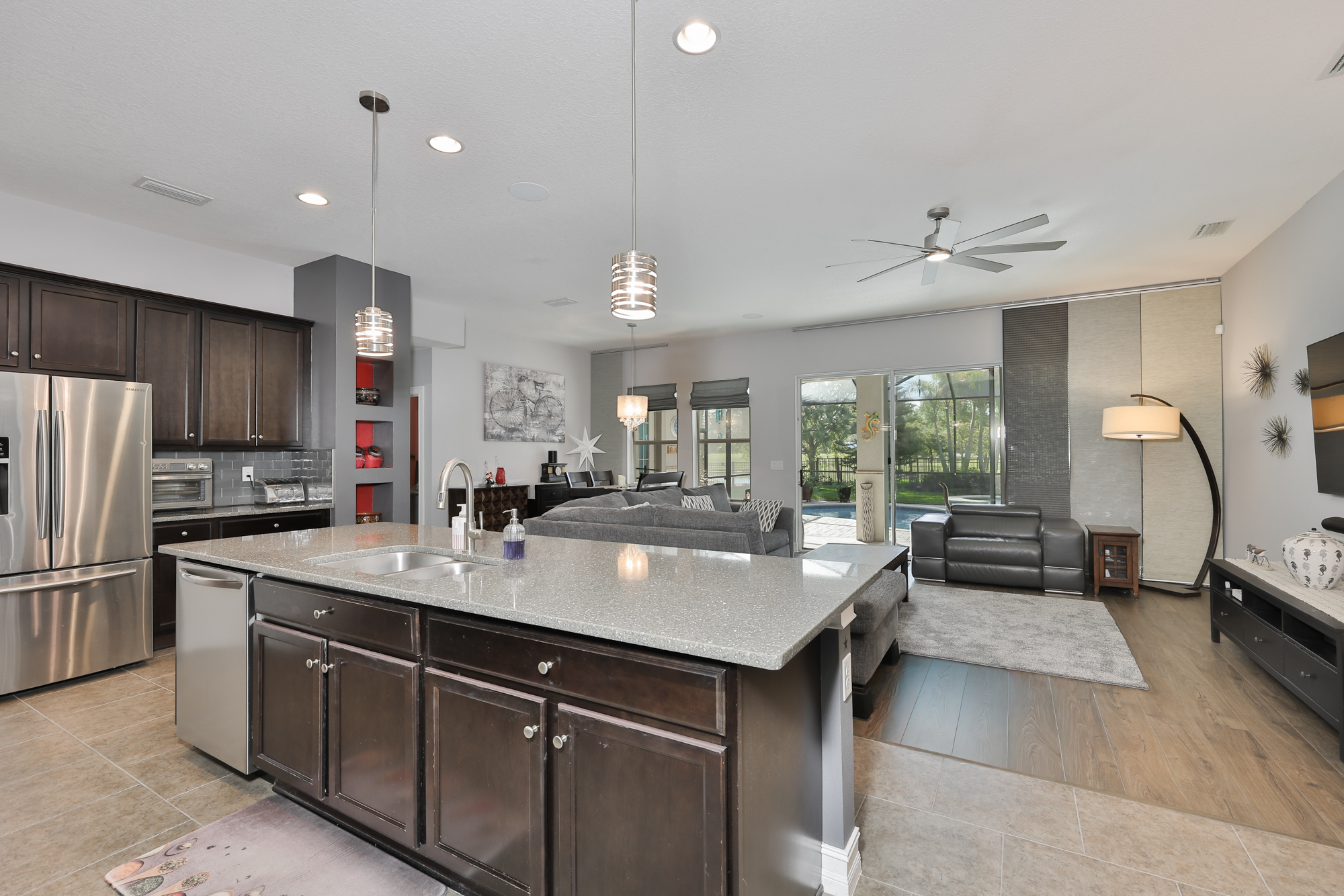 6707 Park Strand Dr. Waterset Saltwater pool & spa Pond view 2538 sq ft 3BR office/4thBR den/bonus room flex room 3 Bathrooms built by Cardel Welcome to this stunning Cardel-built home in the highly sought-after Waterset community, featuring a heated saltwater pool and spa with tranquil pond views and beautifully landscaped surroundings. Designed for effortless indoor-outdoor living, expansive sliding glass doors open to a large paver lanai that is pre-plumbed for gas, water, and electric, making it ready for creating your dream outdoor kitchen. Enjoy summer days poolside in this peaceful atmosphere, a perfect place to unwind and relax! Inside, a versatile split floor plan offers exceptional flexibility with three bedrooms, a dedicated office (easily a fourth bedroom), a front flex room (think library, study or even formal dining room), and an additional bonus space ideal for a den, playroom, or hobby area. The central kitchen is both stylish and functional, showcasing quartz countertops, wood cabinetry, stainless steel appliances, a gas stove, an eat-in area and counter seating, making it ideal for dining and entertaining. The spacious 2.5-car garage provides room for extra storage, a golf cart, motorcycles, or recreational gear. Additional upgrades and conveniences include a tankless water heater, whole-house water softener, smart pool controls accessible from your phone, an irrigation system on reclaimed water, a security system, surround sound with lanai audio and in-ceiling speakers in the living room, ceiling fans and lights that are remote controlled, and a fully fenced yard with a back gate to allow access to the pond. A one-year home warranty is included for added peace of mind. Living in Waterset means embracing an active and vibrant lifestyle with multiple pools, fitness centers, pickleball and tennis courts, basketball courts, playgrounds, miles of walking/biking trails, a splash pad, and dog parks. The community hosts outdoor concerts, food trucks, and family-friendly events throughout the year. A multi-sport complex and multiple schools are located within the community and the close proximity to major highways allows easy access to Tampa, St. Pete, Sarasota, Gulf beaches, and Disney. Dont miss your opportunity to own this exceptional home in one of the Tampa Bay areas premier communities!