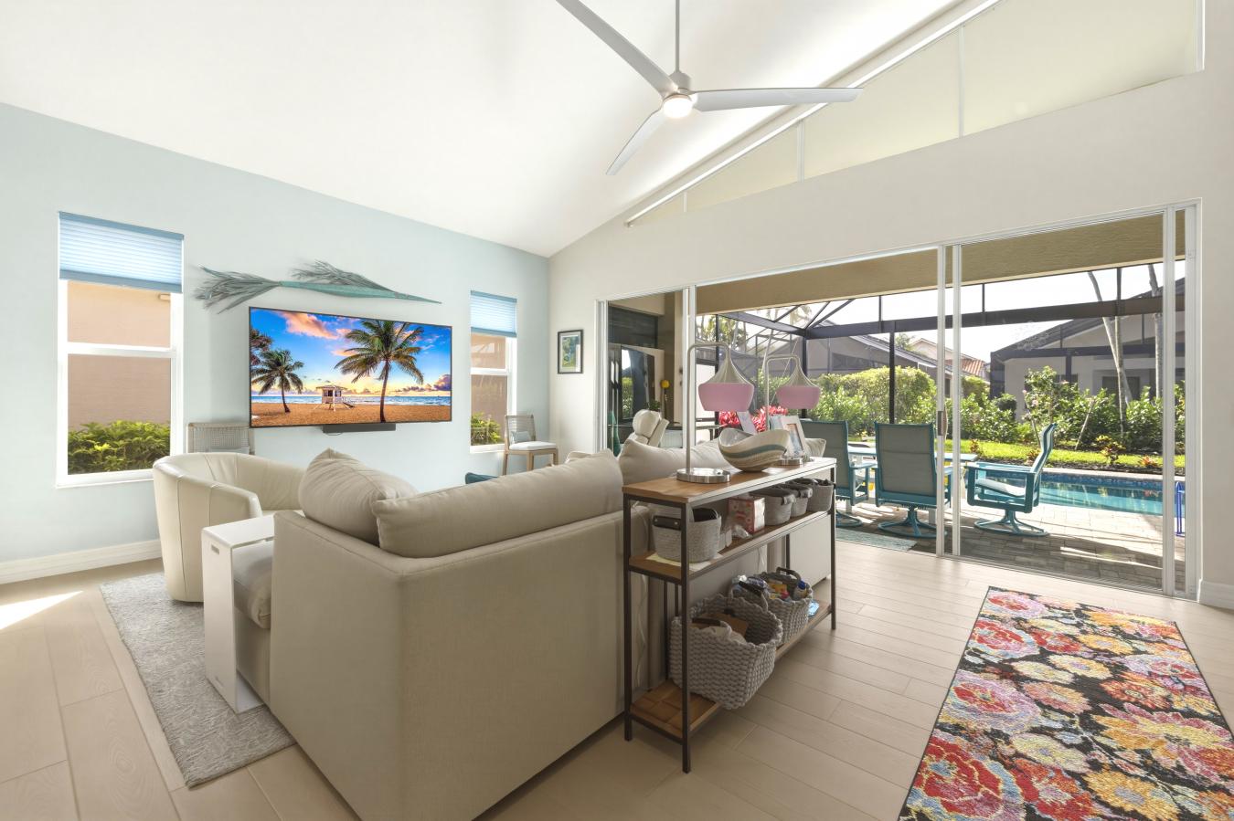 Welcome to Mariners Cove Village, an enclave of timeless elegance set within the prestigious, gated Landings Yacht, Golf and Tennis Club-the most coveted address in this distinguished Southwest Florida community. This exceptional single-family pool home stands as a true showcase of refined luxury and has been transformed through a complete, top-to-bottom renovation. Fully furnished and move-in ready, the residence offers two spacious bedrooms complemented by a versatile den, two beautifully reimagined full bathrooms, and an additional bonus room ideal for guests, a home office, or peaceful retreat. Every detail has been thoughtfully elevated: premium luxury vinyl plank flooring flows seamlessly throughout, a newer 2023 tile, a brand-new AC system ensures year-round comfort. Fresh sophisticated paint refreshes every surface, and custom pavers grace the driveway, walkways, and expansive lanai. The home is framed by a striking panoramic-view pool cage which was recently added, that surrounds a recently resurfaced, crystal-clear saltwater pool that sparkles invitingly in the Florida sun. At the heart of the home lies a breathtaking custom chefs kitchen, designed around a dramatic center island and crowned with gleaming quartz countertops, upscale cabinetry, and an impeccable suite of high-end appliances and a reverse osmosis drinking water system. A bespoke dry bar adds effortless sophistication for entertaining. Both bathrooms have been fully reimagined with luxurious appointments, including heated towel racks! Peace of mind is built in, thanks to impact-resistant doors, shutters, and windows throughout the home. The impressive array of upgrades continues beyond what words can fully capture-please explore the comprehensive features page in the MLS supplements for the complete picture. Even the garage exceeds expectations with a 50 AMP car charging station, new hurricane garage door, new epoxy floor and convenient ceiling storage racks. Residing here grants privileged access to the unparalleled amenities of the Landings Golf, Yacht and Tennis Club Membership. Enjoy a full-service marina with boat slips accommodating vessels up to 60 feet, an 18-hole golf course, Har-Tru tennis courts, pickleball and bocce ball courts, fitness center, resort-style pools, and serene waterfront gathering spaces. The Helm Clubhouse and the charming waterfront restaurant, The Wheelhouse, serve as social hubs, while a vibrant, ever-active calendar of events and activities ensures there is always something engaging to enjoy along the scenic Caloosahatchee River. This is far more than a home-it is an invitation to an extraordinary lifestyle of sports, leisure, sophistication, and endless waterfront possibilities. Make your move to this exceptional residence and claim your place at the pinnacle of Florida living!