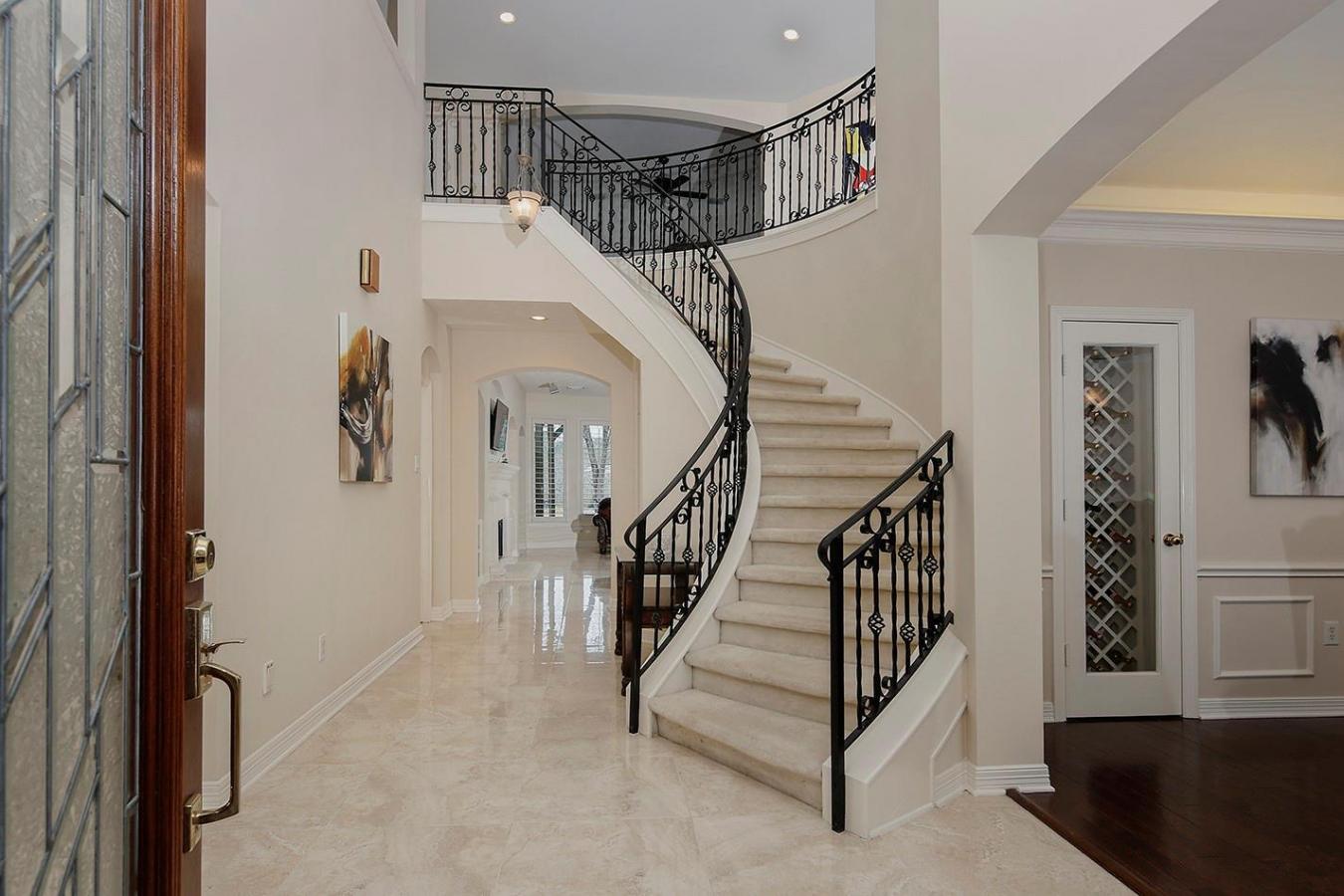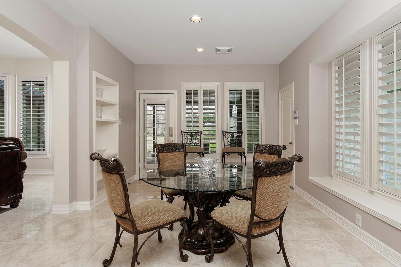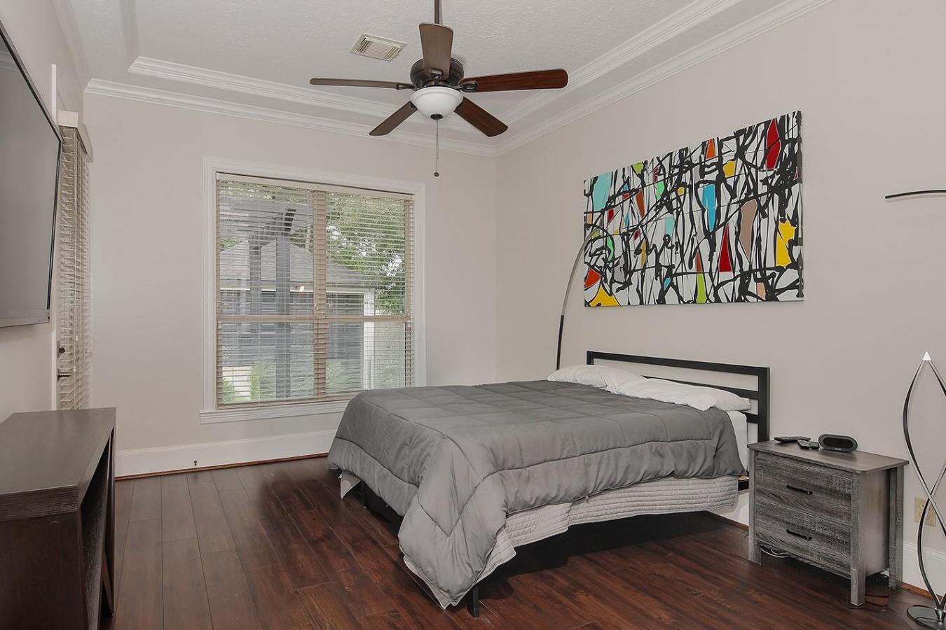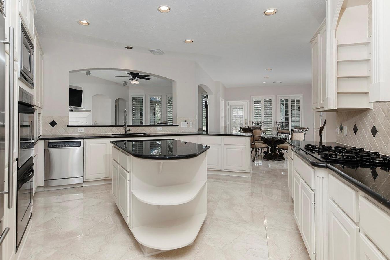 Spectacular home with incredible curb appeal on over an acre in Benders Landing! Neighborhood amenities include a pool w/splash pad, stocked lakes, a clubhouse w/fitness center, and tennis & basketball courts. A gated motor court, 5-car garage (2 bays are climate controlled and being used as a golf simulator room/gym), a 2-car porte-cochere, and a 3-year-old roof are just a few highlights of this home. Open and airy, with enormous windows and high ceilings providing picturesque views of the backyard paradise. Game room (or formal living) downstairs w/wine chiller and beverage fridge; study w/French doors and coffered ceiling; island kitchen w/gas cooktop, pot filler, double ovens, custom cabinetry, walk-in pantry & breakfast bar opens to the breakfast room & den w/wood beam ceiling & stacked stone fireplace; primary bedroom & 2nd bedroom suite down; 3 bedrooms, game room, and media room up; private backyard w/pool, spa, covered patio w/outdoor kitchen, fire pit & plenty of grassy area to play!
