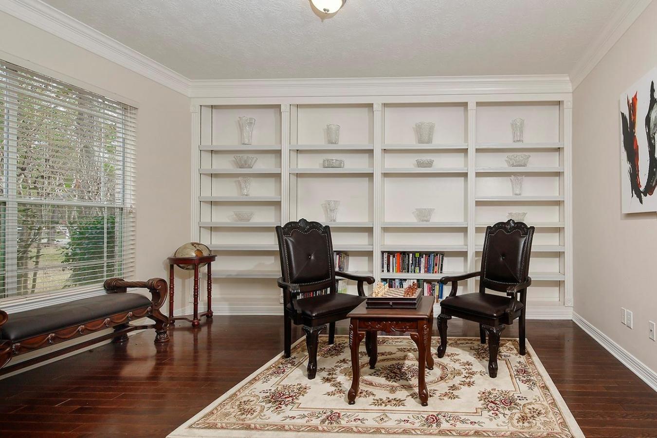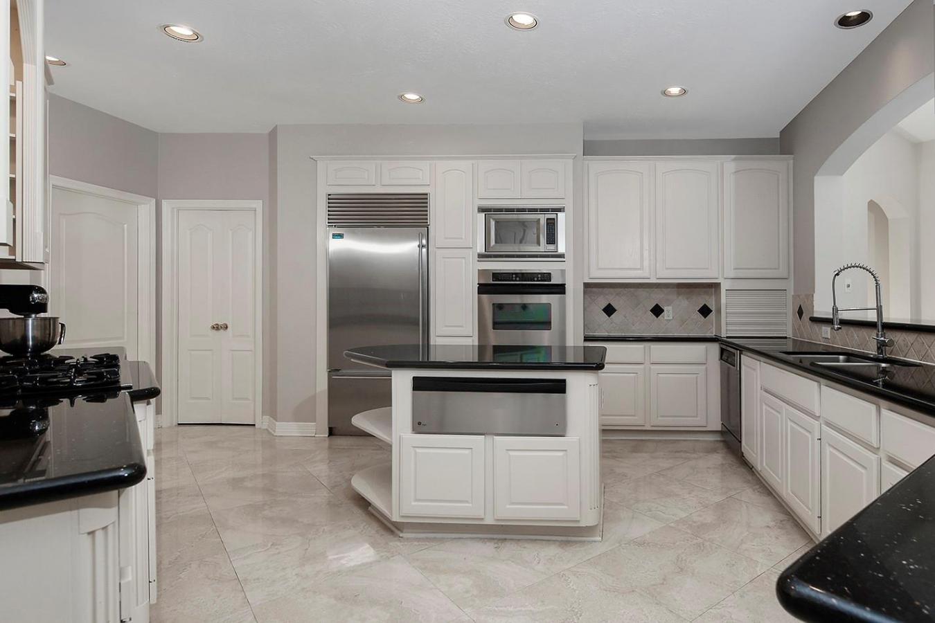 Exceptional home on 1.17 acres with serene lake views in the gated Thousand Oaks community! Youll enjoy watching the beautiful wildlife, and with amenities such as stocked lakes for fishing, community parks, and a pool, youll never run out of things to do! Stone fountain at the entry, two-year-old roof, recent exterior paint, 3-car garage, hardwood and tile floors, plantation shutters, and a neutral paint palette throughout. An open-concept kitchen with granite counters, a SubZero fridge, a center island, a gas cooktop, and dual wall ovens overlooks the breakfast and family rooms. Formal dining can accommodate many guests. Primary bedroom suite down with relaxing water views; 4 bedrooms, a game room, and study upstairs. Capture the sunset views under the flagstone patio in the private backyard, surrounded by fruit and shade trees.