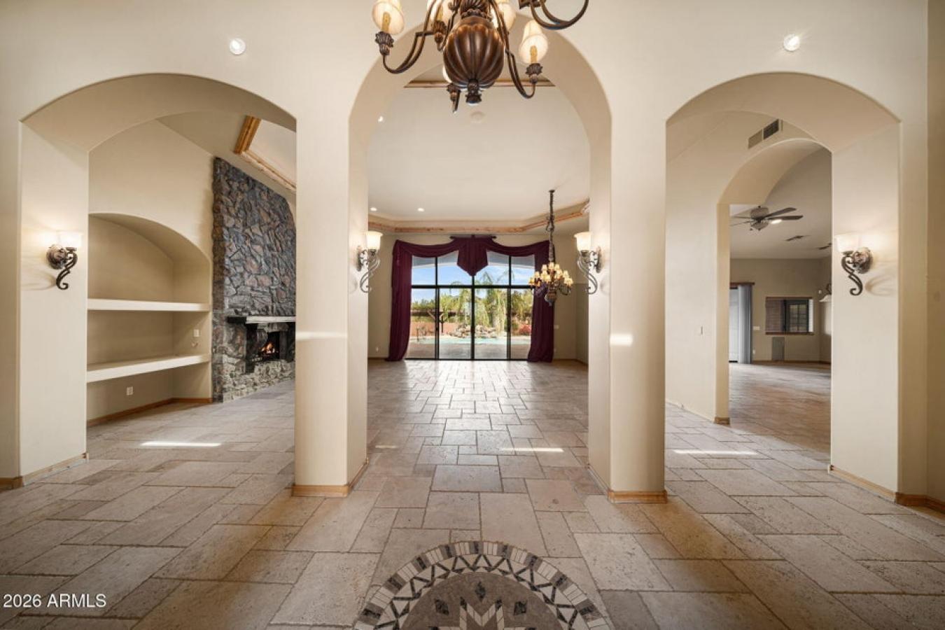Tucked at the end of a quiet cul-de-sac in the prestigious guard-gated community of The Boulders, this home captures the essence of private desert luxury living. Set on a premium lot with no neighbors behind, the property opens to breathtaking boulder formations and sweeping mountain views that create a truly peaceful and secluded setting. Inside, soaring ceilings and dramatic floor-to-ceiling windows flood the home with natural light and perfectly frame the stunning desert landscape from the main living areas and primary suite. The open layout feels both spacious and inviting, designed to take full advantage of indoor-outdoor living. The kitchen has been elevated with a brand new, never-used GE Monogram appliance package, offering a true high-end culinary experience with top-tier finishes and a large island that anchors the space. The primary suite is a private retreat with its own fireplace, expansive windows, and direct access to the backyard. Each additional bedroom offers its own patio access through glass doors, along with walk-in closets and full bathrooms, providing comfort and privacy for guests or family. Step outside to a resort-style backyard where desert landscaping, natural boulder views, and a sparkling pool come together to create an incredible outdoor experience. Multiple patio spaces offer the perfect setting to relax, entertain, and enjoy Arizonas year-round sunshine in total privacy. This is a rare opportunity to own a home that truly embraces the beauty, serenity, and lifestyle of Carefree living.