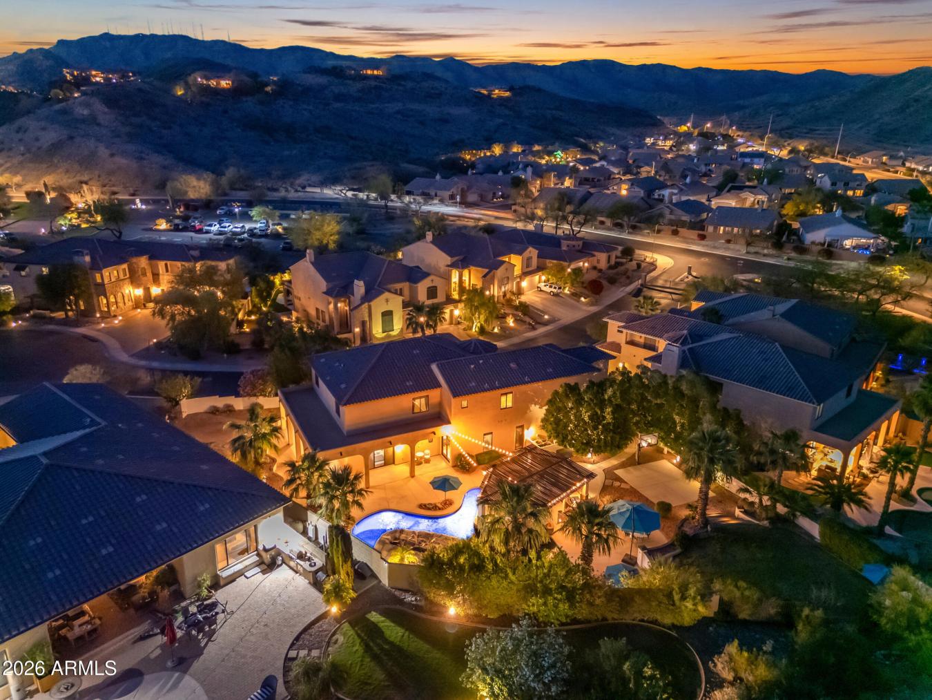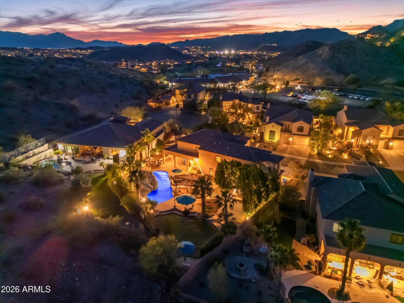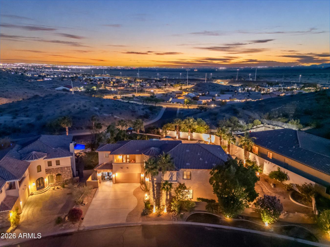 Nestled within the Ahwatukee Foothills in the gated community of Tuscan Hills, this exceptional custom home sits on a coveted oversized lot and captures breathtaking city lights and mountain views from nearly every window, creating a setting that feels both elevated and serene.