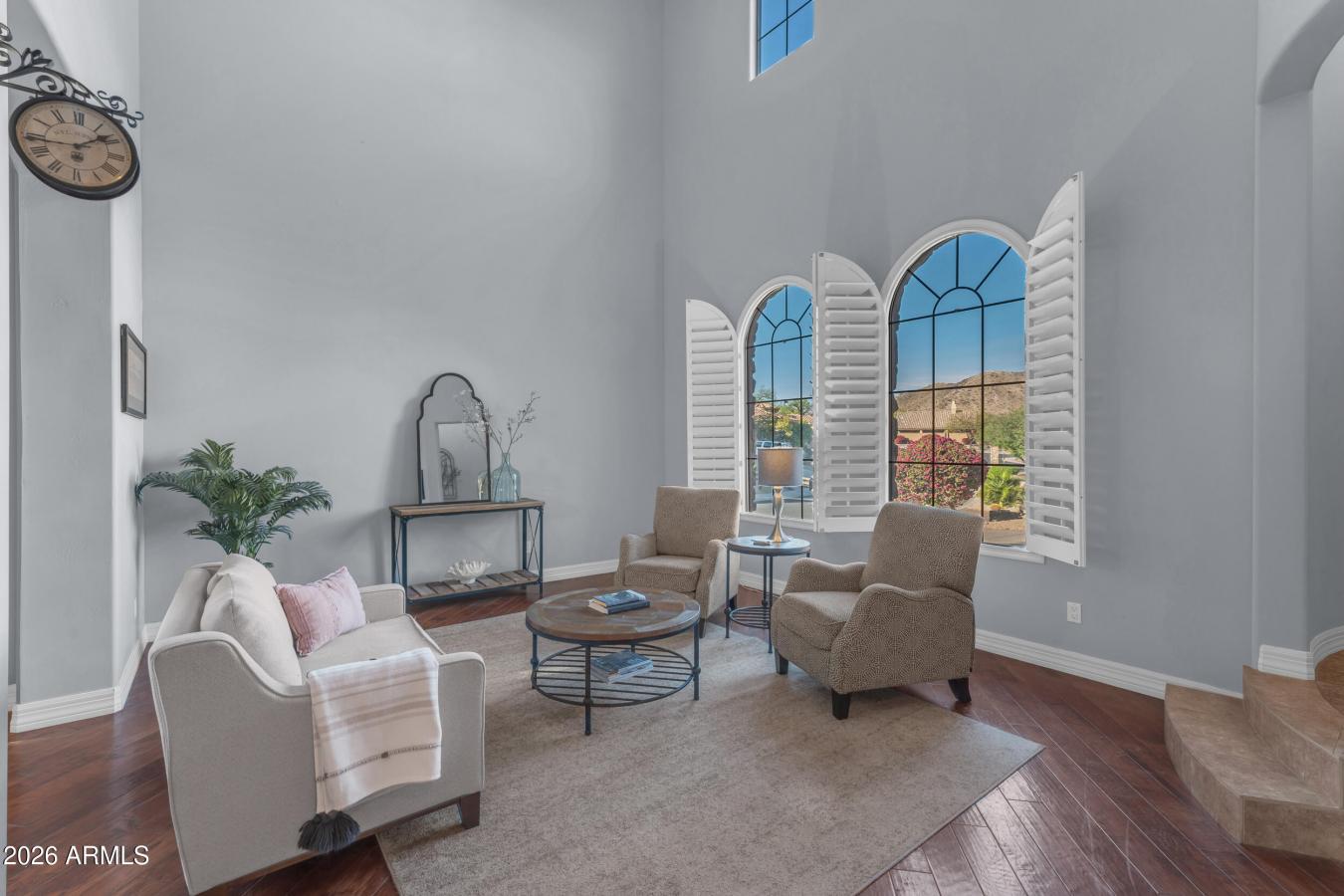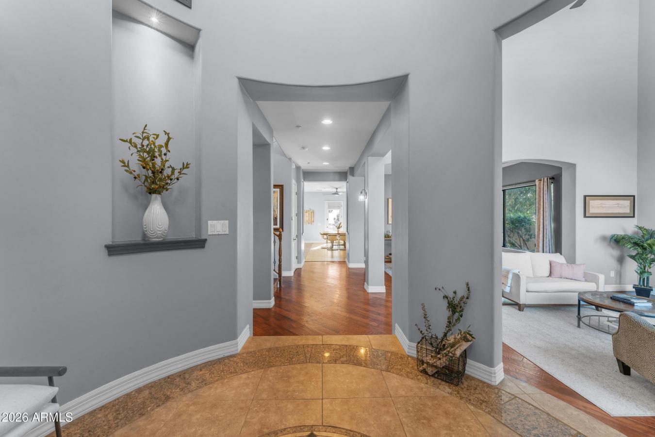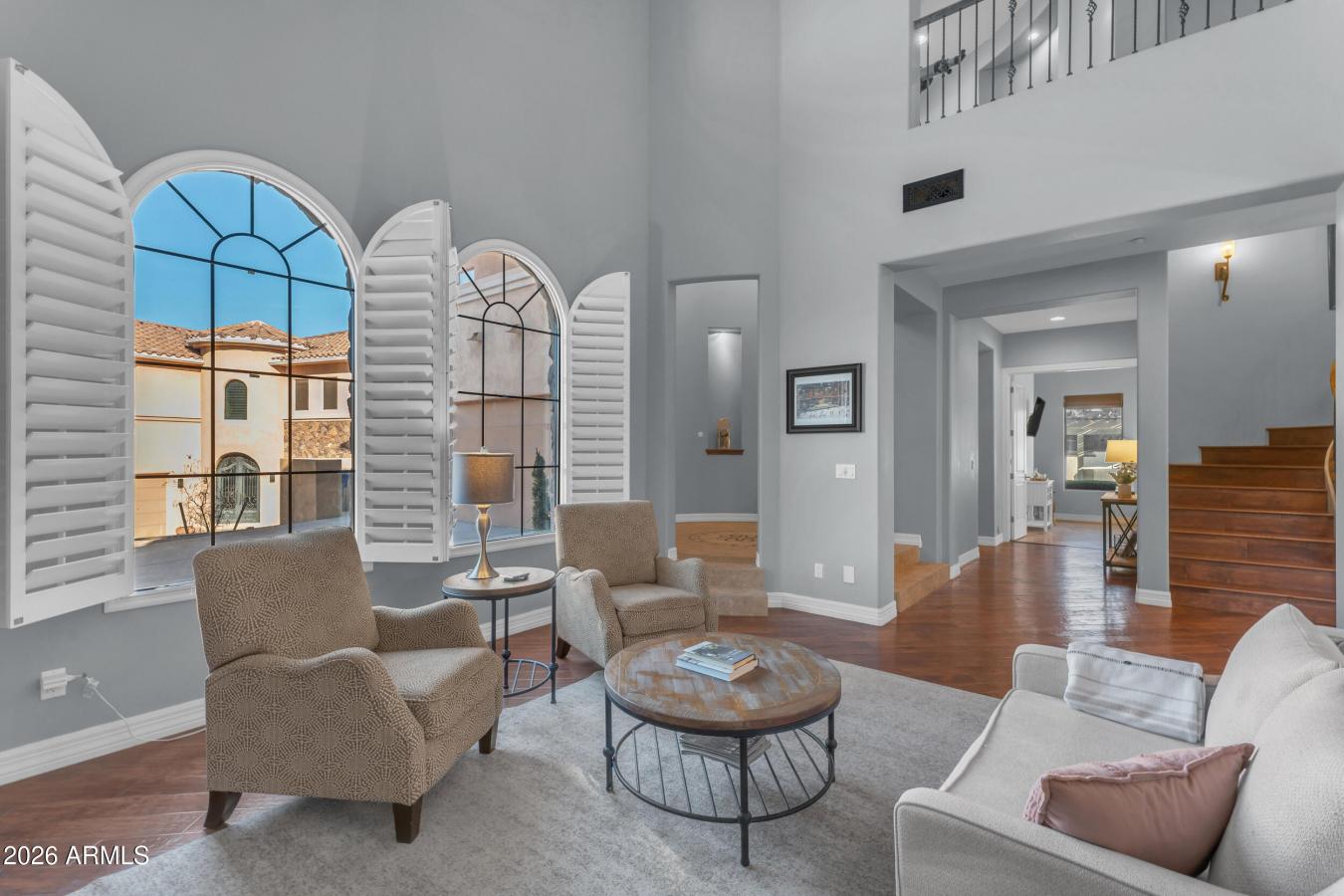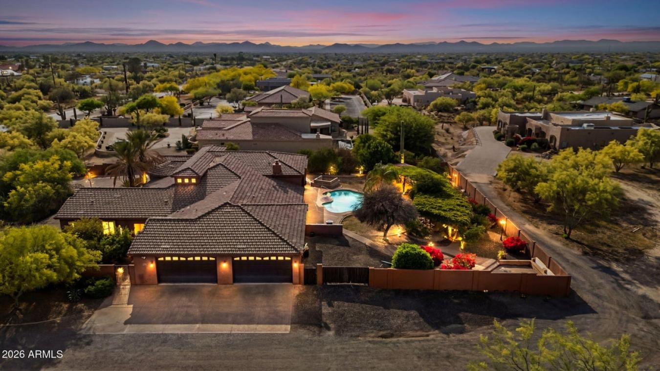 Nestled within the Ahwatukee Foothills in the gated community of Tuscan Hills, this exceptional custom home sits on a coveted oversized lot and captures breathtaking city lights and mountain views from nearly every window, creating a setting that feels both elevated and serene.