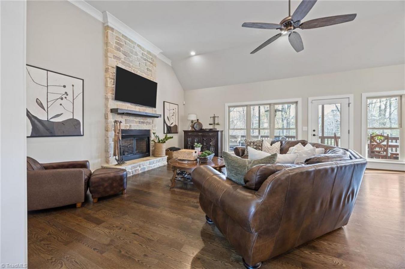 Located on a cul-de-sac in the Jessup Ridge community, this home offers privacy, space, and a beautiful wooded setting. With a true treehouse feel, you can enjoy year-round views of every season. Designed for everyday living and entertaining, the open concept main level features tall ceilings and a spacious great room with fireplace that flows into the dining area and kitchen. Natural light pours in, and the main-level primary suite takes full advantage of the views. Step outside to the screened porch and deck with fireplace, perfect for morning coffee or evening gatherings. The fully finished walkout basement with second kitchen lives like its own private space, complete with bedroom, full bath, office, TV room, and fireplace, ideal for guests or multi-generational living, with access to a covered patio and outdoor fireplace. Upstairs includes two bedrooms with a shared bath and a bonus room. Fenced yard, exterior storage, 3-car garage, & community pools and clubhouse!