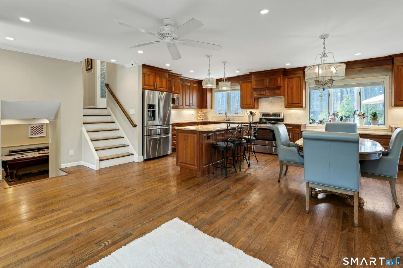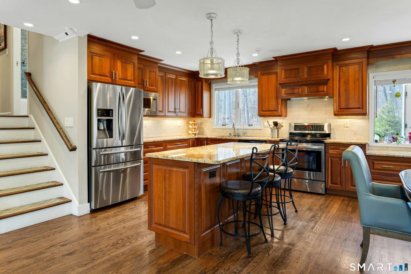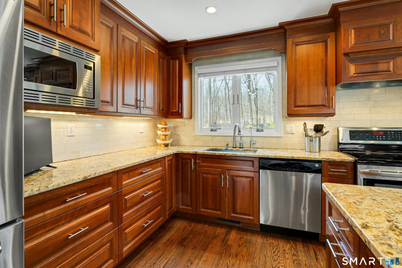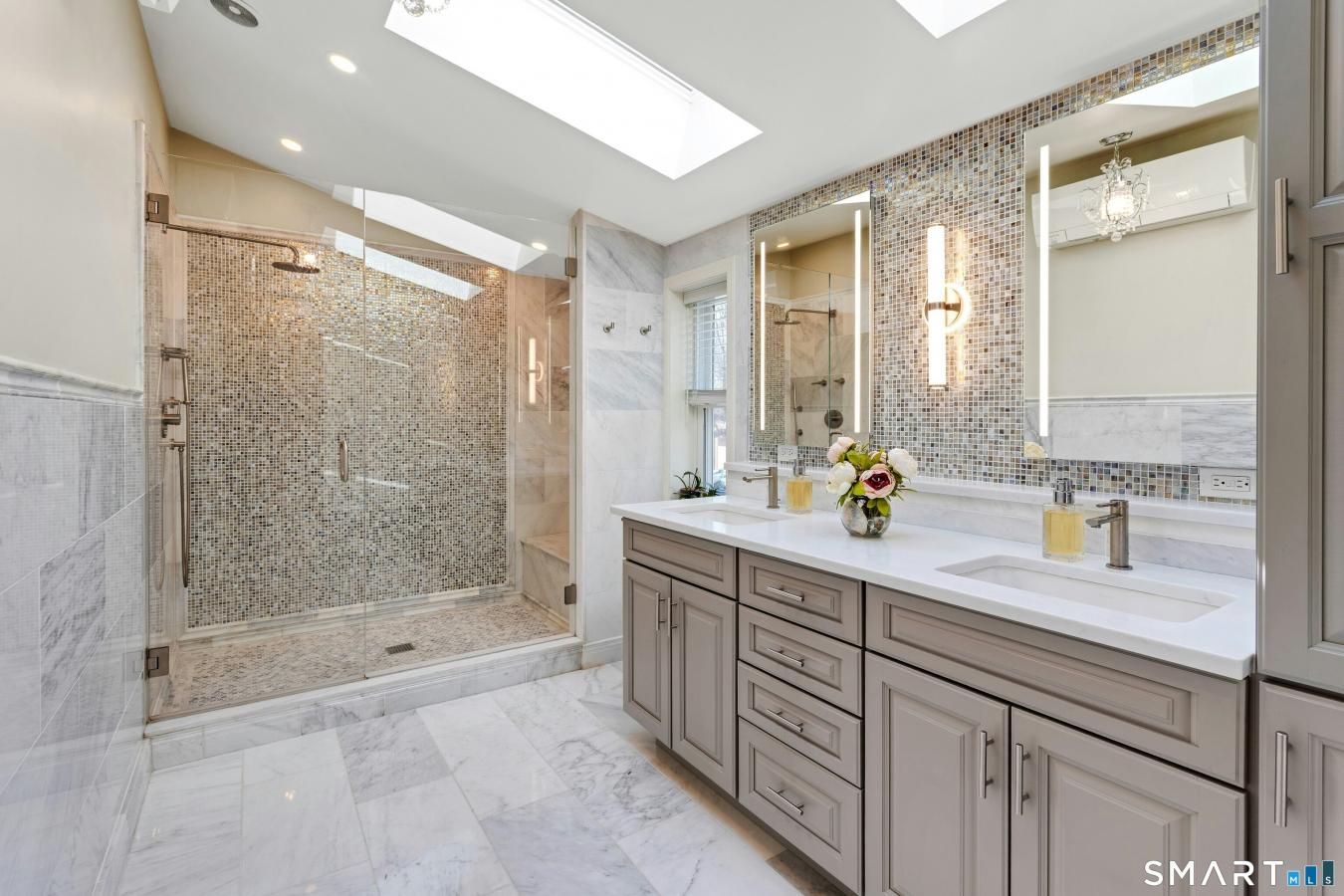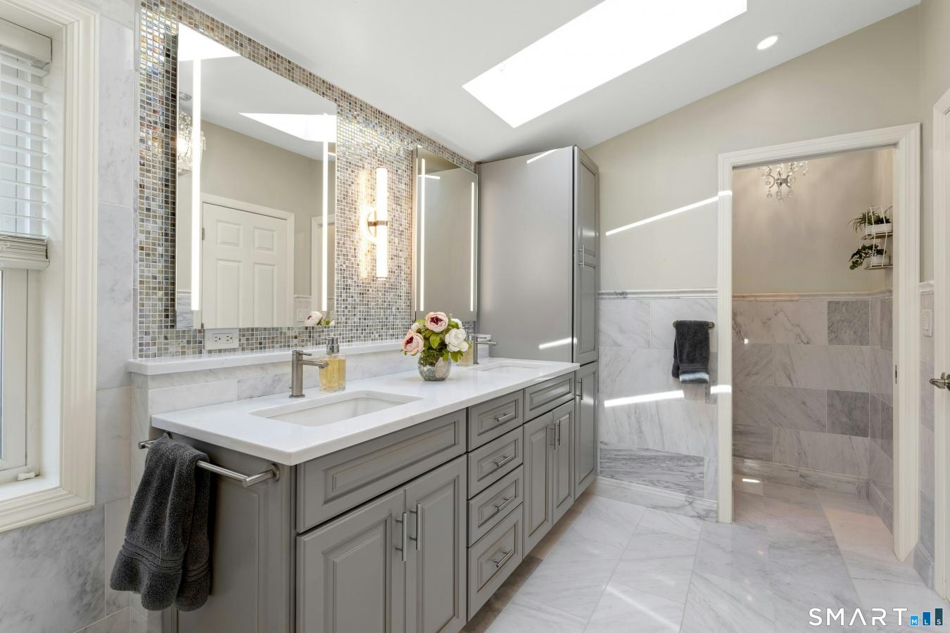 Beautifully renovated split level situated on a centrally located cul-de-sac. This sun-filled residence offers an open floor plan with a bright living room featuring a cozy fireplace, an updated kitchen, and an adjoining dining area. The property includes 4 bedrooms and 3 1/2 renovated baths, highlighted by an oversized primary suite with a spa-like bathroom.