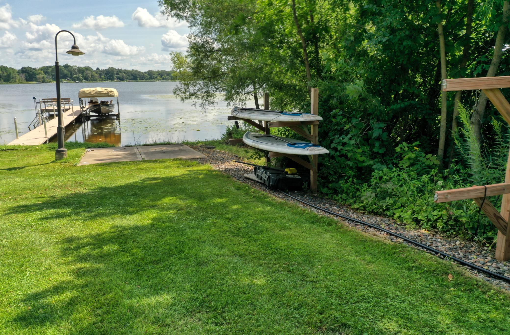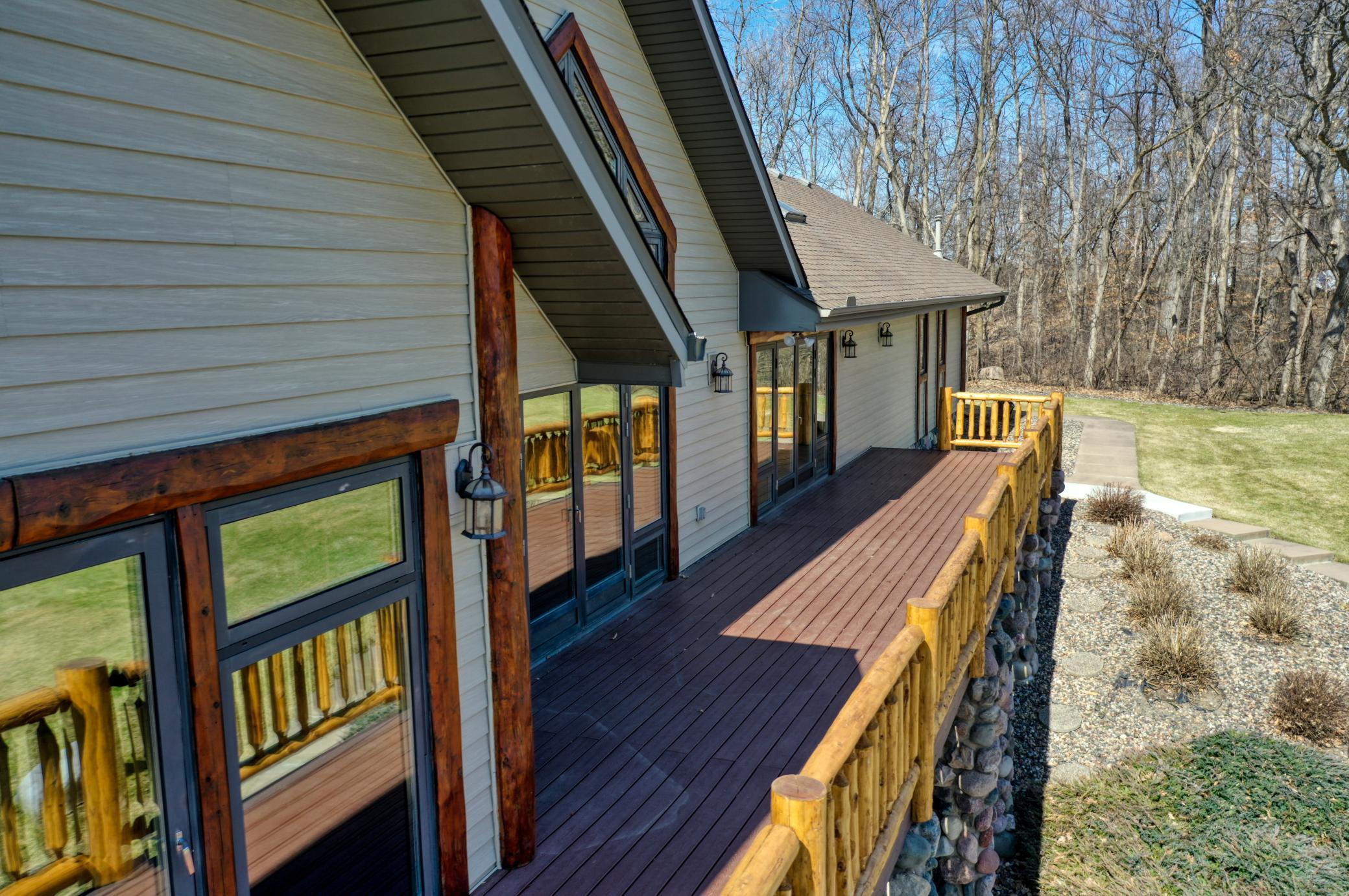 Whoever said that money cannot buy happiness never lived in this home! Welcome to 25493 West Comfort Lake Drive, a stunning lakeside retreat that spans over 4,700 square feet on the western shores of Comfort Lake, a serene, full-recreation lake just 30 minutes from the Twin Cities. This unique custom-built sanctuary offers an unparalleled escape, featuring impressive vaulted ceilings with hand-scribed beams, imported logs, ash hardwoods imported from Vermont and expansive windows that frame breathtaking eastern exposure views of the beautiful lake.The main-level living room perfectly balances design and comfort, showcasing 15-foot ceilings and custom hand-scribed logs imported from Michigan. The large lakeside windows draw your gaze to stunning views and provide access to an expansive lakeside deck. A beautiful fireplace serves as a striking focal point in this space, exuding warmth and cozinessideal for family gatherings or quiet evenings by the fire.At the heart of the home is the kitchen, designed with an open-concept layout that enhances waterfront living. The generously sized lakeside primary suite on the main floor includes a large bathroom, along with three additional rooms: another bedroom, an office, a laundry room, and a lakeside flex room. The walkout lower level offers endless possibilities with a large recreation room that is perfect for movie nights and gatherings, an additional flex room, a safe room, and ample storage areas.For those with a passion for vehicles or hobbies, the MEGA RARE, massive 62x35 heated Morton outbuilding is set up perfectly, featuring tall ceilings and two large overhead doors on either side.The property spans 2.3 acres of meticulously manicured grounds, fully irrigated and adorned with lush landscapes, including a large pond with an accessible bridge and a breathtaking water fountain. Custom decks and walkways surround the residence, complete with new hand-scribed railings and maintenance-free decking. The impressive lakeside lawn features expansive open green spaces with a gradual slope leading to 150 feet of direct, private waterfront.This compound is truly one of a kind and is only being offered on the market for the second time.