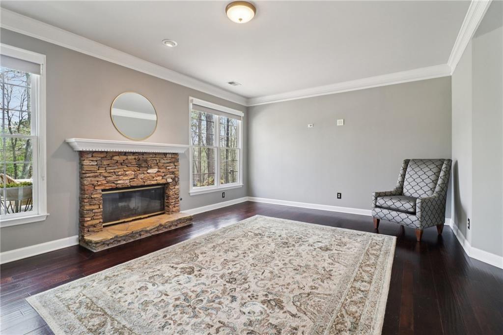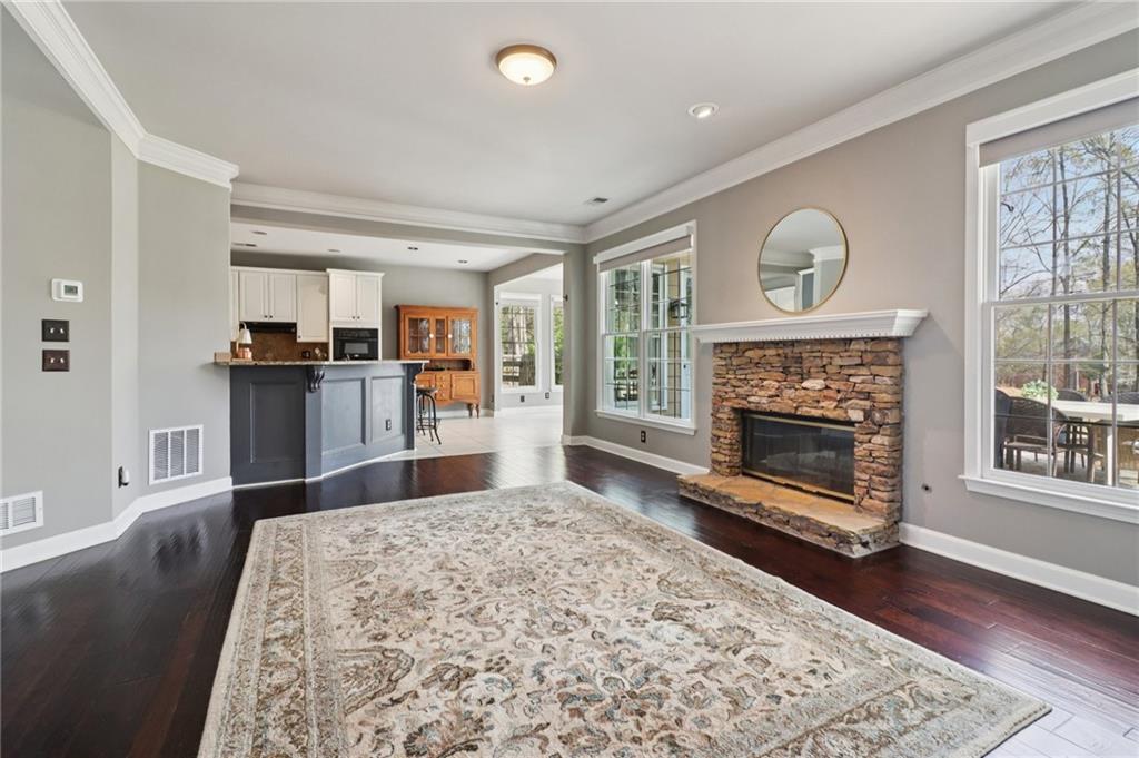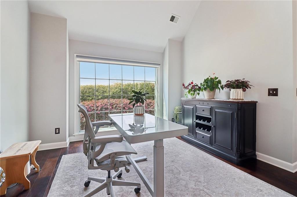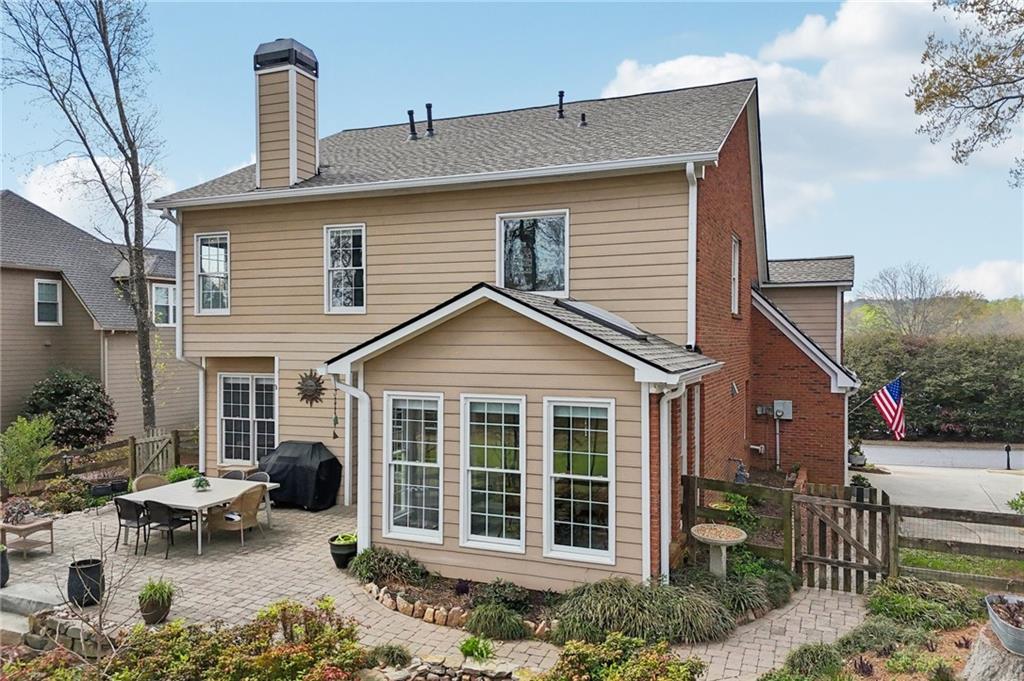 Welcome to an EXCEPTIONAL residence in the prestigious Olde Atlanta Club, where refined living meets resort-style amenities in the highly acclaimed LAMBERT HIGH SCHOOL district.Perfectly positioned on the scenic 15th green, this beautifully maintained four-bedroom, two-and-a-half-bath home offers impeccable curb appeal with three sides of classic brick and a desirable side-entry garage. From the moment you arrive, the home's inviting presence and refined architectural details set the tone for what lies within.Step inside to discover a thoughtfully designed interior highlighted by rich hardwood flooring throughout, a separate executive office, and an expansive bonus room ideal for a guest suite, media retreat, or flex space. The oversized primary suite offers a serene escape, complemented by two additional spacious secondary bedrooms and full bath.At the heart of the home, the gourmet kitchen is both stylish and functional, showcasing granite countertops, a tasteful blend of stainless steel and black appliances, and an adjoining coffee bar ideal for everyday living and effortless entertaining. The light-filled sunroom, enhanced with skylights and sweeping golf course views, creates the perfect backdrop for morning coffee, family meals, or quiet relaxation. The spa-inspired primary bathroom offers a luxurious sanctuary with dual vanities, a stunning clawfoot tub, an expansive dual rainhead walk-in shower, and a custom-designed walk-in closet.Outdoors, a TRUE BACKYARD OASIS awaits. Enjoy tranquil golf course views from your professionally landscaped retreat, complete with a two tier Venetian paver patio, elegant water feature, and a fire pit gathering area perfect for entertaining or relaxing amid vibrant seasonal blooms.Additional highlights include a BRAND NEW ROOF, gutters and downspouts installed February 2026, along with New HVAC and New Water Heater (2024) ensuring peace of mind for years to come. This home also comes with a 2-10 Home Warranty paid through December 2026!Residents of Olde Atlanta Club enjoy an unparalleled lifestyle with access to championship golf with membership, an on-site restaurant, swim and tennis facilities, pickleball and basketball courts, playgrounds, and a dynamic, active community atmosphere.This is more than a home...It's a lifestyle of distinction! Schedule your showing today!