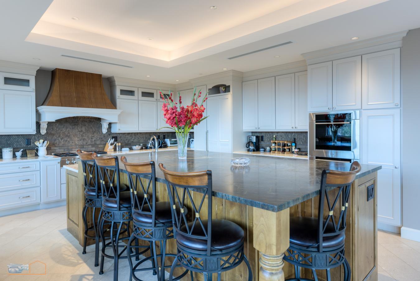 Experience waterfront living with breathtaking sunsets from your oversized deck or balcony off of the master bedroom. This 3-bedroom home with an enclosed widow's walk offers a wide-open floor plan and stunning water views throughout. The custom kitchen features a commercial 6-burner stove with griddle and double oven, Sub-Zero refrigerator, granite countertops, and island.
