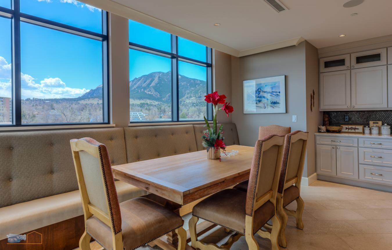 Considered by many to be the finest residence in downtown Boulder. Stunning 4415 sf penthouse in the Arete with floor to ceiling panoramic views above tree line to the Flatirons, Central Park, Boulder Creek, Folsom Stadium, Chautauqua and Pearl St. Mall. And all of downtown within steps or viewed from a 1400sf wrap around patio.