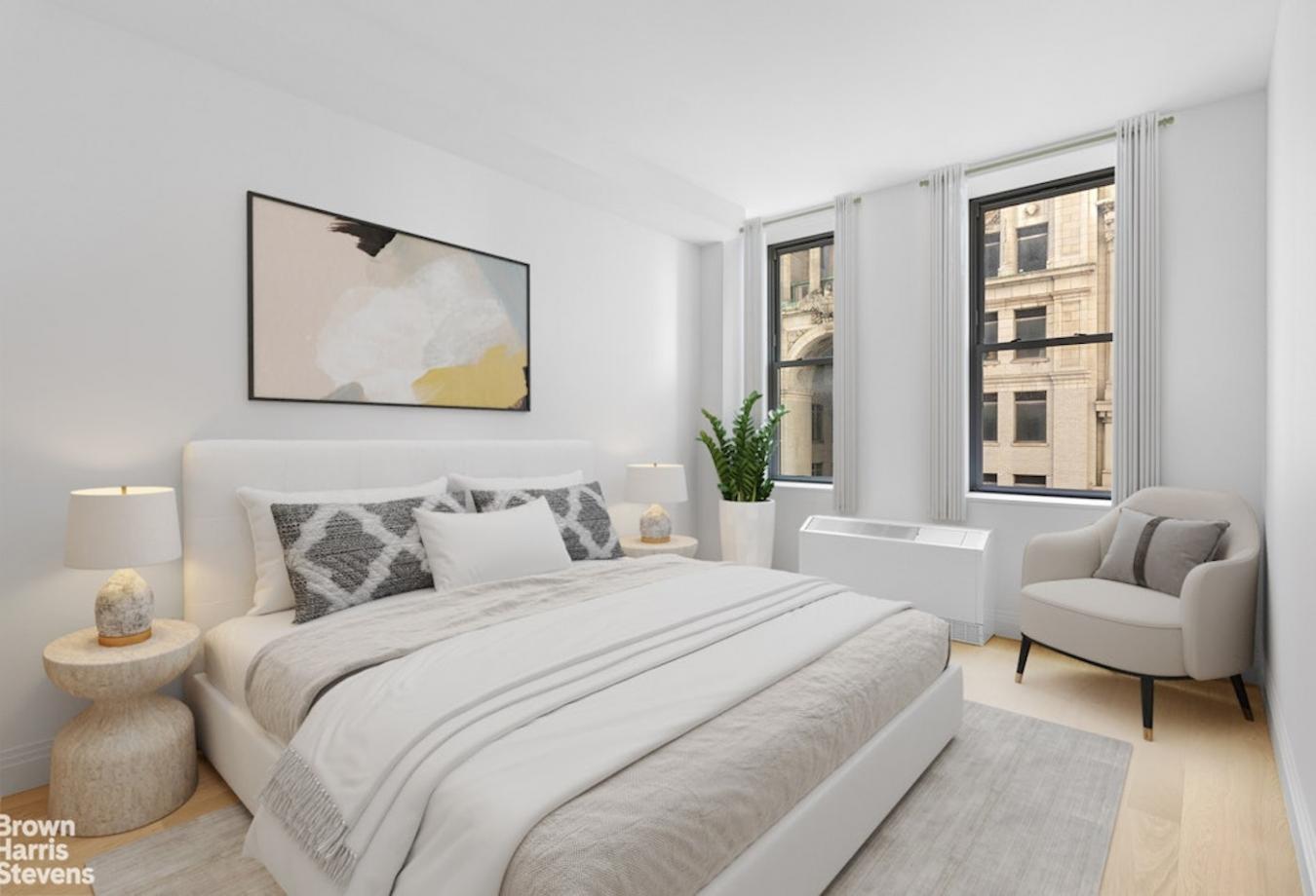 Welcome to Residence 1805! This spacious one-bedroom is perched high on the 18th floor, located on the west side of the building. This home offers natural light and ample closet space. Custom kitchens and baths pair seamless technology with classic elegance. The kitchen features Oceanwood marble slab countertops, which rest on custom Aran Cucine cabinetry, accented by white glass panels and satin nickel finishes, and is the perfect blend of beauty and function. Warm stone primary bathrooms feature a soaking tub with thermostatic controls. Mirrored medicine cabinets are integrated with LED lighting and Bianco Dolomite marble surround. The buildings one-of-a-kind residences maintain the integrity and character of the 1930s scale, a modern take on art deco detailing, and boast ceiling heights over ten feet throughout with wide-plank French oak hardwood floors underfoot. This unit is currently tenant-occupied, making it an excellent investor-friendly opportunity with immediate cash flow potential. As a resident of One Wall St, youll have access to The One Club, an exclusive membership program encompassing 100,000 square feet of amenities. The club features a 75" indoor swimming pool on the 38th floor surrounded by panoramic views, the Dining Club Room, and over 4,000 square feet of landscaped terrace on the 39th floor overlooking New York Harbor and the Downtown skyline. Additional amenities include a fitness center and spa, a large co-working space with conference rooms, and children and teen spaces. The building also offers a 24-hour doorman and concierge service, a rooftop terrace with panoramic views, and is situated just steps from the New York Stock Exchange, Battery Park, and some of the citys finest dining, shopping, and cultural destinations.