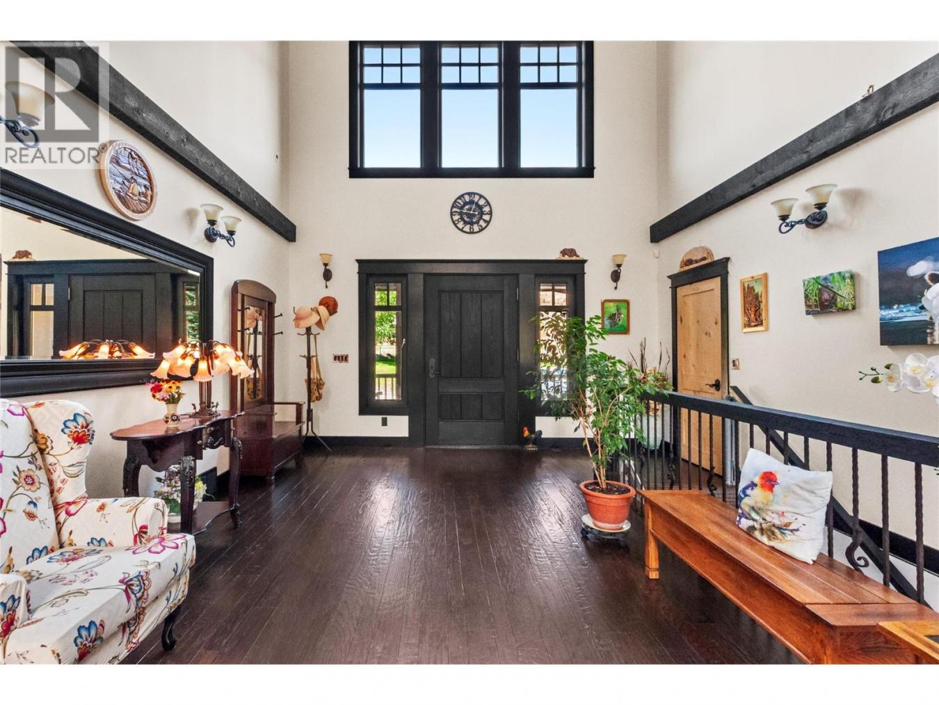 CLICK TO VIEW VIDEO: Gorgeous craftsman style home just 2 min south of Skaha Lake! The living area offers stunning high ceilings, beautiful large timber decorative work with lots of natural light coming thru the windows, a handcrafted stone fireplace, and custom built-in cabinets for your entertainment center & personal artwork.