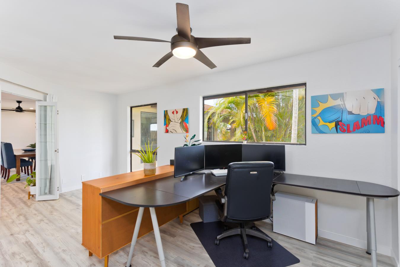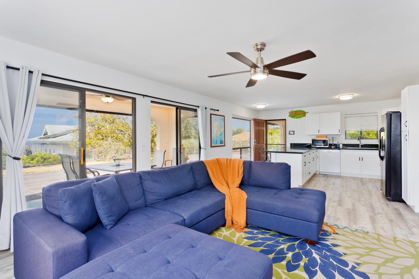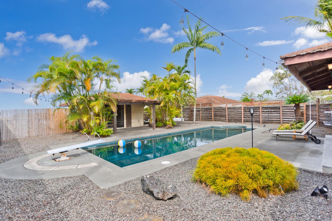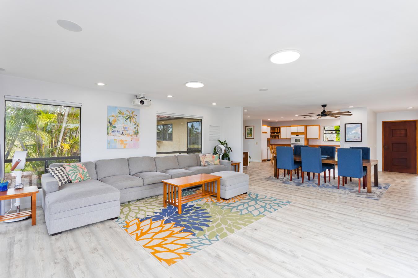 Discover your own private tropical oasis in the desirable Kona Acres community-an exceptional one-acre retreat featuring a main residence, pool house, and detached hosted vacation rental set against ocean-view backdrops and lush island landscaping. The main home offers 4 bedrooms and 3 baths, showcasing all-new vinyl plank flooring, fresh paint throughout & upgraded recessed lighting.