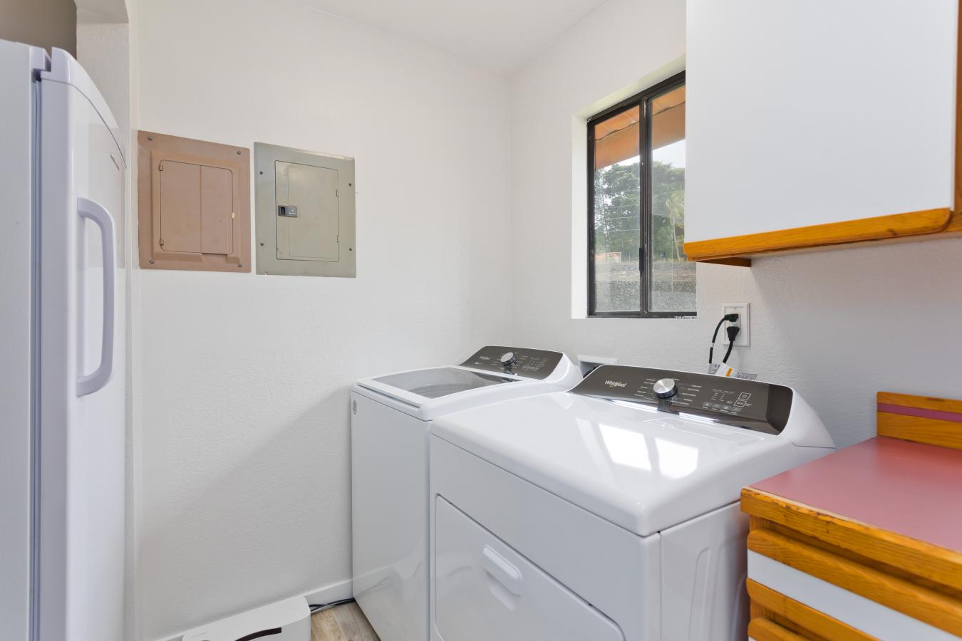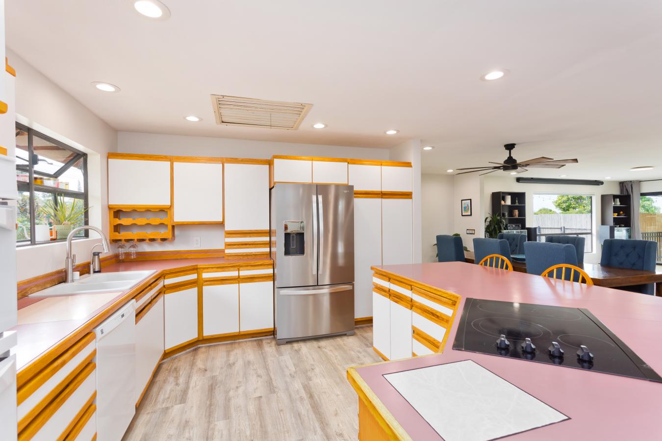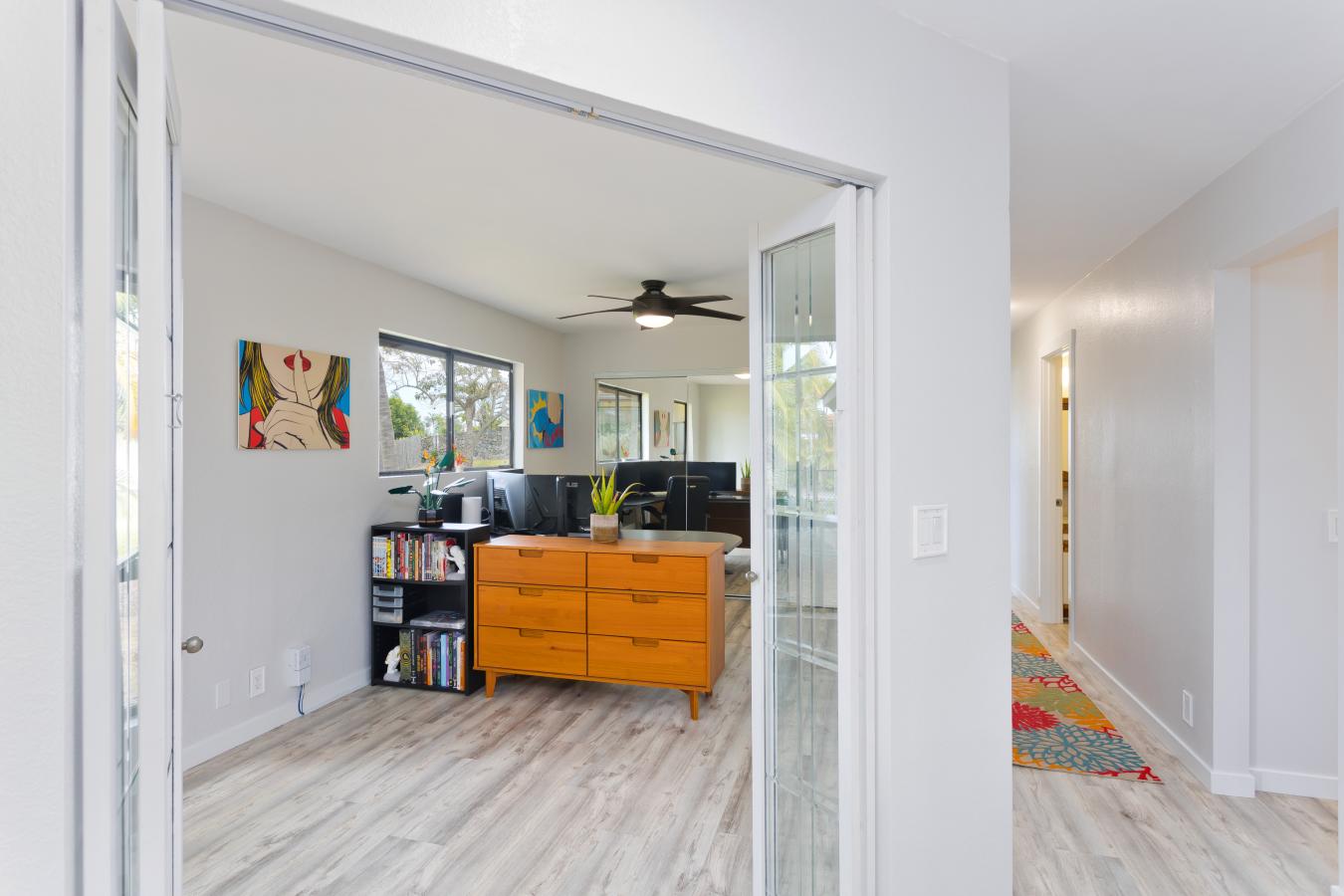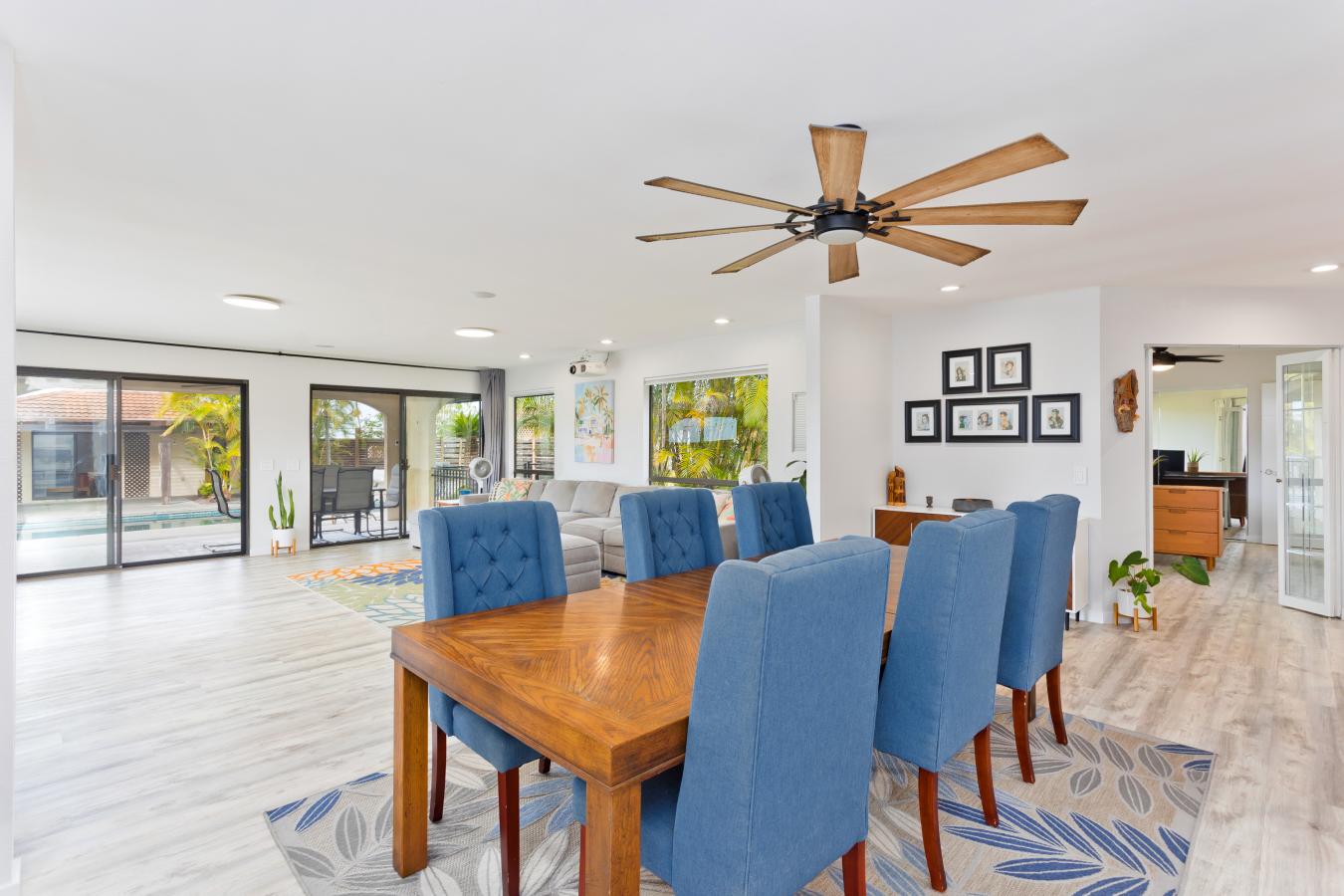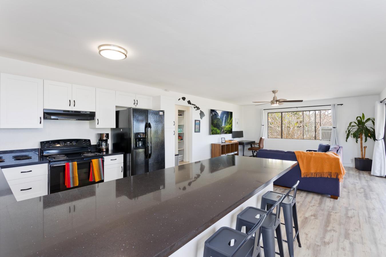 Discover your own private tropical oasis in the desirable Kona Acres community-an exceptional one-acre retreat featuring a main residence, pool house, and detached hosted vacation rental set against ocean-view backdrops and lush island landscaping. The main home offers 4 bedrooms and 3 baths, showcasing all-new vinyl plank flooring, fresh paint throughout & upgraded recessed lighting.