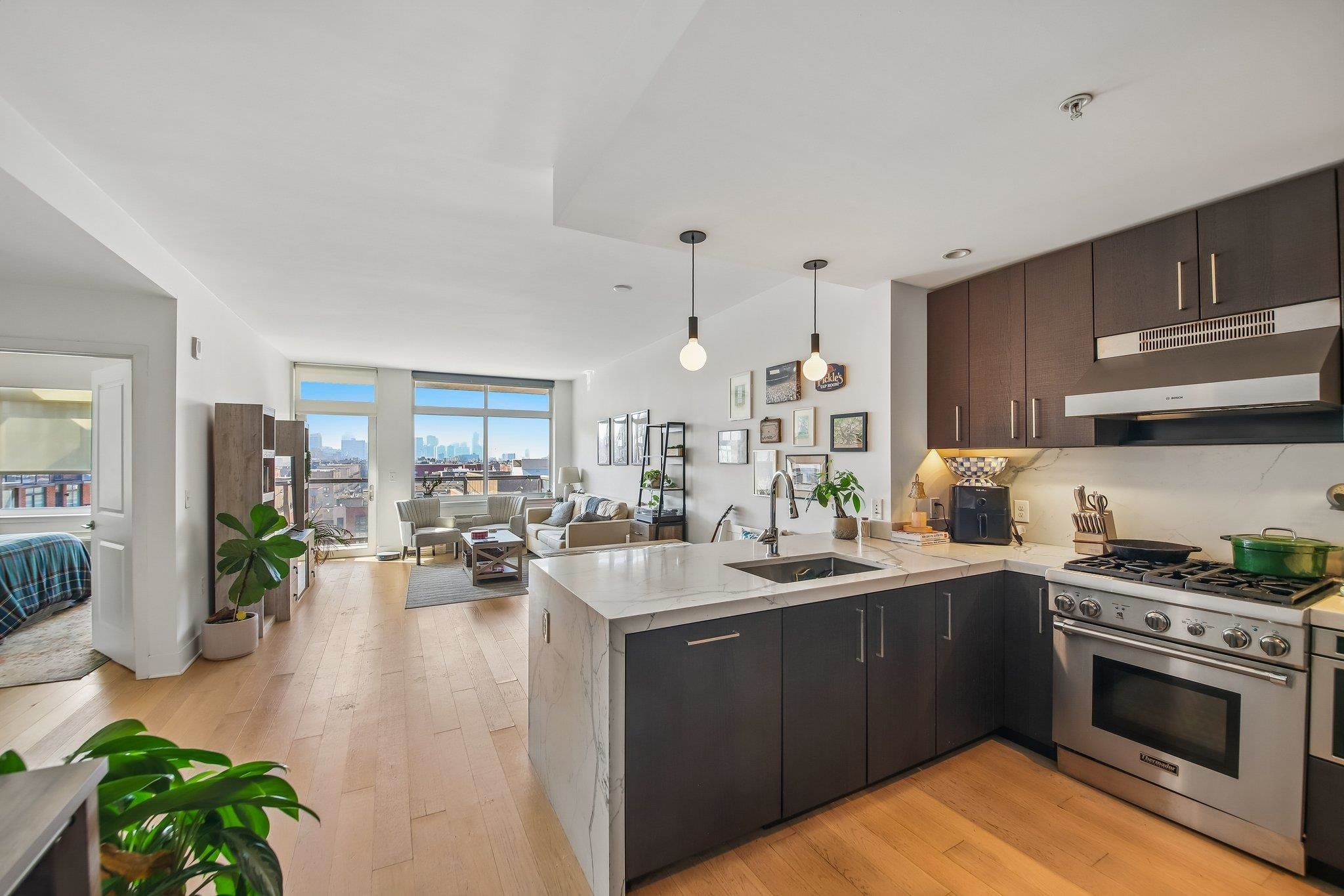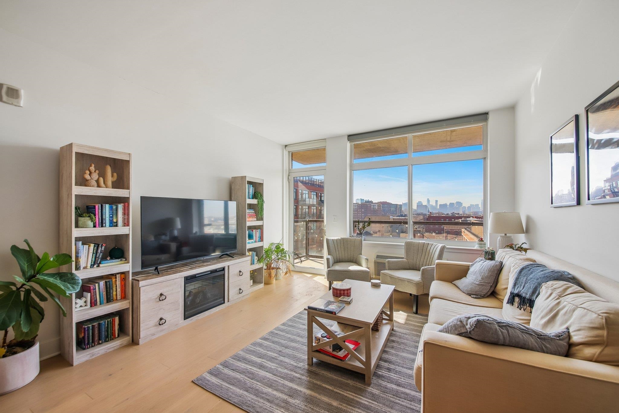 Welcome to Hoboken's Premier Luxury Residence on Hudson Street! This spectacular 1-bedroom south facing condo, located on the 8th floor, offers an unbeatable combination of style, comfort, and location. The home features a beautifully designed open-concept kitchen with high-end appliances, seamlessly flowing into a spacious dining and living area‹”perfect for both everyday living and entertaining. Step out onto your private balcony and enjoy the ideal space to relax and unwind. Additional highlights include custom window treatments, generous closet and storage space, and a full-size in-unit washer and dryer for ultimate convenience. Experience true resort-style living in a full-service building offering an impressive suite of amenities: 24/7 concierge and security, a private mail and package room, fully equipped fitness centers (cardio and weights), children's playroom, yoga room, resident lounge and courtyard, a rooftop outdoor pool, and lounge/grilling areas all showcasing nice views of the NYC skyline. Ideally situated in the heart of Hoboken, you're just moments from top-rated restaurants, boutique shopping, parks, and schools. Commuting is effortless with easy access to the ferry, NJ Transit bus, and private shuttle service to the PATH. Parking available nearby. Don't miss this opportunity‹”schedule your private showing today!