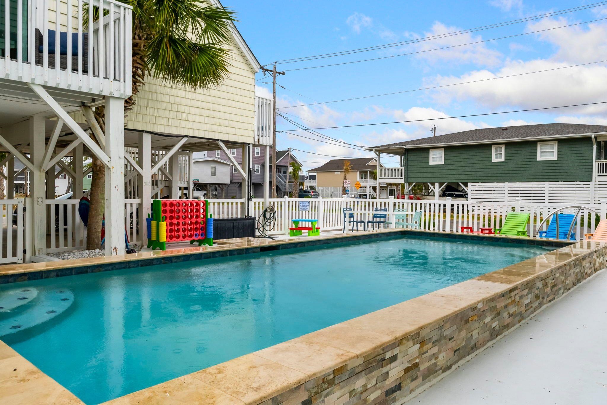 This is one of the most unique properties in popular Cherry Grove. Truly an investors dream looking for high rental income, or large families looking for their beach paradise. It is a large corner lot with two homes and a pool. Both homes have been renovated with beautiful accents and both come fully furnished down to the pots and pans. They offer a total of 6 bedrooms and 4 baths.
