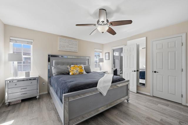 Entertaining offers between 799,000 and 839,000. Stunning, meticulously maintained and highly upgraded 3BR/3BA townhouse in the quiet, desirable community of Tierrasanta. Bright, open floor plan featuring new LVP flooring, granite countertops and a kitchen that flows seamlessly into the dining area. All bathrooms have been fully updated including a spacious primary suite with a spa-inspired bath featuring a large-format porcelain tile, floor-to-ceiling walk-in shower with low entry and open design. Additional upgrades include newer interior paint, new carpet, custom plantation shutters, and an inviting living room with gas fireplace and garden view. Flexible third bedroom ideal for office or guests. Enjoy a private covered patio with access to a scenic canyon path. Attached 2-car garage, new roof, central A/C, and full-size indoor laundry! Conveniently located less than 1 mile to the freeway. Resort-style amenities include pool, spa, tennis courts, clubhouse, and beautifully maintained grounds. Low HOA and no Mello-Roos. VA and FHA welcome.
