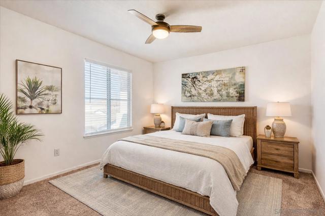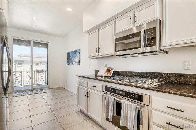 Welcome to this beautifully updated Tribeca townhome, where soaring vaulted ceilings create an open, light-filled atmosphere in the living and dining areas. The layout is thoughtfully designed to feel both spacious and comfortable, making it easy to relax or entertain. The home features three bedrooms, including one set on its own separate level—ideal for added privacy, a home office, or a welcoming guest retreat. The kitchen is well-appointed with brand new appliances, a convenient breakfast bar perfect for casual dining or entertaining, and a cozy breakfast nook just off the kitchen. Additional highlights include interior laundry, fresh paint throughout, and brand-new carpet, giving the home a clean, move-in ready feel. Enjoy multiple outdoor spaces with two private balconies on the second floor—one just off the living area and another off the kitchen—perfect for morning coffee or evening unwinding. Located in a desirable location near the back of the community, this home offers direct access to a two-car tandem garage for added convenience. Residents of the community enjoy access to a pool, spa, and BBQ area, along with a neighborhood park nearby, including a dog park. Ideally located in the heart of San Diego, this home offers easy freeway access and is close to a variety of restaurants, shopping, and local coffee shops. A fantastic opportunity for commuters and anyone looking to enjoy all that San Diego living has to offer. Some photos have been virtually staged.