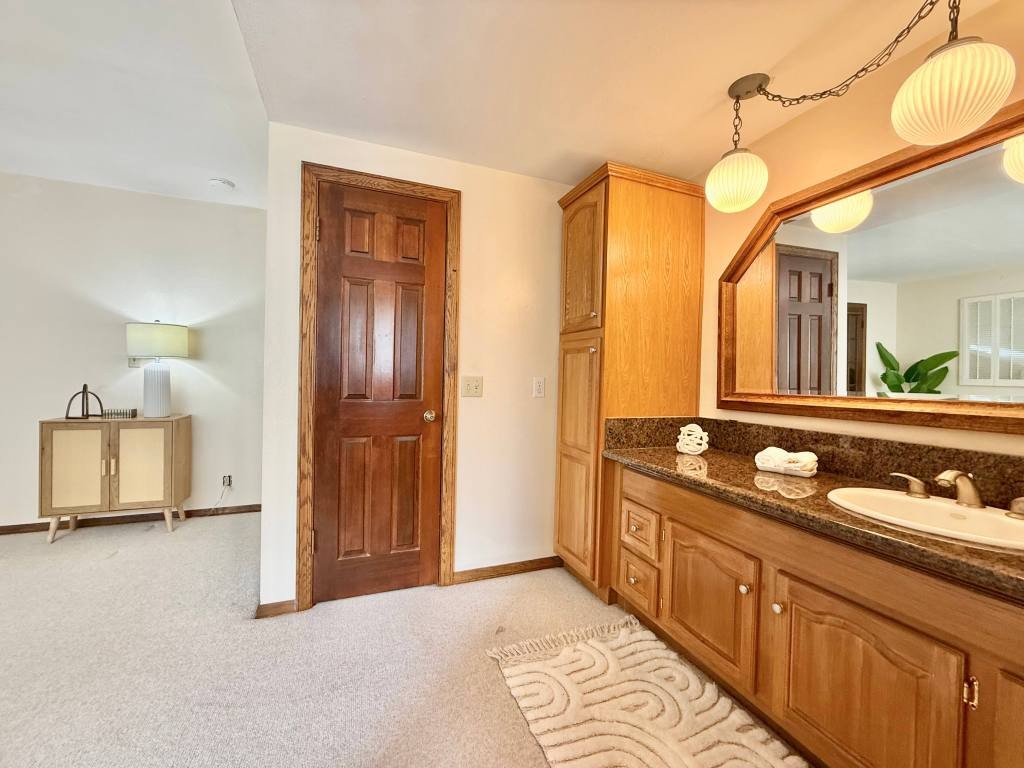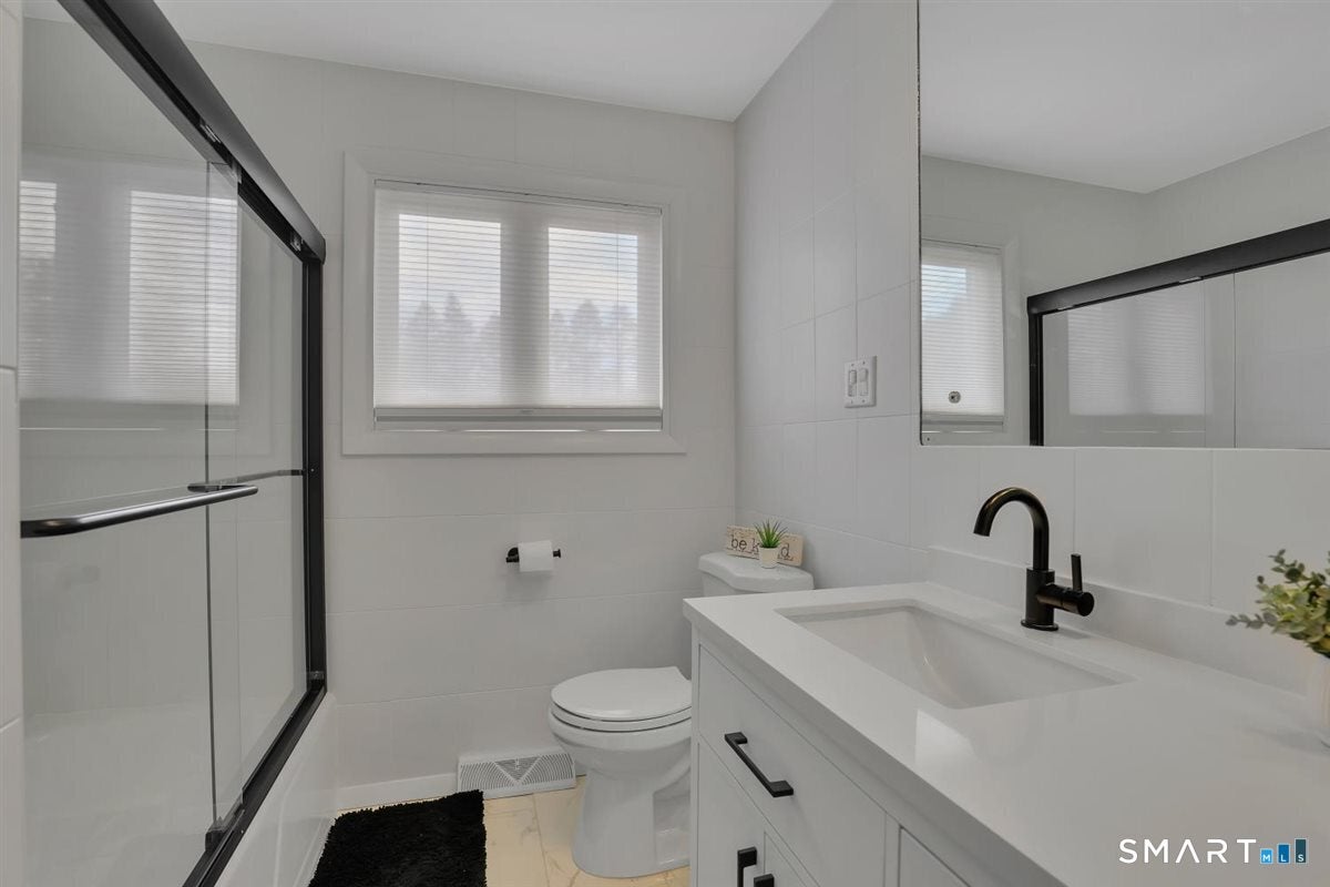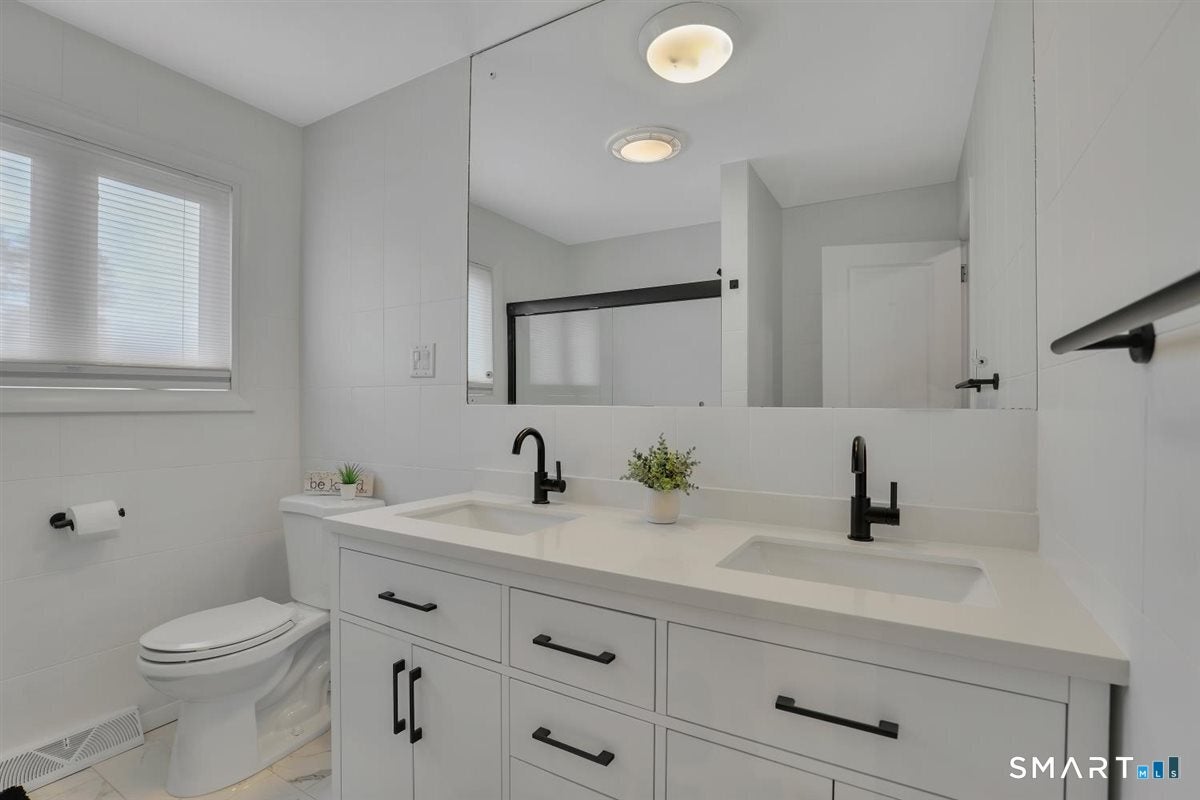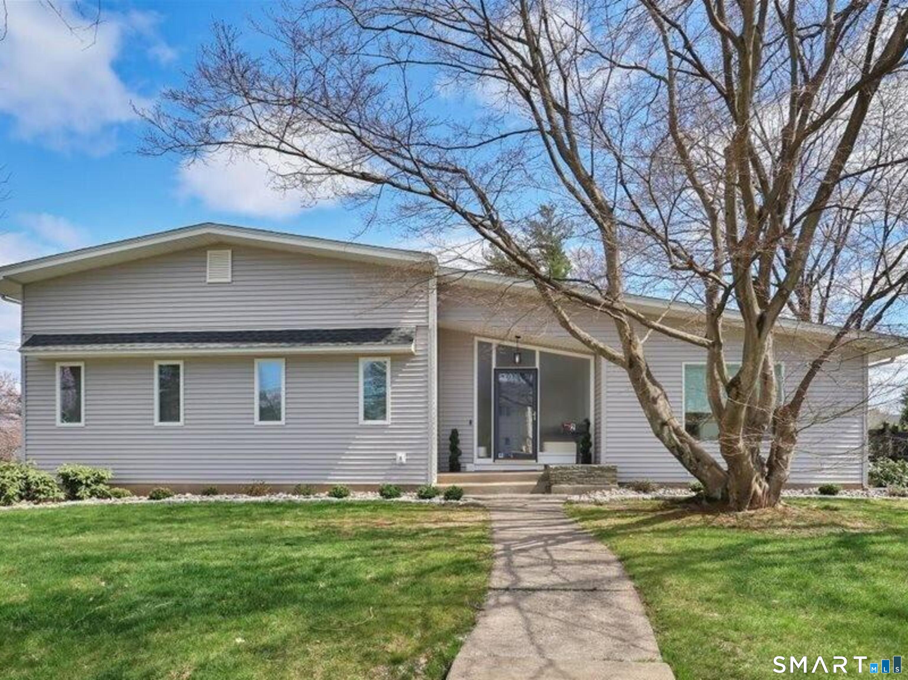 Step into this beautiful West Hartford home where modern updates meet warm, inviting charm. This 3-bedroom, 3-bath residence features a newly remodeled kitchen with quartz countertops, neutral wood cabinetry, elegant gold accents, and high-end appliances, including a Dacor wall oven and island cooktop. Just off the kitchen, the dining area offers sliding glass doors that lead to the deck-perfect for easy outdoor entertaining and grilling. The main level boasts a spacious family room that flows seamlessly from the kitchen, highlighted by wood flooring throughout and a striking floor-to-ceiling calcite stone fireplace as a stunning focal point. The lower level provides additional living flexibility with a private entrance, full modern bath, cedar closet, and expanded storage space for added convenience. A split two-car garage with stone veneer enhances both curb appeal and durability. Additional features include a brand new roof and an oversized kitchen window that fills the home with natural light. The first-floor primary suite offers a spa-like retreat with double sinks, a full shower, and a jacuzzi tub. Ideally located in a highly desirable location, this home offers the perfect blend of comfort, style, and lasting value.
