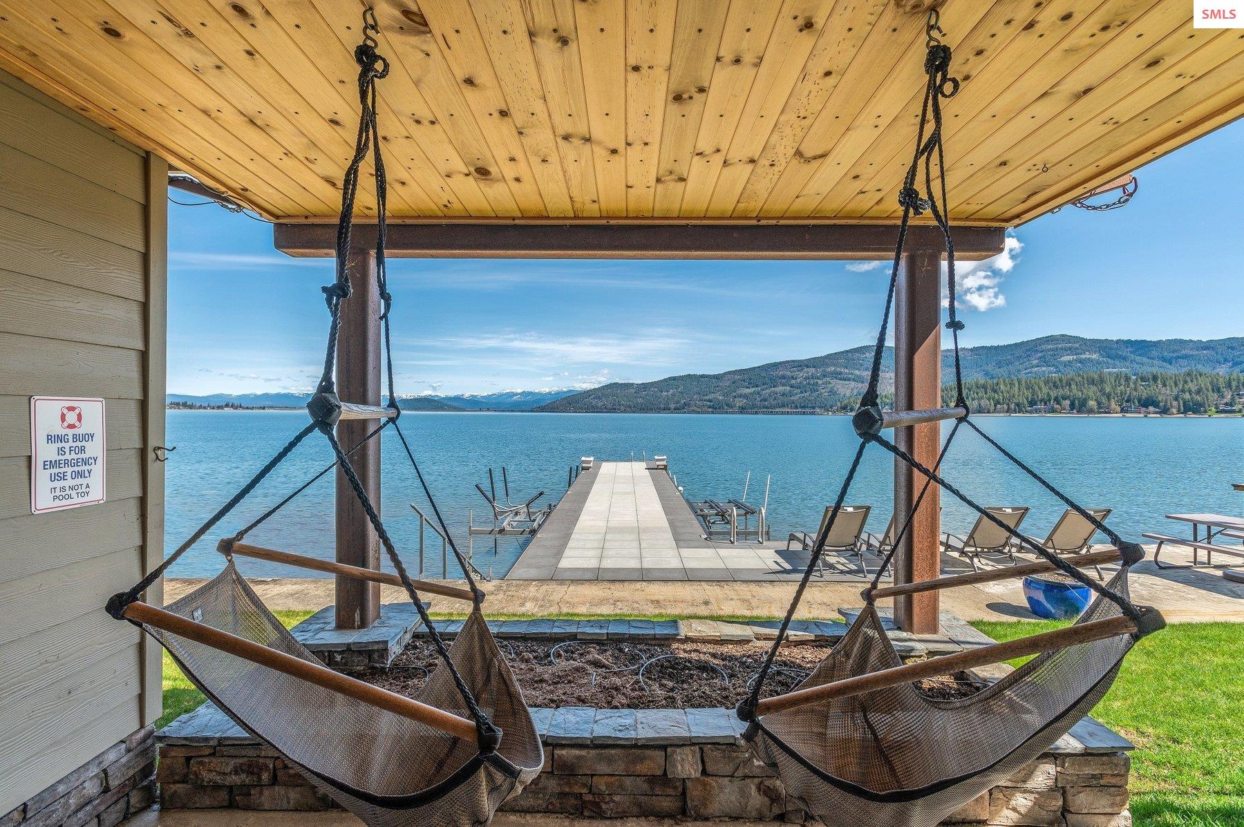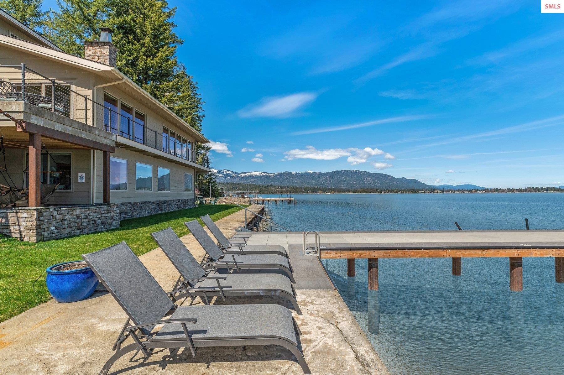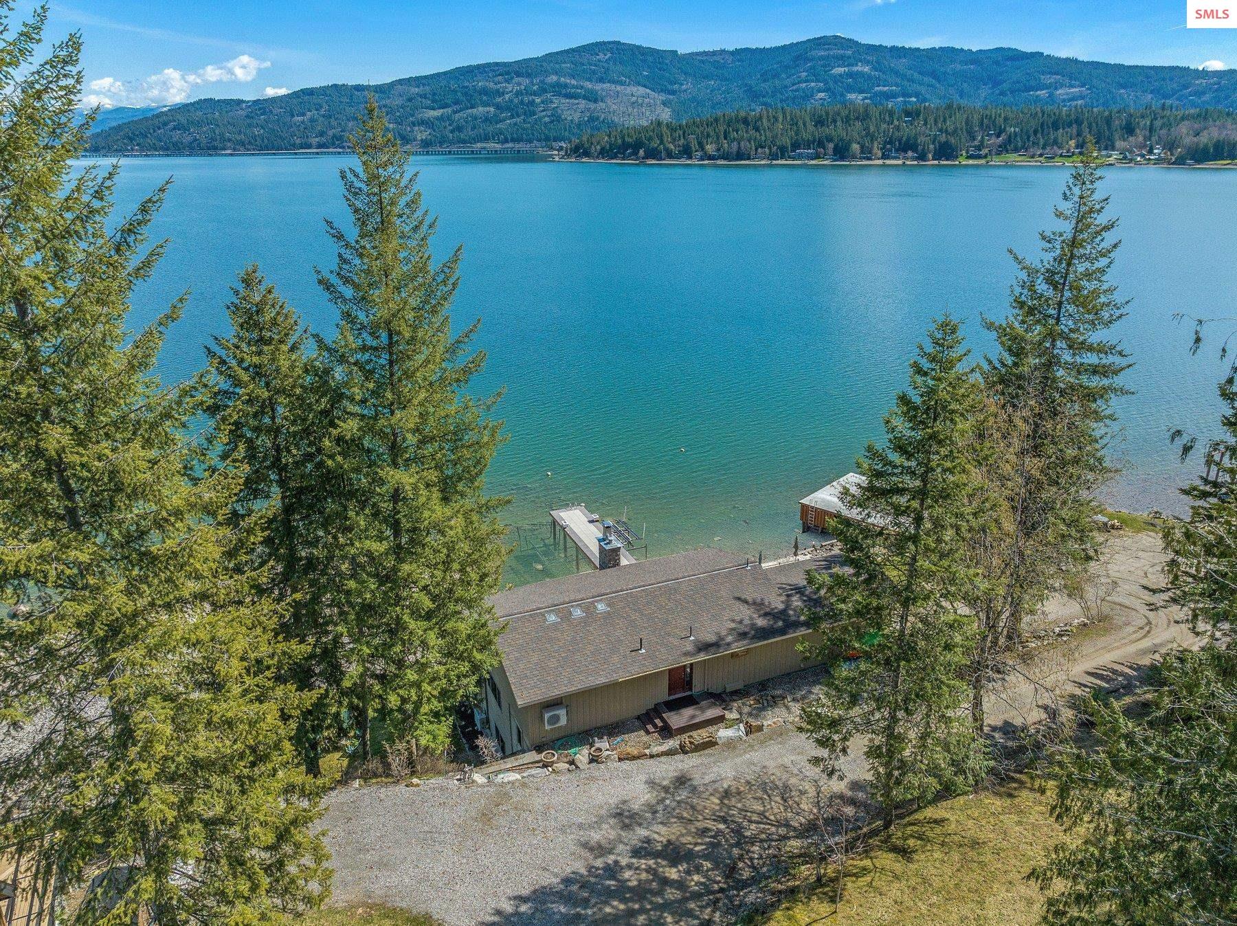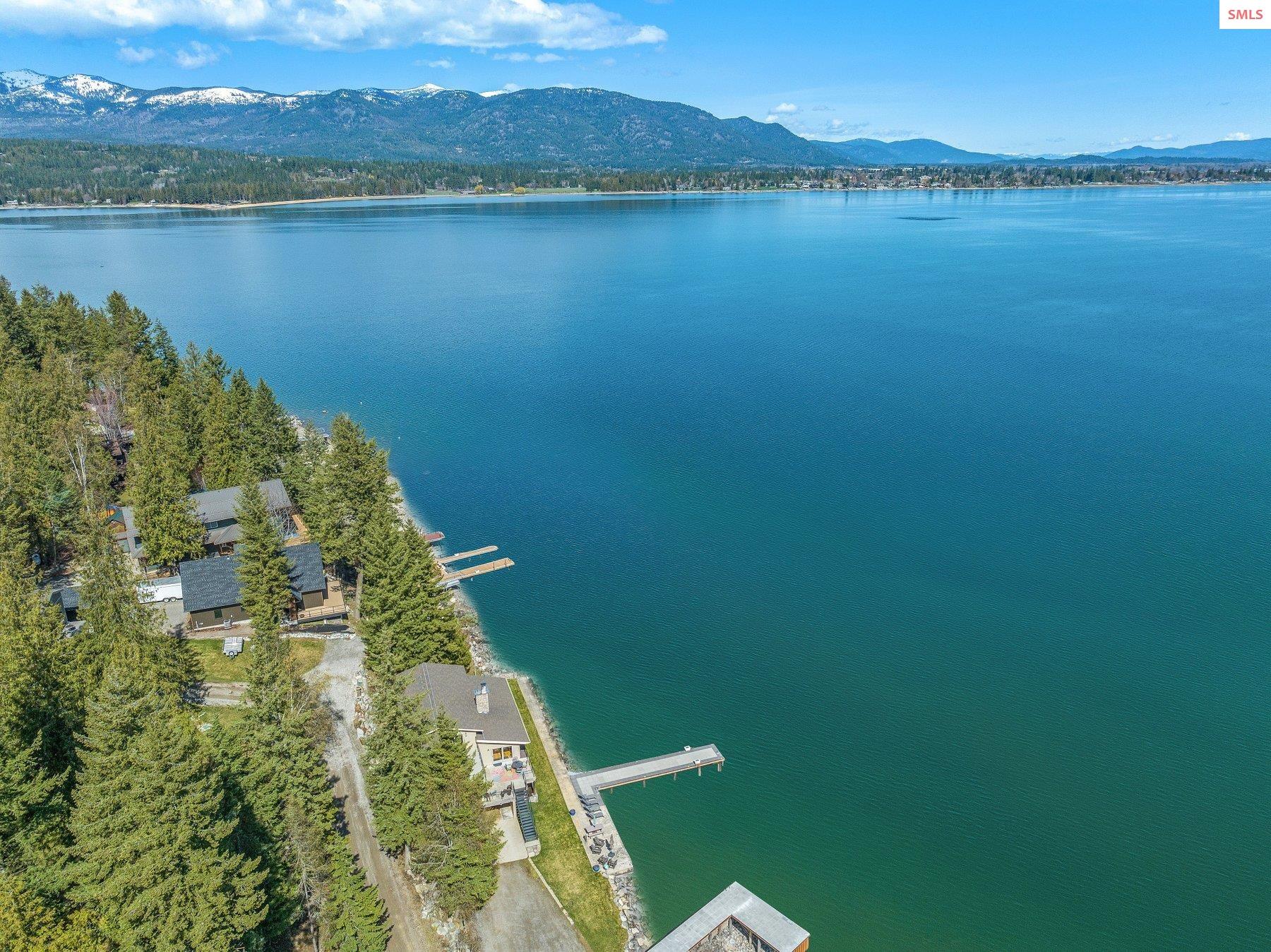 Unparalleled private 123- feet of level frontage on the Pend Oreille. This incredible waterfront estate situated on highly desirable Murphy Bay, affectionately referred to as the Gold Coast is just minutes from Sandpoint and Schweitzer Mountain Resort. Imagine your morning coffee sitting on one of several decks watching the eagles and osprey soaring over the water. This truly special opportunity features a custom 4500 sq ft. home with 6 bedrooms, 5 baths, gourmet kitchen w/ large island, Liebheir refrigerators, granite counters, under cabinet lighting, double ovens, attached butlers pantry w/ ice maker, warming drawer, washer/dryer and custom cabinets. View bedroom off pantry has separate entrance and bathroom, and would make a perfect home office. Rustic solid Hickory wood floors on two levels. Family room and living room each have wrap a round big water views and a fireplace to cozy up and take in the beautiful sun and moon rises. Private 1200 sq ft. master suite w/ breathtaking water views has its own exterior separate entrance, washer/dryer, wet bar, private deck, electronic black out pleated shades, custom bathroom w/ heated floors, walk-in tiled shower/steam room, jetted tub and large walk-in closet w/ island and built-in cabinets. Spacious car port with attached 680 sq ft. storage/wine/utility room. Newer 700 sq ft dock w/ concrete deck, and sea wall w/ stairs into the weed-less, clear deep water. Gather around the firepit at the waters edge to hear everyones favorite memory of the day. Large two story detached garage with room for an RV AND a pontoon boat, upper garage permitted for a future ADU with water and sewer connections paid. The attention to detail is evident throughout. This special home has only had two separate owners- Let your family legacy on the Pend Oreille begin here.