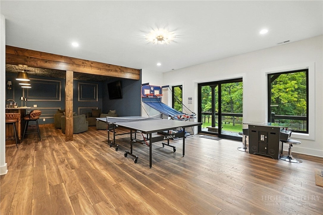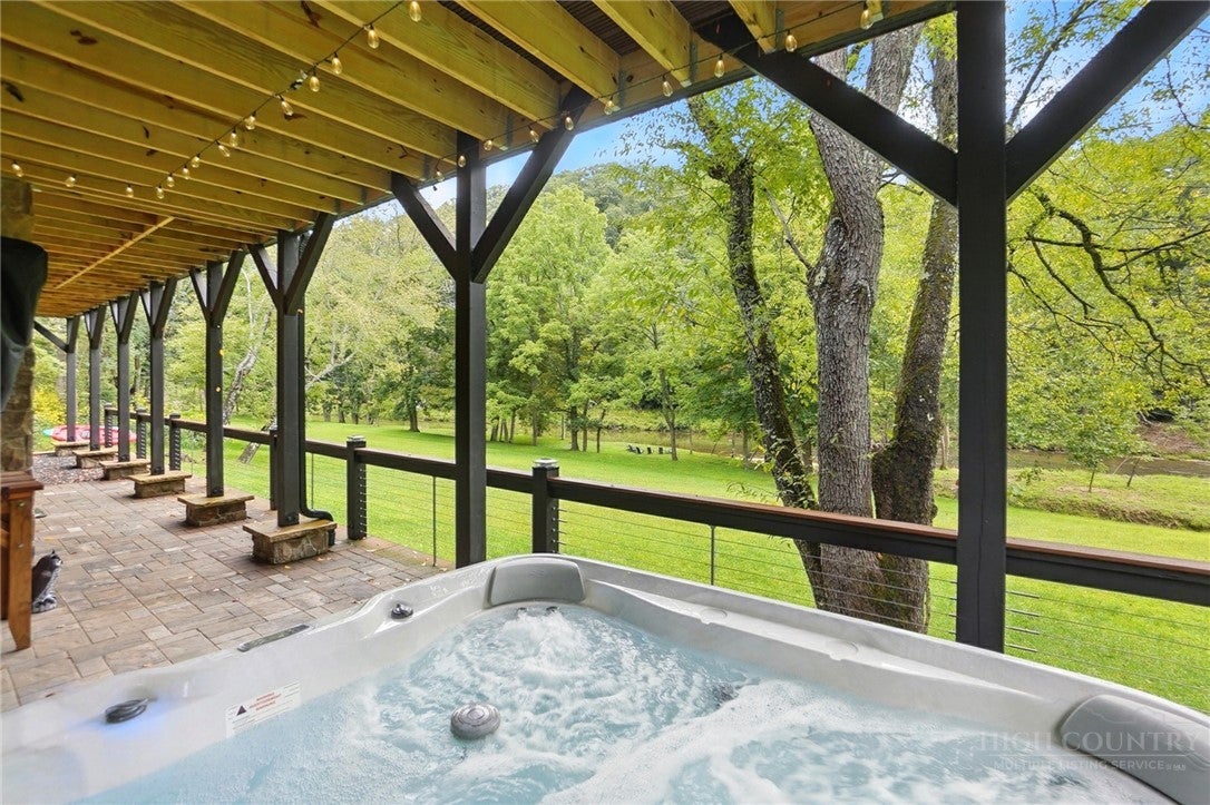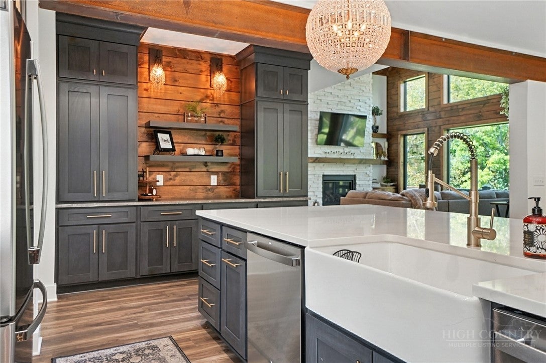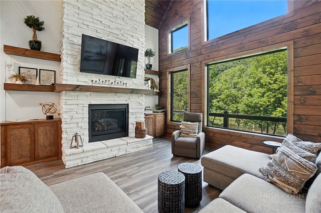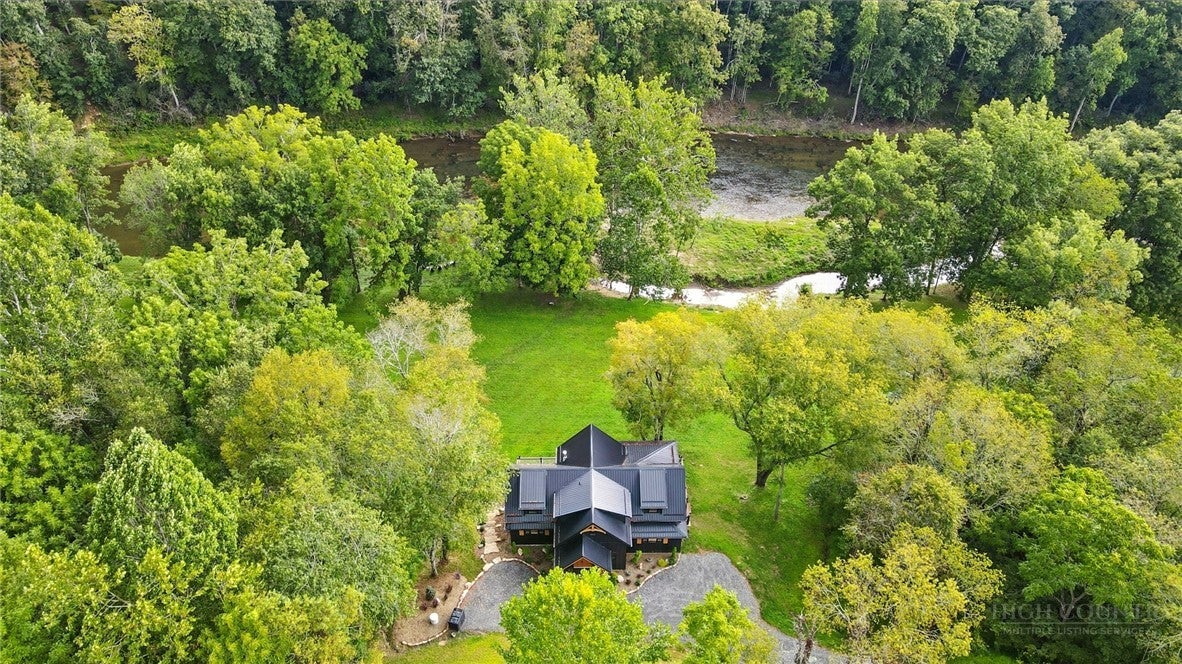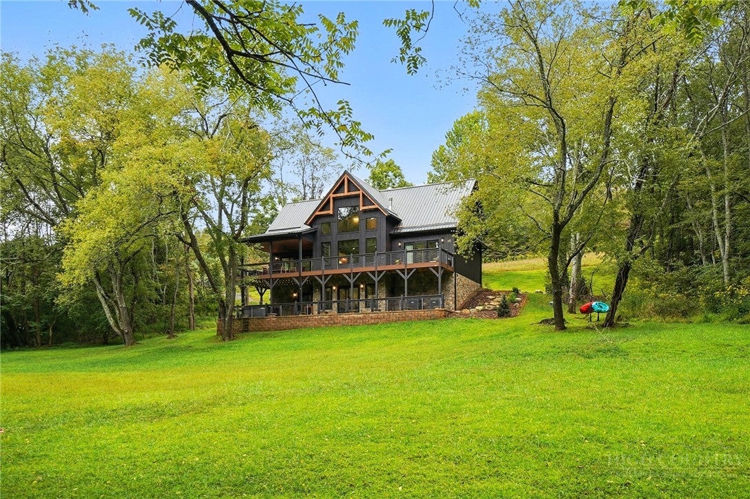 Step inside to discover the modern finishes and thoughtful details that adorn this home, from the open concept layout to the abundance of natural light that shines through the expansive windows overlooking the New River! The heart of the home is the contemporary kitchen, complete with sleek appliances, Quartz countertops, custom cabinetry, a coffee bar, accent wall, and ample storage space for all your culinary needs. The primary bedroom is on the main level with wood accent beams, walk-in closet, and views of the river. Primary bathroom continues the modern theme of the home with a floor-to-ceiling tiled shower, dual vanities, and elegant fixtures. On the third level of the home, you will find two large bedrooms with en-suite bathrooms and a loft area that can be used for a home office. Entertain in the spacious living area or take the festivities outdoors to the 1.5-acre lot and large wraparound deck. Unwind in the evenings in your very own hot tub, creating an oasis of relaxation and breathtaking views of the river and the surrounding mountainside. You may even see a family of deer. For those seeking additional space, the large basement offers more entertainment options with a recreation area and well-equipped bar with a speak easy vibe. The bunk room with a full bathroom completes the basement area. Dont miss your chance to make this modern farmhouse property your own personal sanctuary, where peaceful riverside living meets contemporary luxury. Schedule your showing today and start living the lifestyle youve always dreamed of. Property is being sold fully furnished aside from a few items.