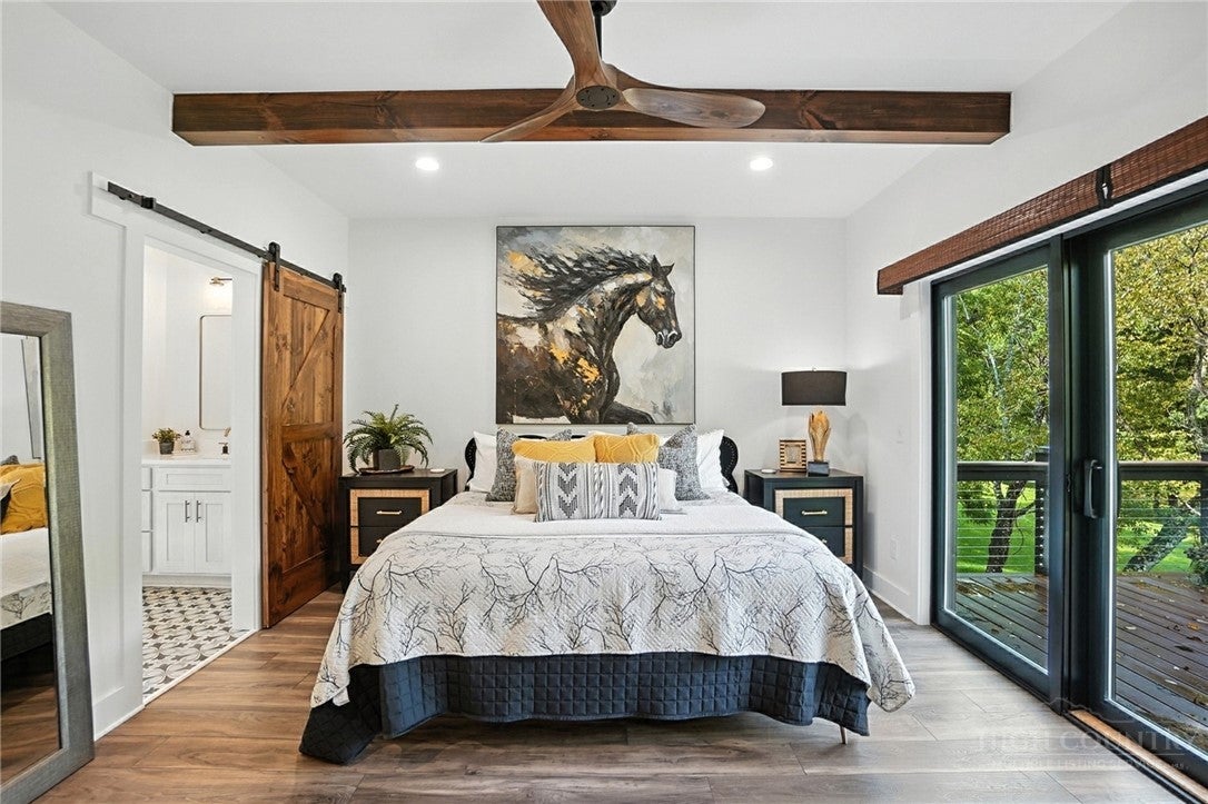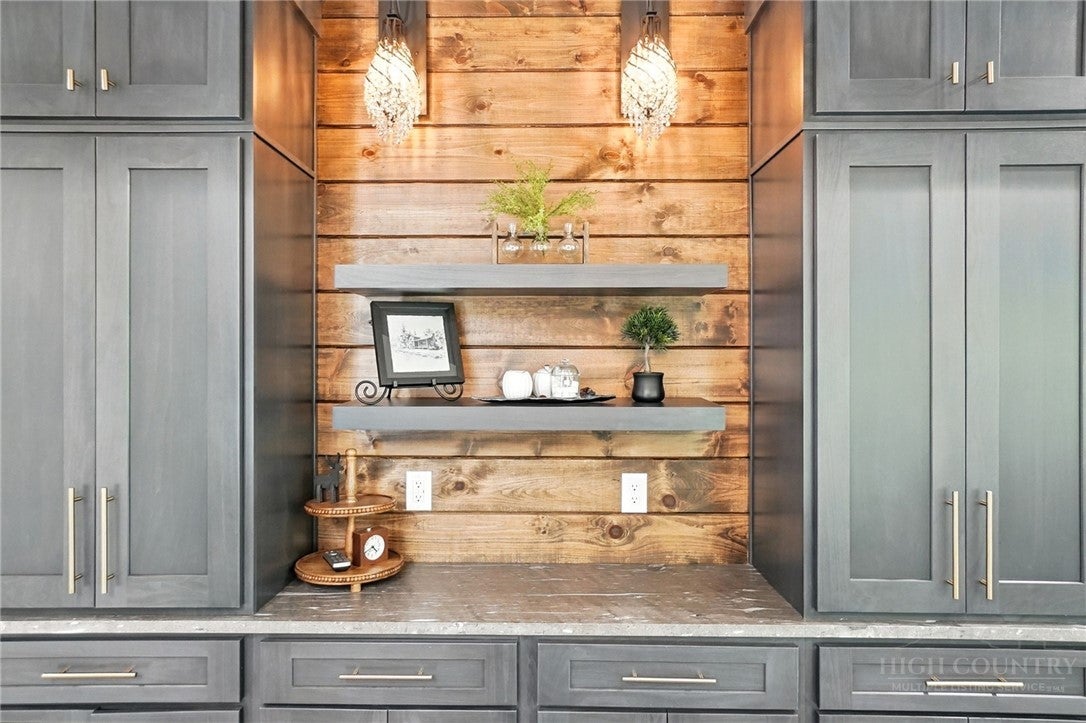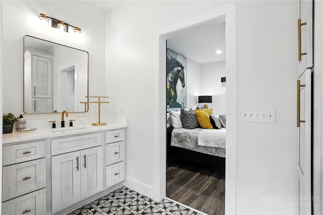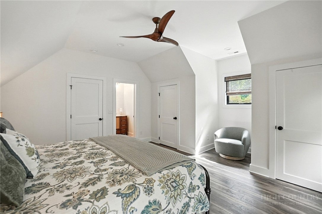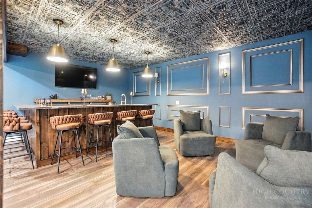 Step inside to discover the modern finishes and thoughtful details that adorn this home, from the open concept layout to the abundance of natural light that shines through the expansive windows overlooking the New River! The heart of the home is the contemporary kitchen, complete with sleek appliances, Quartz countertops, custom cabinetry, a coffee bar, accent wall, and ample storage space for all your culinary needs. The primary bedroom is on the main level with wood accent beams, walk-in closet, and views of the river. Primary bathroom continues the modern theme of the home with a floor-to-ceiling tiled shower, dual vanities, and elegant fixtures. On the third level of the home, you will find two large bedrooms with en-suite bathrooms and a loft area that can be used for a home office. Entertain in the spacious living area or take the festivities outdoors to the 1.5-acre lot and large wraparound deck. Unwind in the evenings in your very own hot tub, creating an oasis of relaxation and breathtaking views of the river and the surrounding mountainside. You may even see a family of deer. For those seeking additional space, the large basement offers more entertainment options with a recreation area and well-equipped bar with a speak easy vibe. The bunk room with a full bathroom completes the basement area. Dont miss your chance to make this modern farmhouse property your own personal sanctuary, where peaceful riverside living meets contemporary luxury. Schedule your showing today and start living the lifestyle youve always dreamed of. Property is being sold fully furnished aside from a few items.