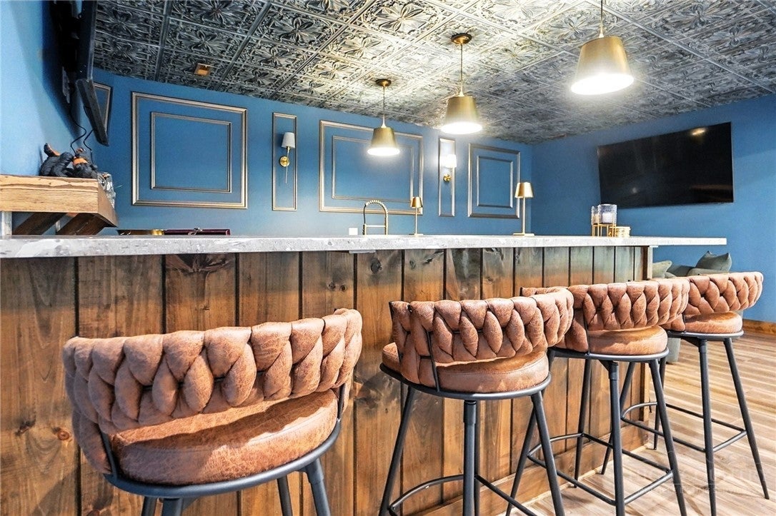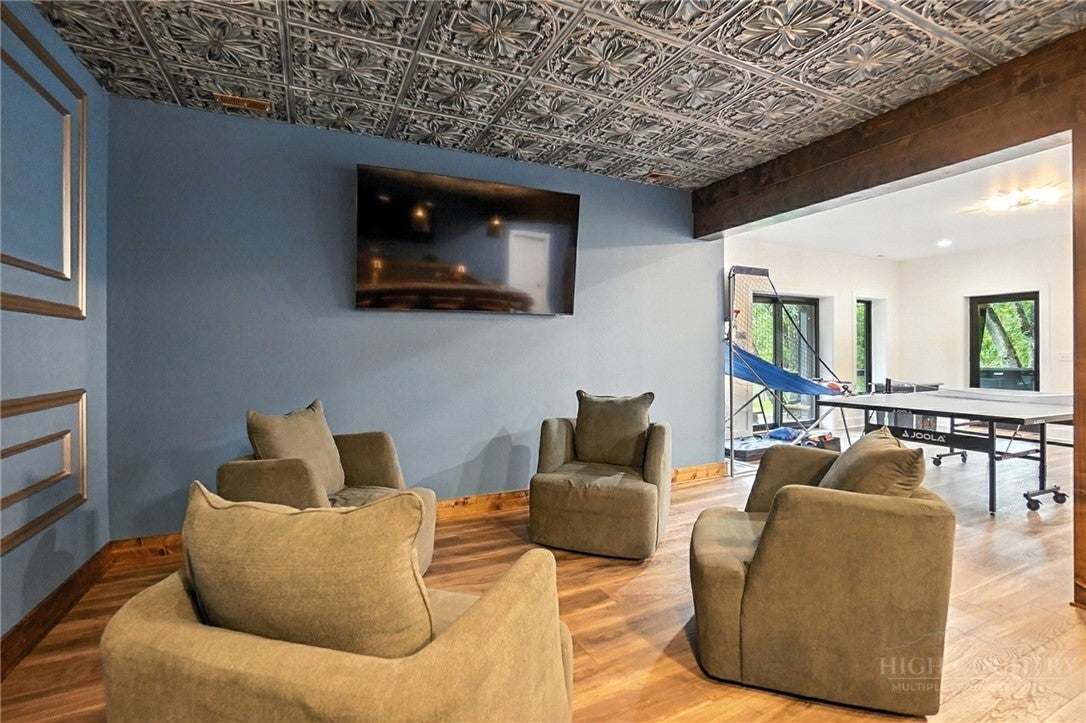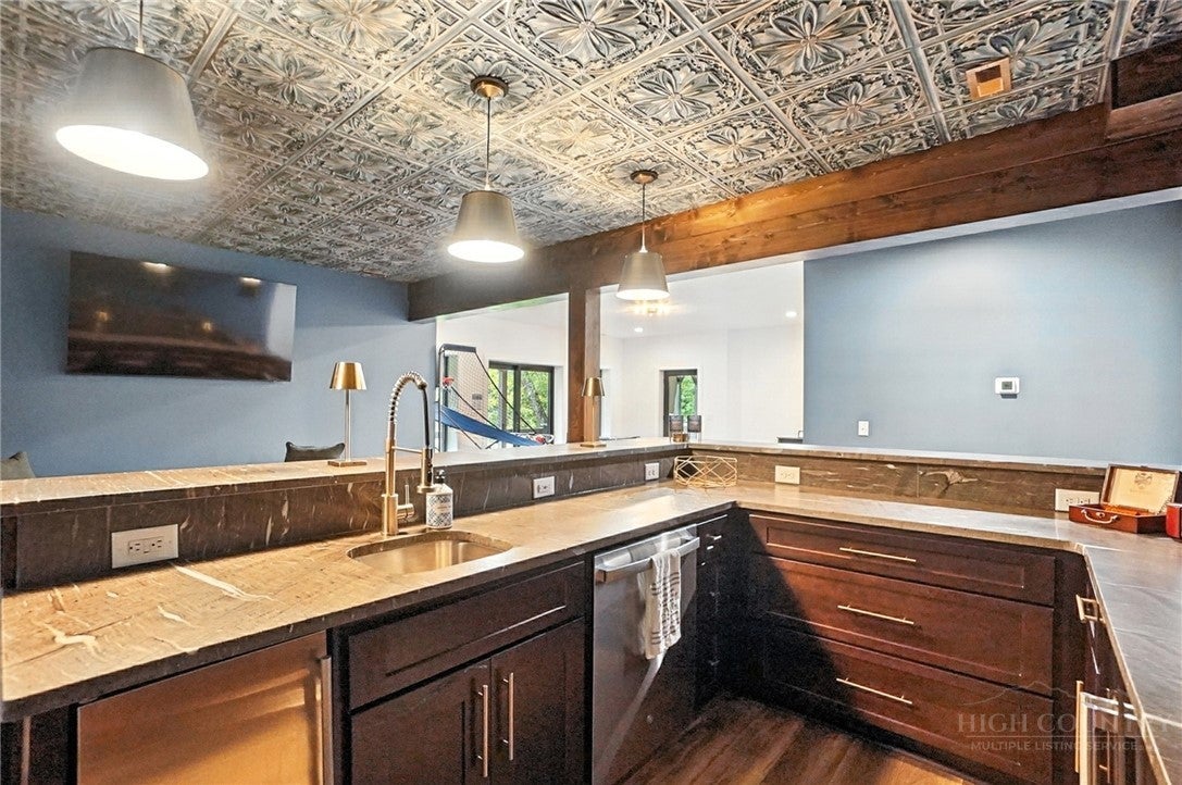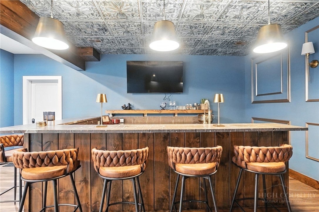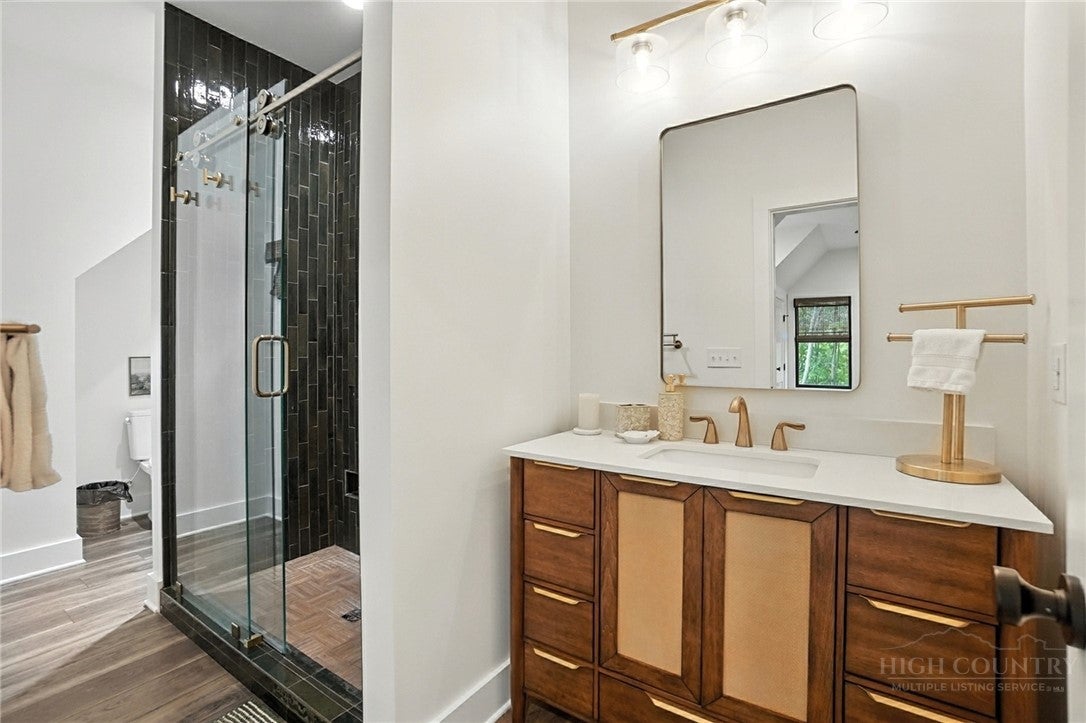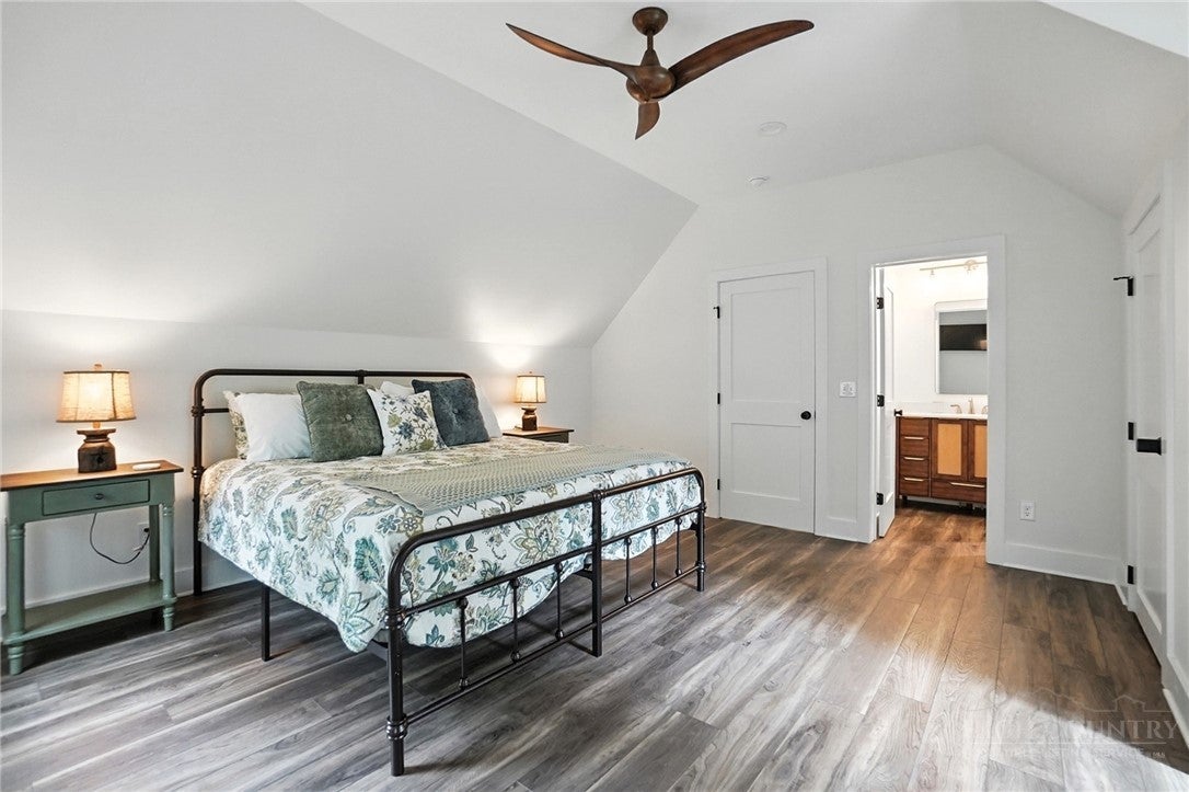 Step inside to discover the modern finishes and thoughtful details that adorn this home, from the open concept layout to the abundance of natural light that shines through the expansive windows overlooking the New River! The heart of the home is the contemporary kitchen, complete with sleek appliances, Quartz countertops, custom cabinetry, a coffee bar, accent wall, and ample storage space for all your culinary needs. The primary bedroom is on the main level with wood accent beams, walk-in closet, and views of the river. Primary bathroom continues the modern theme of the home with a floor-to-ceiling tiled shower, dual vanities, and elegant fixtures. On the third level of the home, you will find two large bedrooms with en-suite bathrooms and a loft area that can be used for a home office. Entertain in the spacious living area or take the festivities outdoors to the 1.5-acre lot and large wraparound deck. Unwind in the evenings in your very own hot tub, creating an oasis of relaxation and breathtaking views of the river and the surrounding mountainside. You may even see a family of deer. For those seeking additional space, the large basement offers more entertainment options with a recreation area and well-equipped bar with a speak easy vibe. The bunk room with a full bathroom completes the basement area. Dont miss your chance to make this modern farmhouse property your own personal sanctuary, where peaceful riverside living meets contemporary luxury. Schedule your showing today and start living the lifestyle youve always dreamed of. Property is being sold fully furnished aside from a few items.