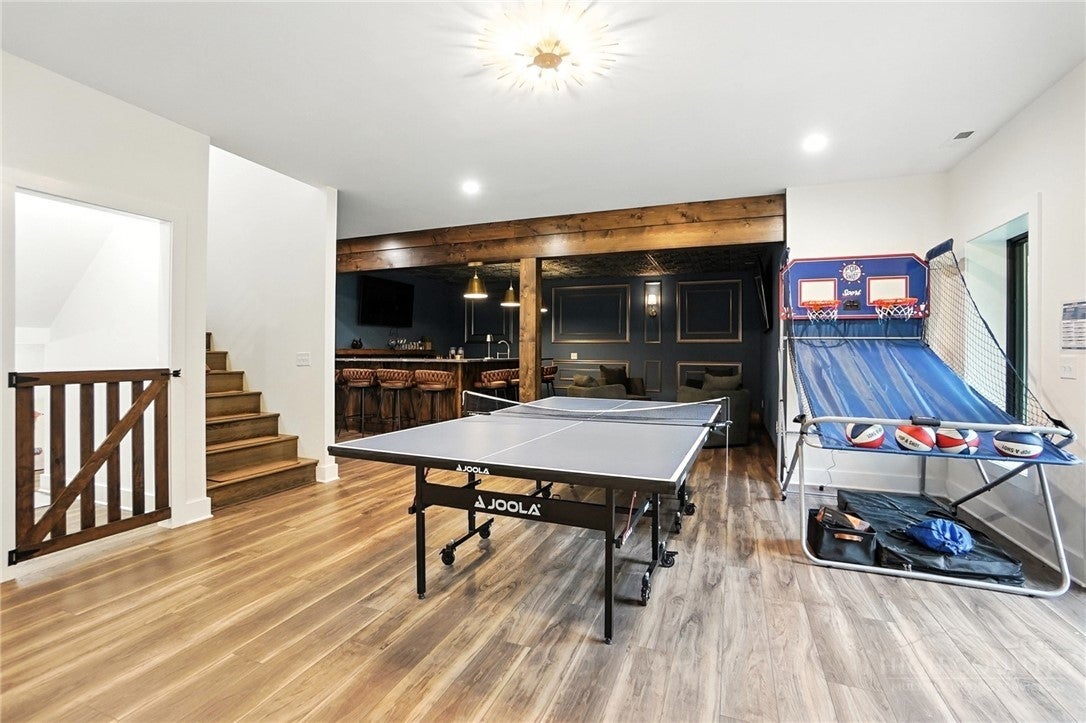 Welcome to 4282 159th Avenue NE in the highly desirable Kohler Farms development in Ham Lake, where modern design meets peaceful, spacious living. This stunning Eternity Homes Tahoe rambler offers thoughtfully designed one-level living with an open-concept layout perfect for todays lifestyle. The vaulted main living area is filled with natural light, enhanced by striking black Andersen windows and rich engineered wood flooring throughout the main spaces. The kitchen is both stylish and functional, featuring oversized modern cabinetry, quartz countertops, and a generous walk-in pantry, ideal for everyday living and effortless entertaining. Quality craftsmanship shines in every detail, from the stained, onsite-finished trim and doors to the impressive 8-foot doors on both levels. The smart split-bedroom design provides privacy, with the owners suite set apart as its own retreat. Enjoy a seamless flow from the bedroom to a spa-like bath and into a spacious walk-in closet with direct access to the laundry room, true convenience and comfort. The finished walkout lower level expands your living space with 9-foot ceilings and large windows, creating a bright and welcoming environment perfect for gatherings, relaxation, or recreation. The oversized 4-car garage is a standout feature and is fully finished, insulated and includes a garage heater, making it ideal for car enthusiasts, hobbyists, or extra storage year-round. Kohler Farms is one of Ham Lakes newest and most sought-after communities, offering a blend of newer construction homes, spacious homesites, and a serene setting surrounded by nature. Residents enjoy a quiet, neighborhood feel while still being within easy reach of everyday conveniences. Living in Ham Lake means embracing a lifestyle that balances tranquility and accessibility. The area is known for its abundant green space, lakes, and outdoor recreation. Spend weekends exploring nearby parks, trails, and golf courses, or enjoy local favorites like Ham Lake Park and Majestic Oaks Golf Club. With a strong sense of community, local events, and convenient access to shopping, dining, and major commuting routes, Ham Lake offers the perfect place to call home. If youre looking for a beautifully crafted home in a growing community that offers space, privacy, and a connection to the outdoors, this Kohler Farms rambler is a must-see.