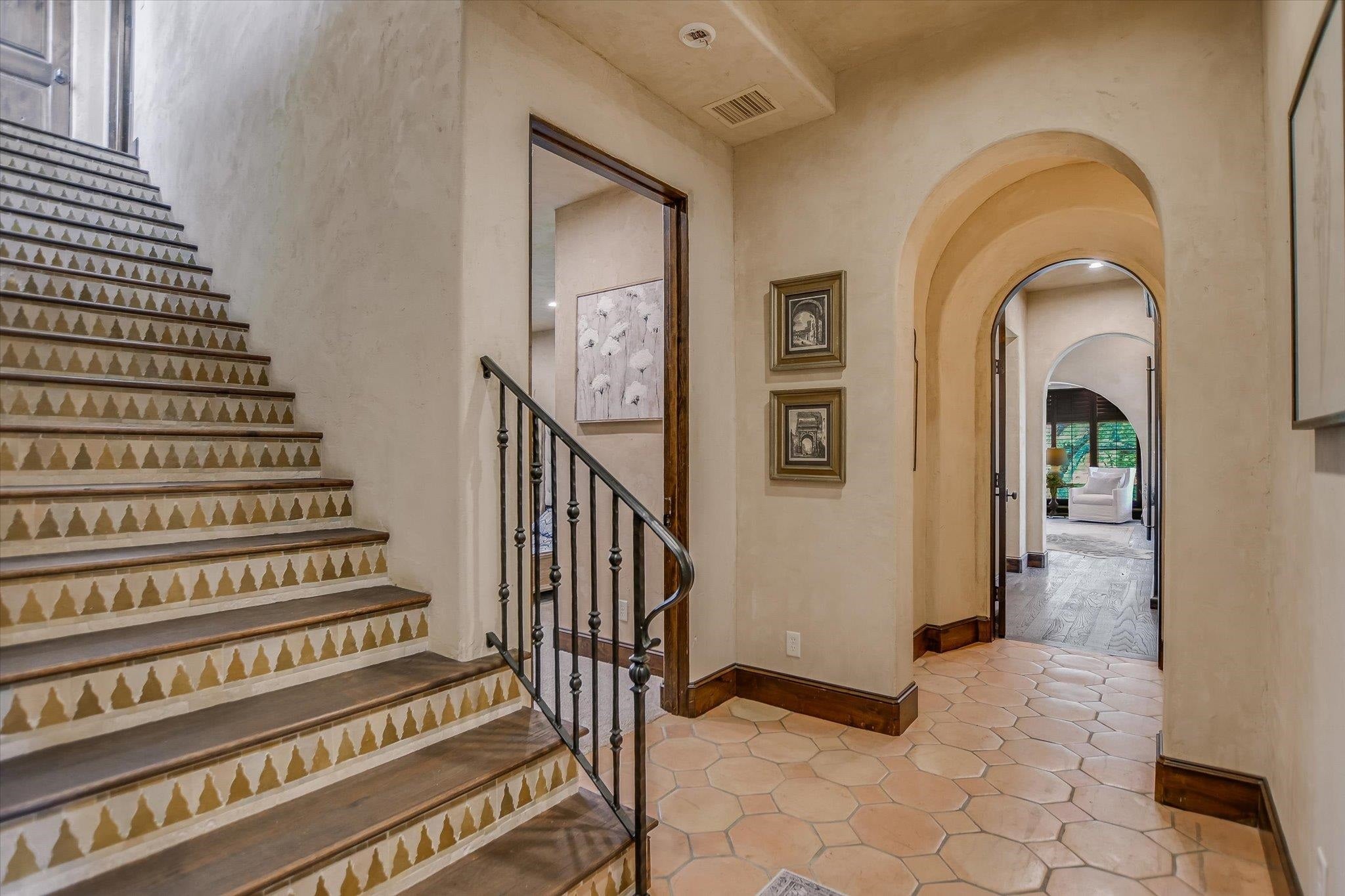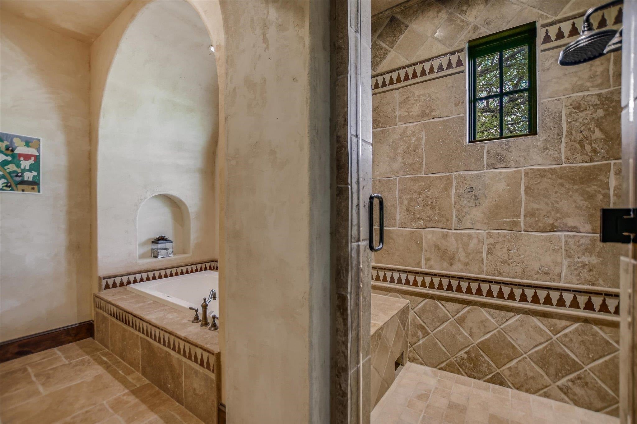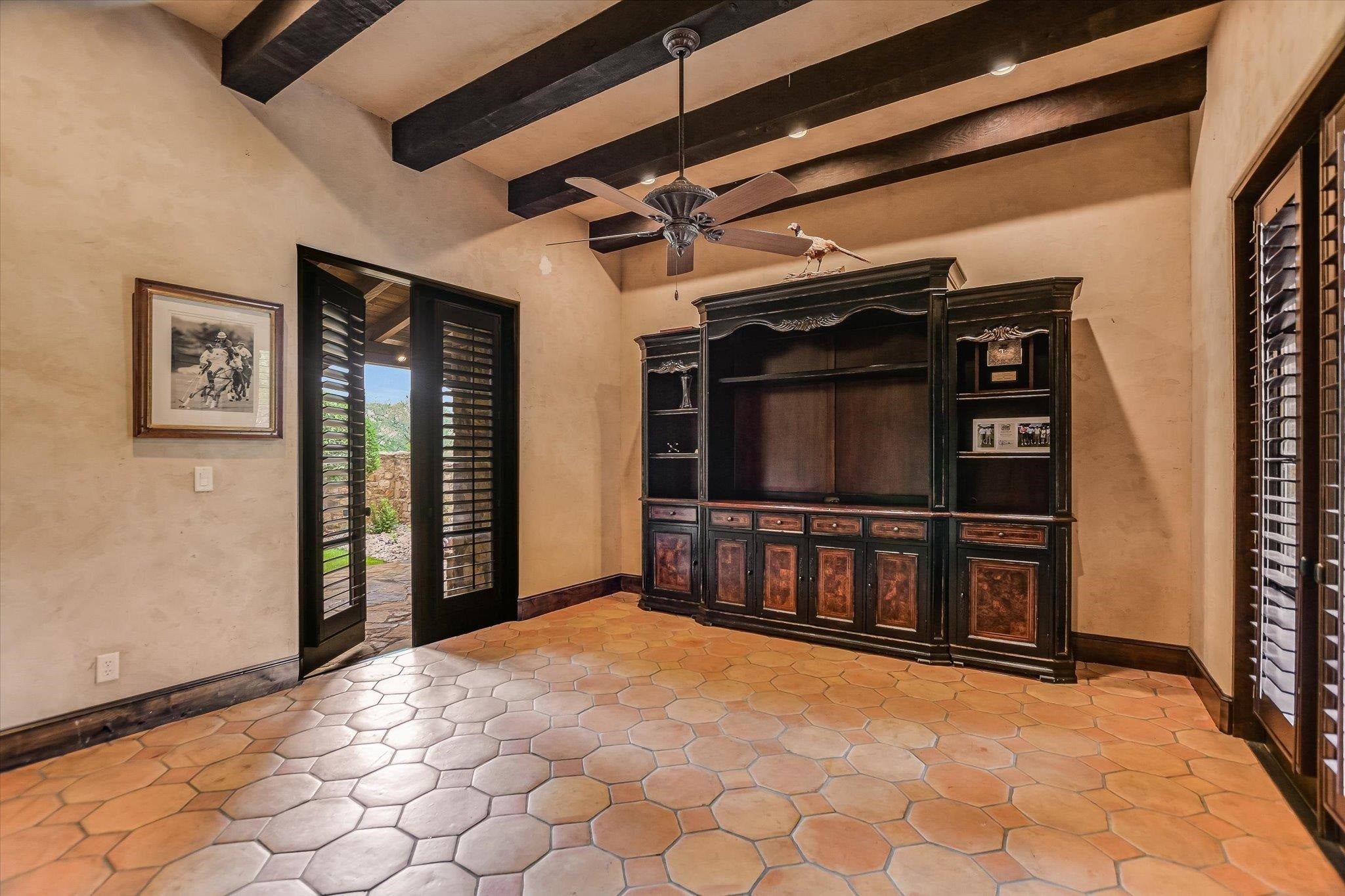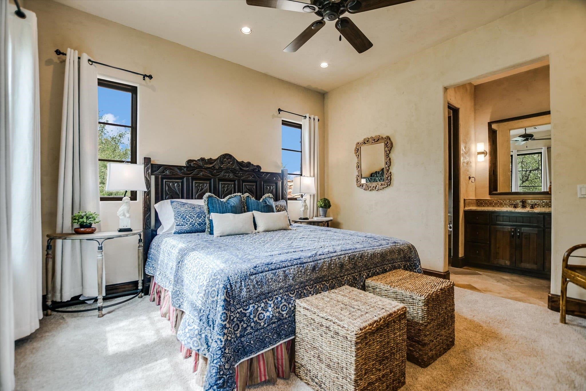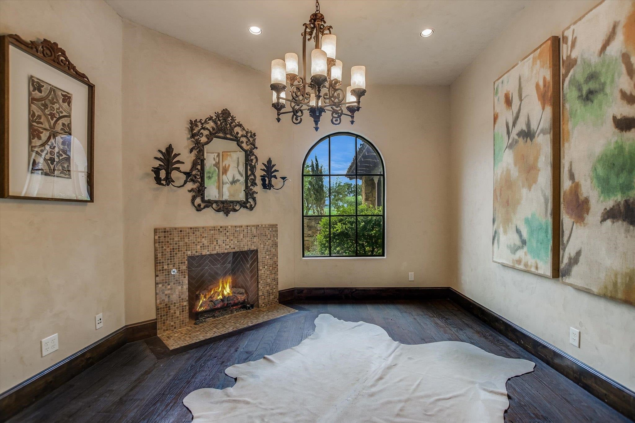 A front courtyard fireplace sets the tone, where the glow of the fire and the stillness of the Hill Country create a natural place to gather. From this warm and welcoming entry, 100 Milagro unfolds into a thoughtfully crafted 3,352 sq. ft. residence within the private gates of Escondido Golf & Lake Club, offering a refined yet relaxed approach to luxury living. Arched passageways, rich wood beams, and hand-selected finishes define the interiors, where the main living and dining spaces open beneath soaring ceilings and center around a stone fireplace. The chefs kitchen is both functional and inviting, featuring custom cabinetry and a generous island, with an adjoining bonus space anchored by its own fireplace, offering flexibility for a second living area, media room, or breakfast nook. The home offers four bedrooms and four full baths, including a spacious primary suite with a sitting area, spa-like bath, and expansive walk-in closet. An upstairs guest suite provides a private, tucked-away retreatideal for hosting family and friendswhile a fourth bedroom or study with patio access is well-suited for guests or a quiet workspace. Outdoor living continues on the covered back patio with fireplace, creating a comfortable extension of the home for year-round enjoyment and relaxed gatherings. Overlooking an expansive backyard shaded by mature trees, the setting offers both privacy and space to unwind, with the potential to add a pool and create a true resort-style retreat.
