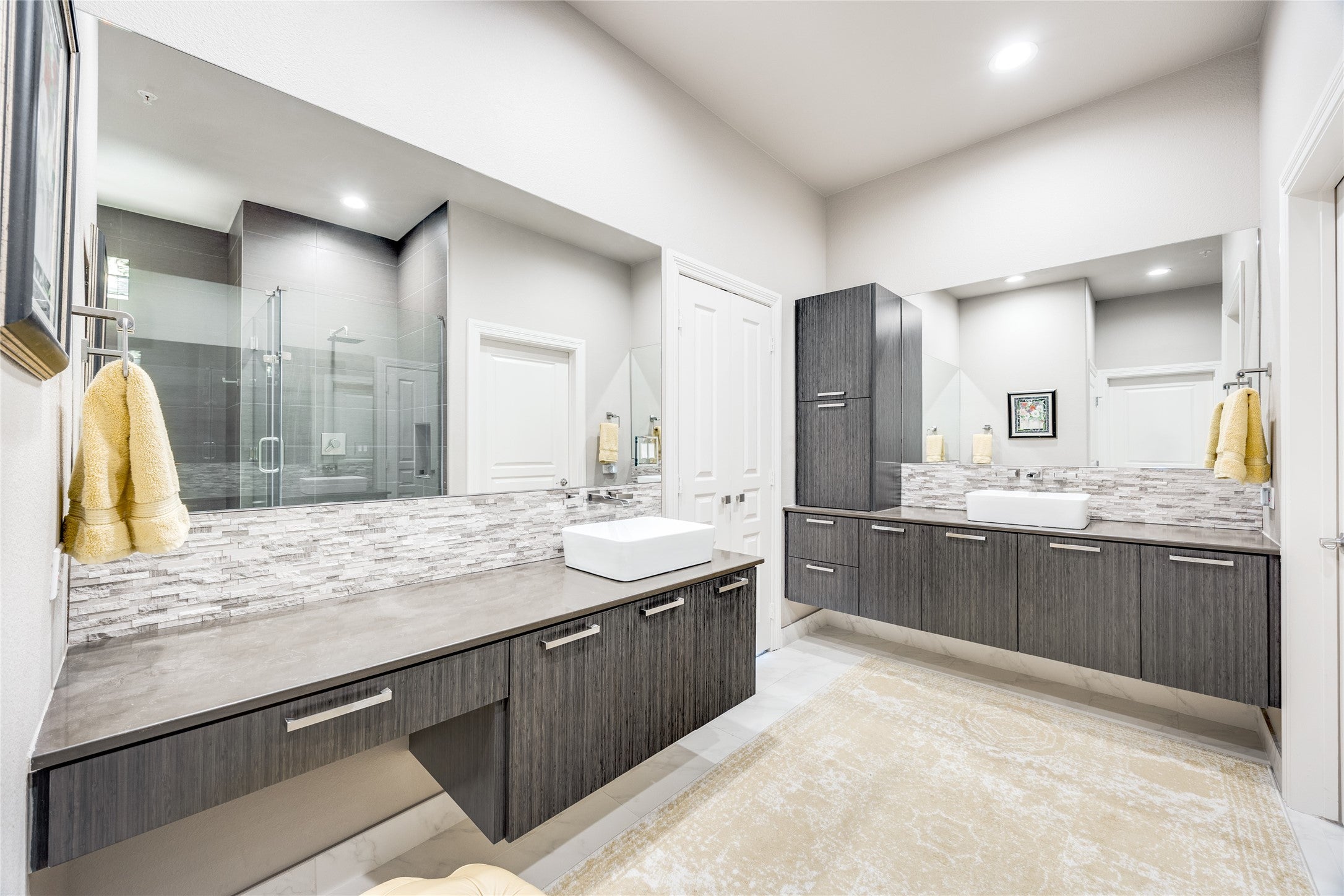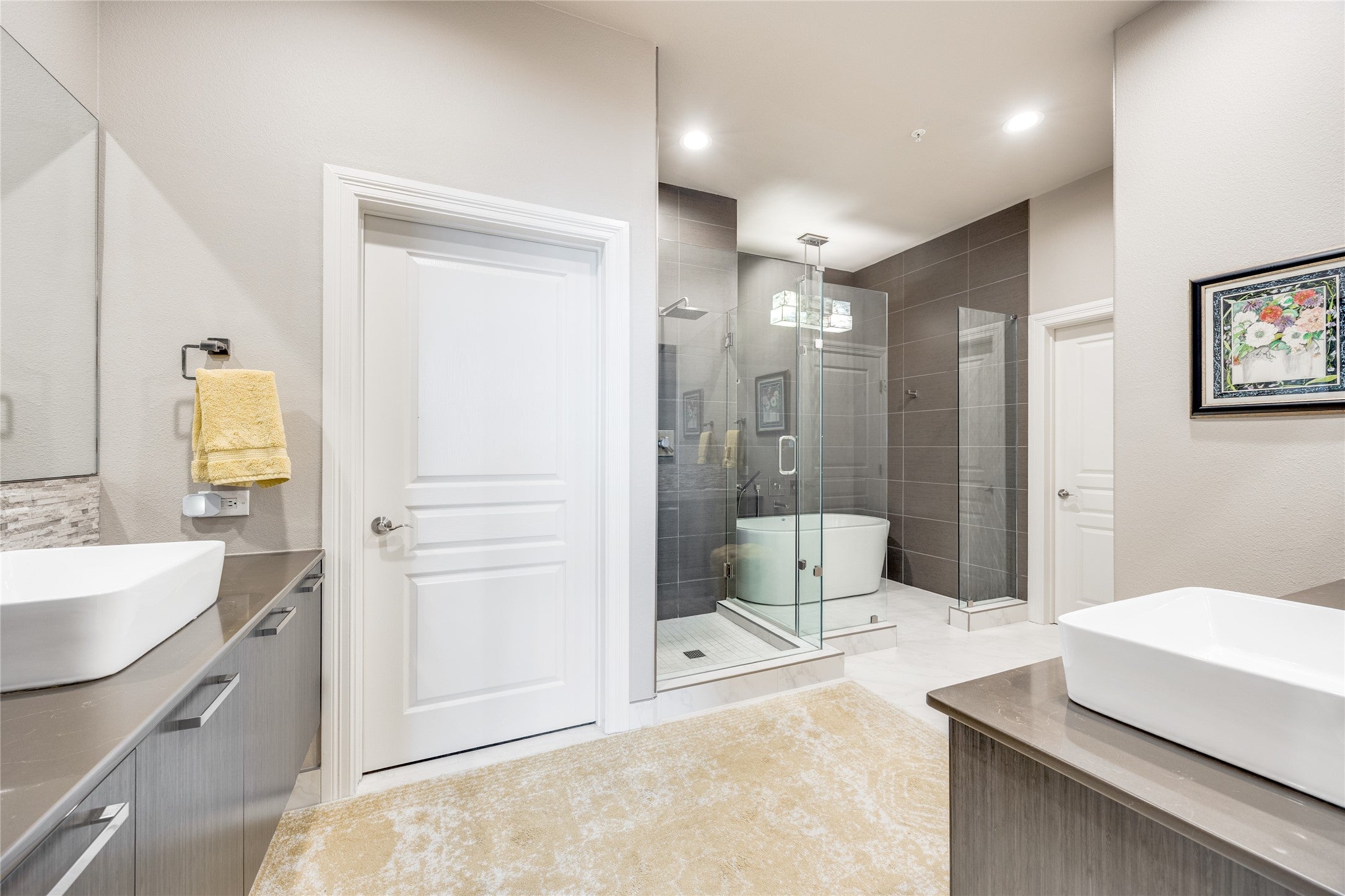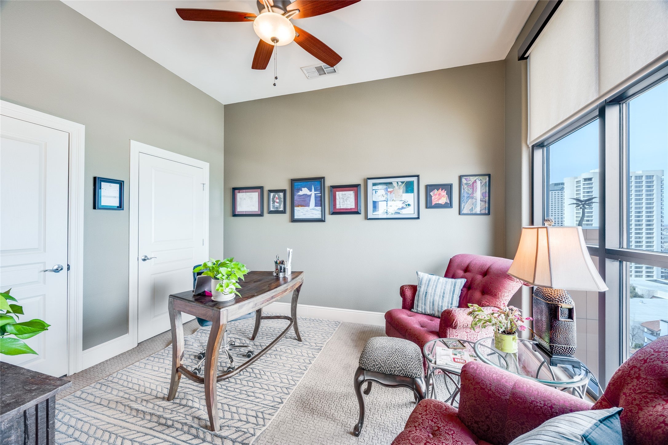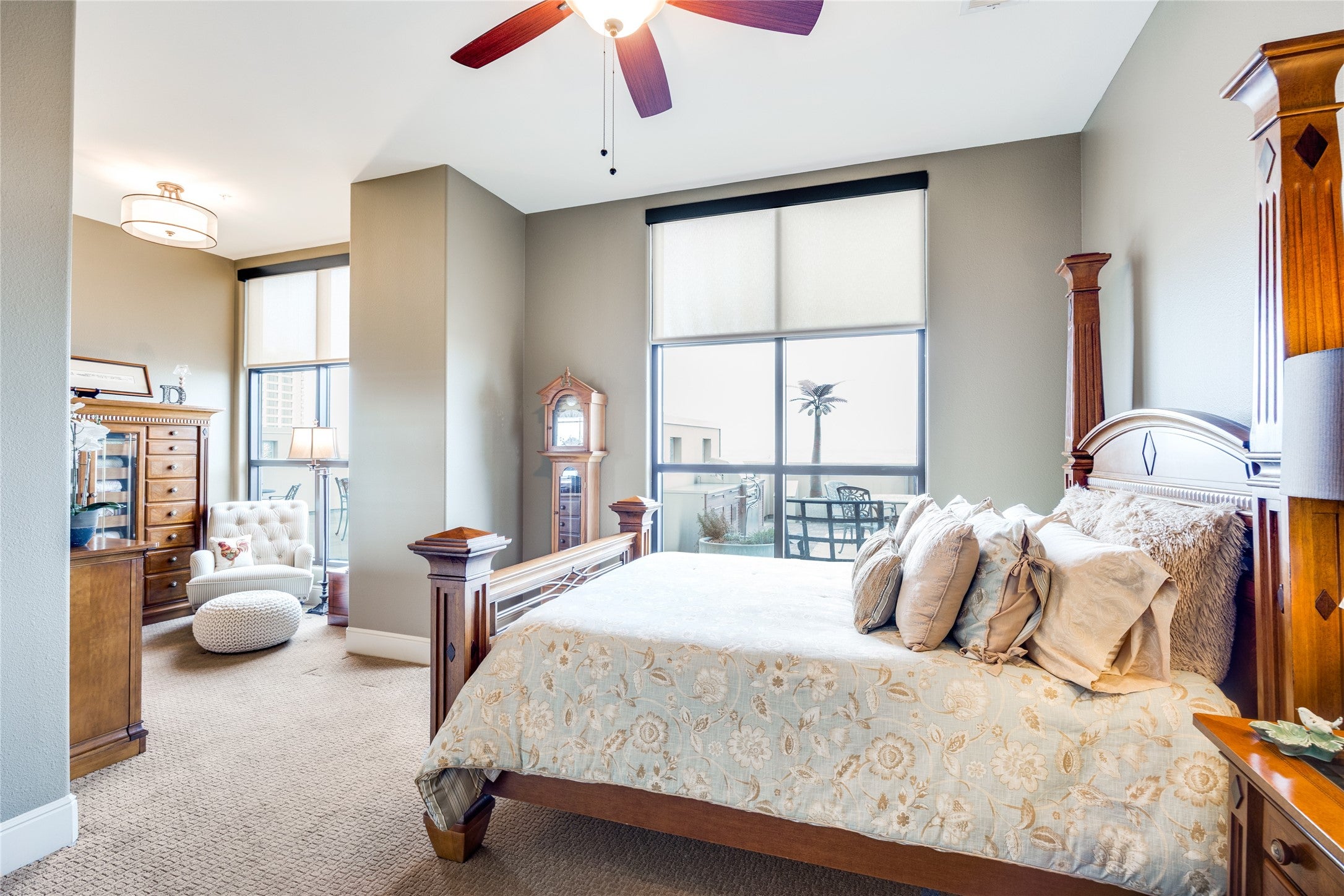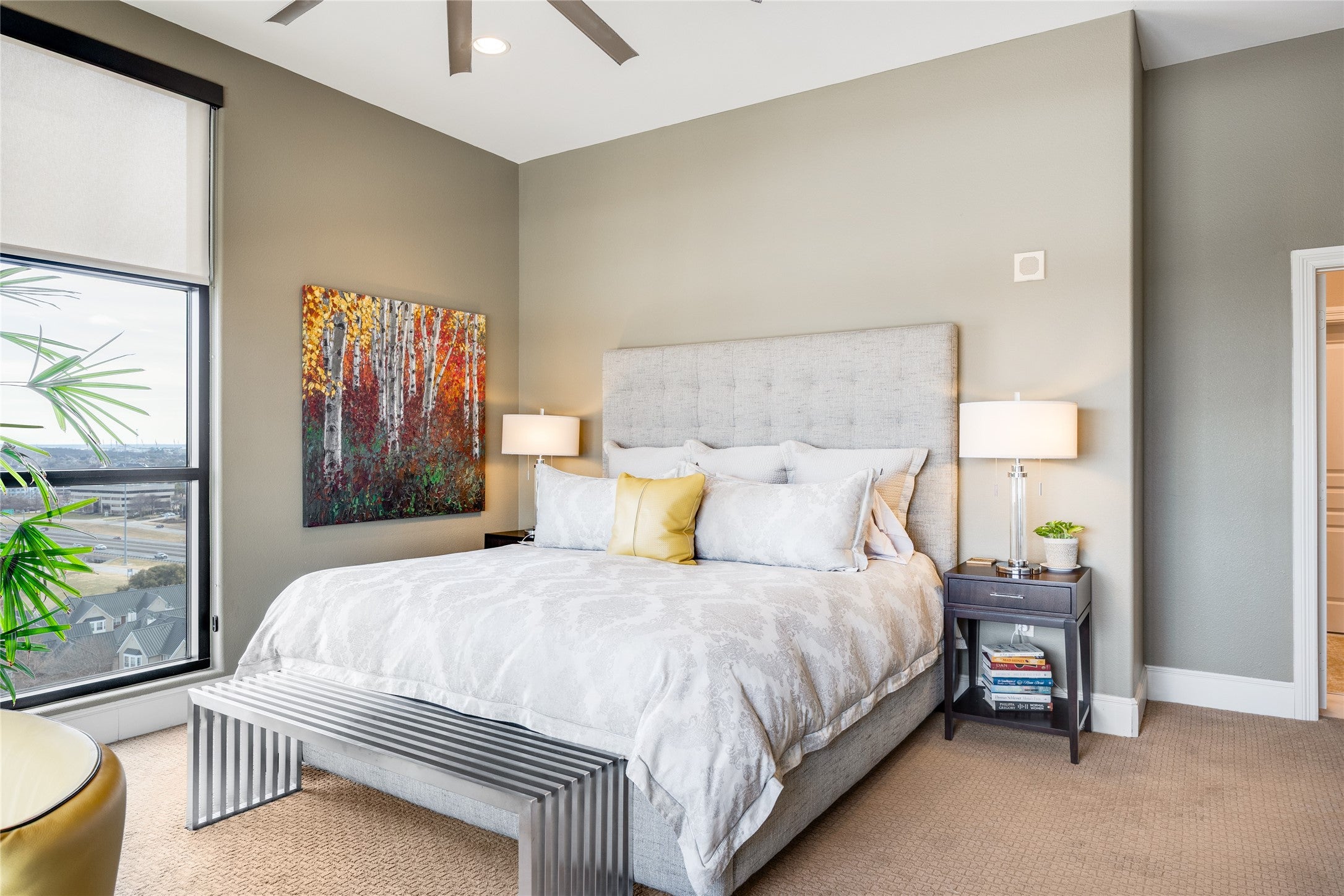 Experience elevated living in this exceptional 15th-floor penthouse at Grand Treviso, ideally positioned above the waterways of Las Colinas. With no shared walls, this rare residence offers remarkable privacy and tranquility rarely found in high-rise living. Designed for both refined entertaining and everyday comfort, the expansive interior features custom wood front doors, hardwood and designer flooring, custom lighting, a gourmet kitchen, dry bar, and a grand living and dining space framed by walls of windows capturing sweeping east-facing views. Each bedroom includes a private study or sitting area, offering flexible space for work or relaxation. Outdoor living is equally impressive, with over 700 square feet of private terraces, including a separate terrace off the main living area complete with a grilling station and water feature, perfect for enjoying sunrises, entertaining guests, or unwinding above the city. This thoughtfully designed home includes two bedrooms, two and a half beautifully remodeled baths, a chefs kitchen with KitchenAid appliances, induction cooktop, double ovens, and breakfast bar, along with expansive walls ideal for showcasing art. Professionally designed by Mary Ann Smiley Interiors and Heidi Arwine Interiors, every detail reflects elevated style and sophistication. Additional highlights include two premium parking spaces near the entrance and a private storage suite on the third floor. Residents of Grand Treviso enjoy concierge-level amenities including a grand lobby, 24-hour concierge, fitness center, business and conference facilities, clubroom, and a rooftop pool and spa overlooking Lake Carolyn. Located just steps from the Las Colinas canals, dining, and entertainment, with convenient access to DFW Airport, Love Field, and major destinations. This is a rare opportunity to own a private penthouse retreat offering luxury, privacy, and panoramic views in one of Las Colinas most iconic addresses.