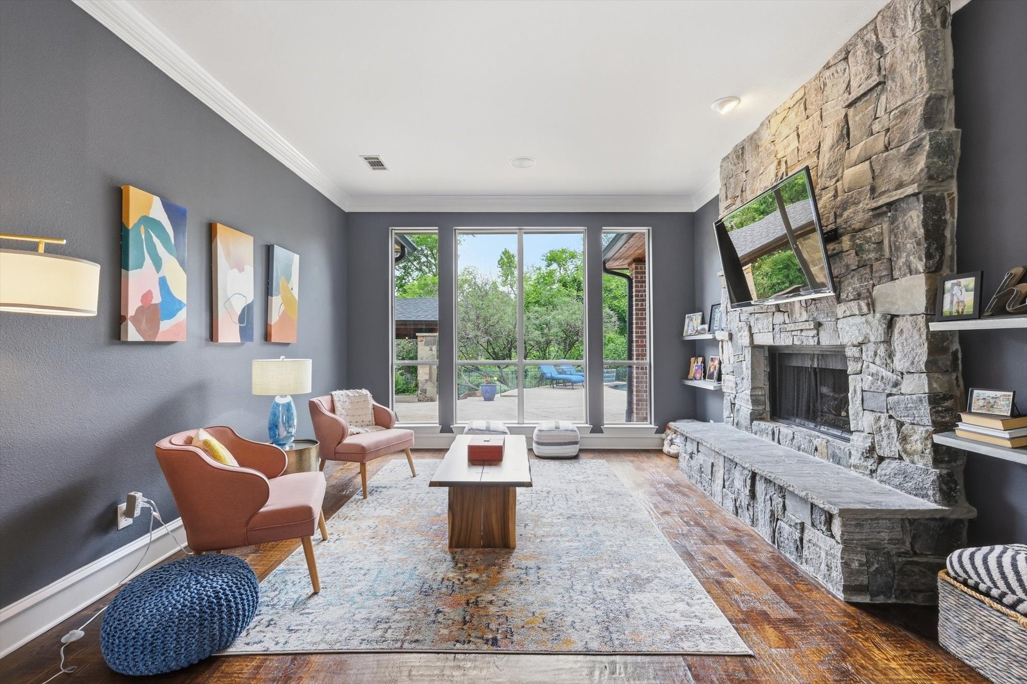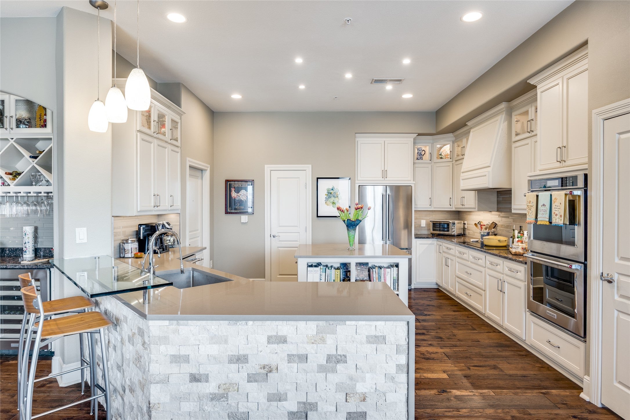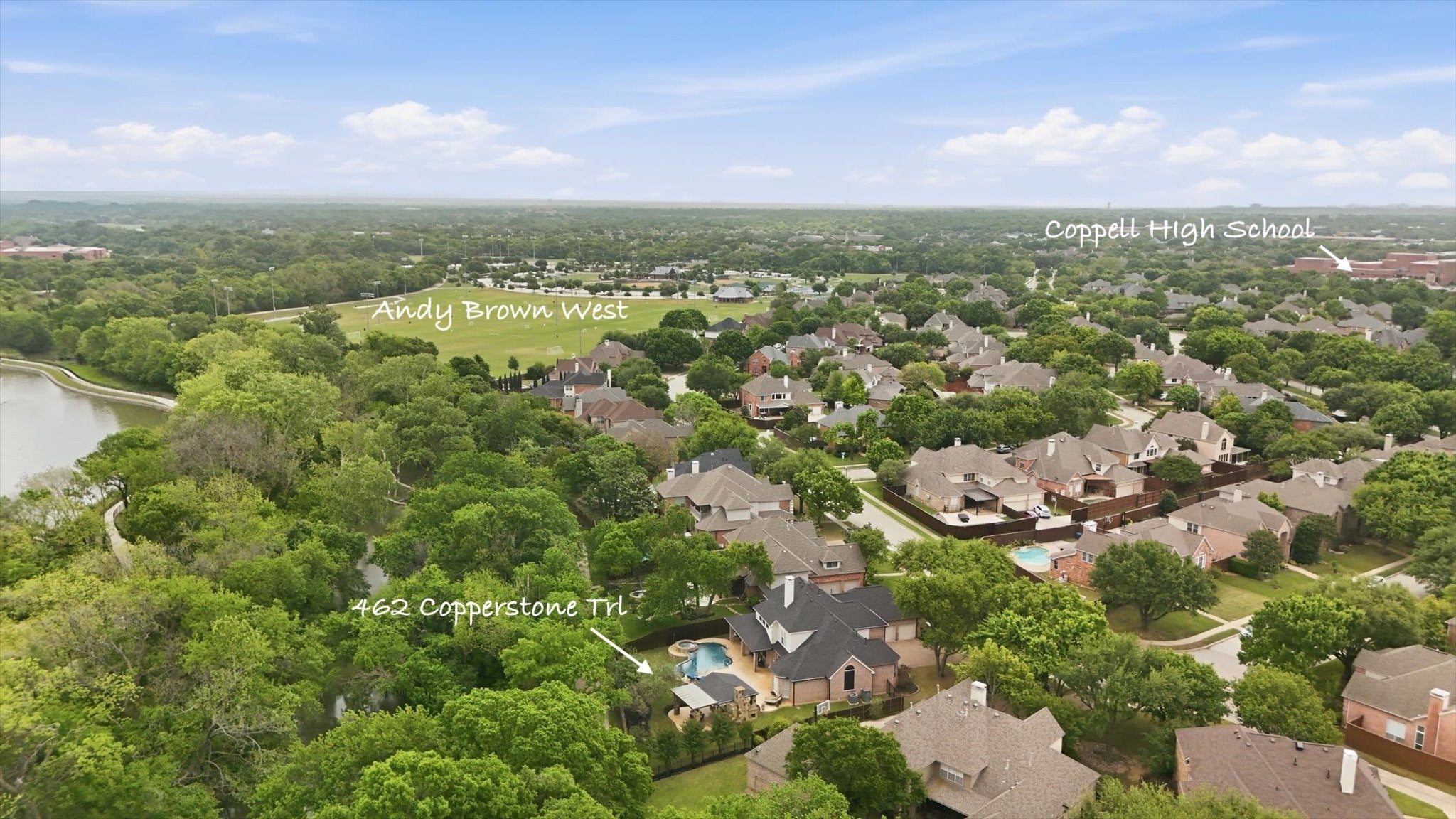 OPEN HOUSE this SAT & SUN!Welcome to an exceptional retreat in the heart of Coppell, where refined interiors meet resort-style outdoor living. This beautifully appointed 4 bedroom, 3.5 bath home with a private study offers the perfect blend of elegance, comfort, and functionality. Step inside to discover expansive living spaces designed for both everyday living & entertaining, featuring 3 distinct living areas filled with natural light, thoughtful architectural details & Sonos surround sound. Nearly every room on the main level is bathed in natural light & offers gorgeous views of the backyard, creating a seamless connection between indoor & outdoor living. The fully renovated kitchen is a true showpiece, boasting premium appliances including a Viking gas cooktop, Viking double ovens, & a built-in SubZero refrigerator, perfectly complemented by modern finishes & ample space for gathering. The private study provides an ideal work-from-home environment, while the spacious bedrooms & well-appointed baths offer comfort & flexibility for family & guests alike. Retreat to the first floor primary bedroom & spa like bathroom at the end of the day. Outdoors, the property transforms into a true oasis. Enjoy a sparkling pool & spa surrounded by lush landscaping, along with a fully equipped outdoor kitchen for al fresco dining. The cabana elevates the experience with a cozy fireplace, built-in heaters, and TV, creating a year round space for relaxation & entertaining. Perfectly positioned, this home backs to Andy Brown West Park, offering serene views & private gated access to scenic walking trails right from your backyard. In addition, the property has incredible proximity to both the local elementary school & high school within the highly acclaimed Coppell ISD, making daily routines convenient while maintaining the privacy & tranquility of this premier location. This is more than just a home, its an elevated living experience in one of Coppells most sought-after locations.