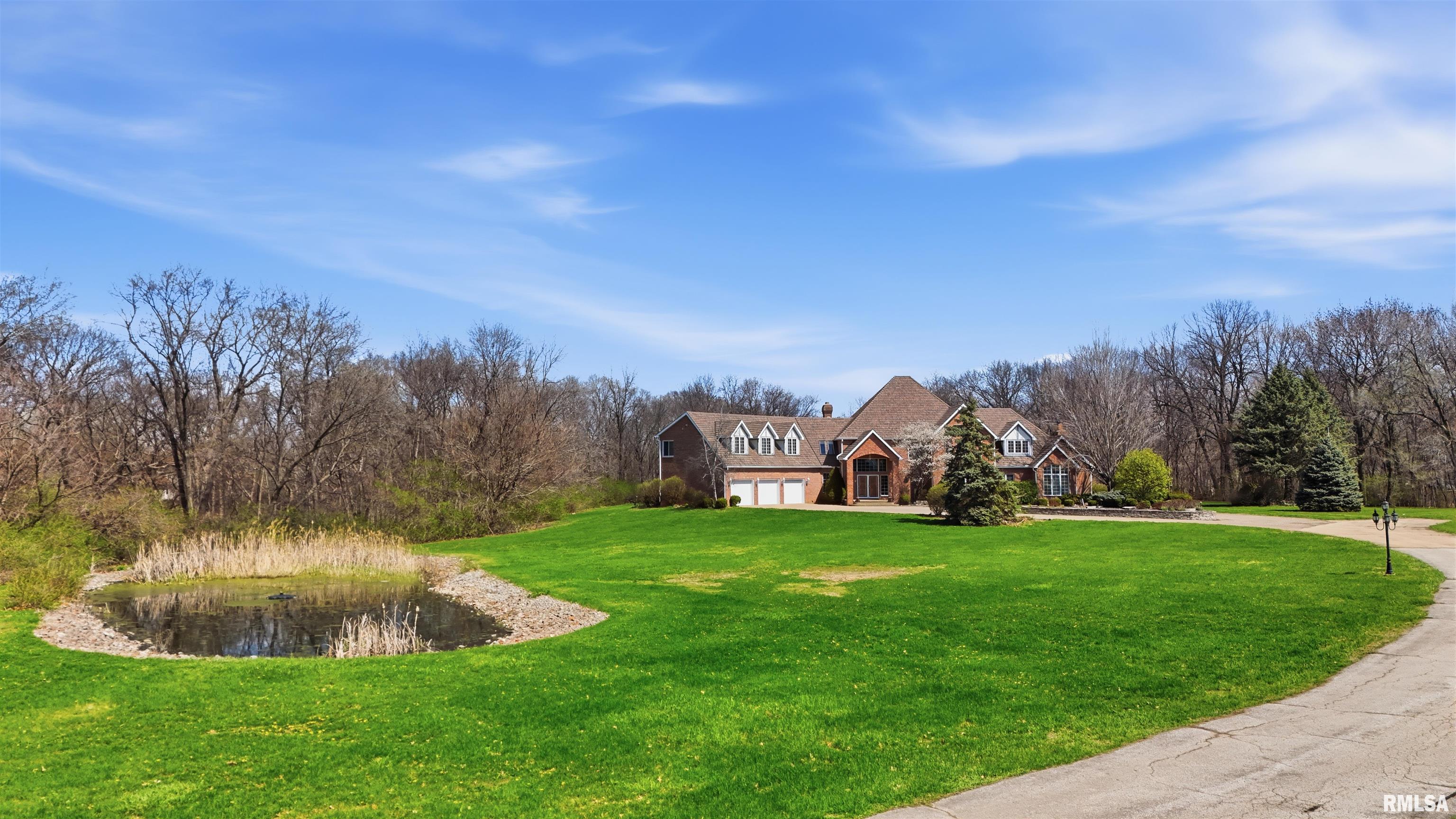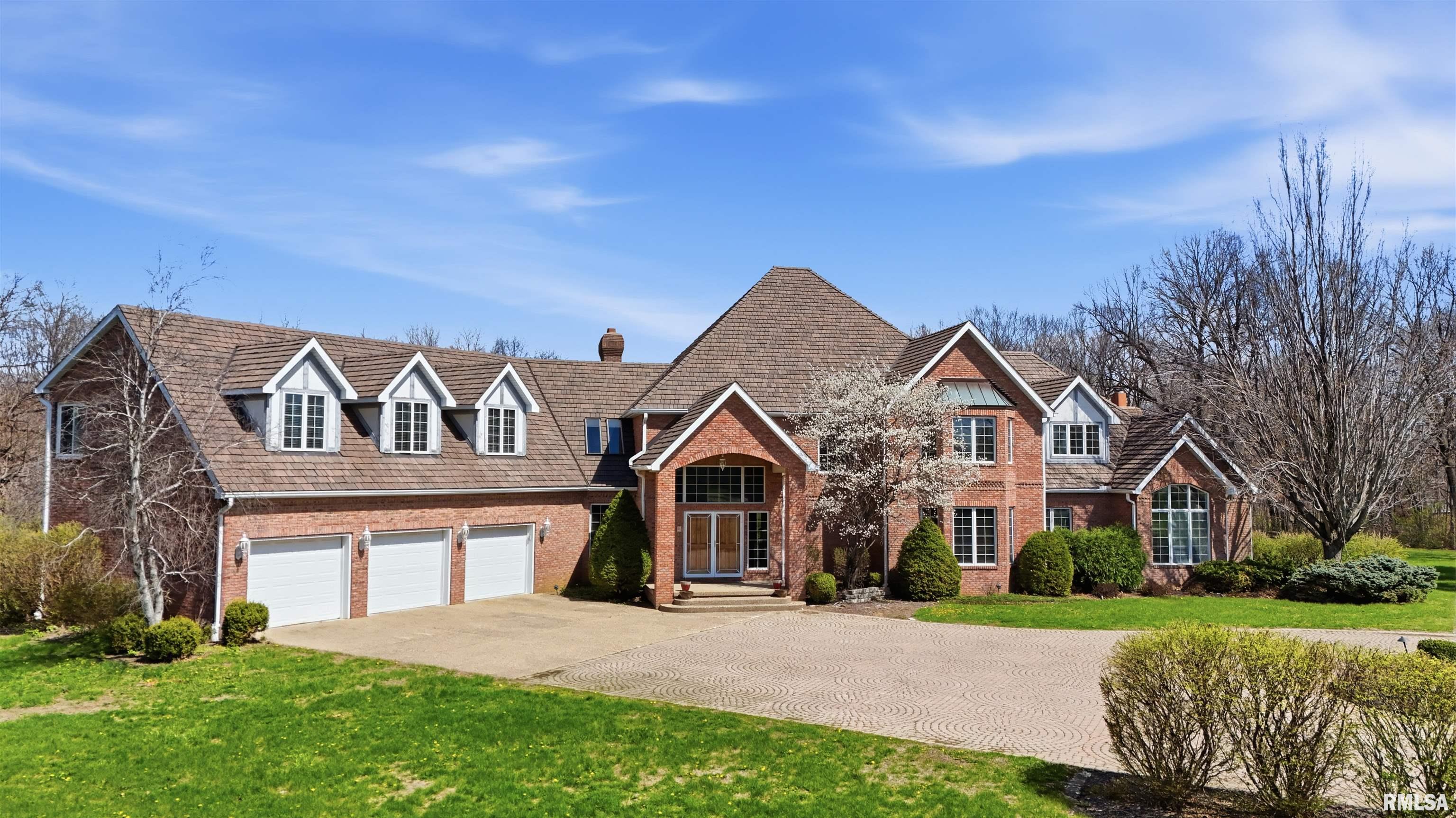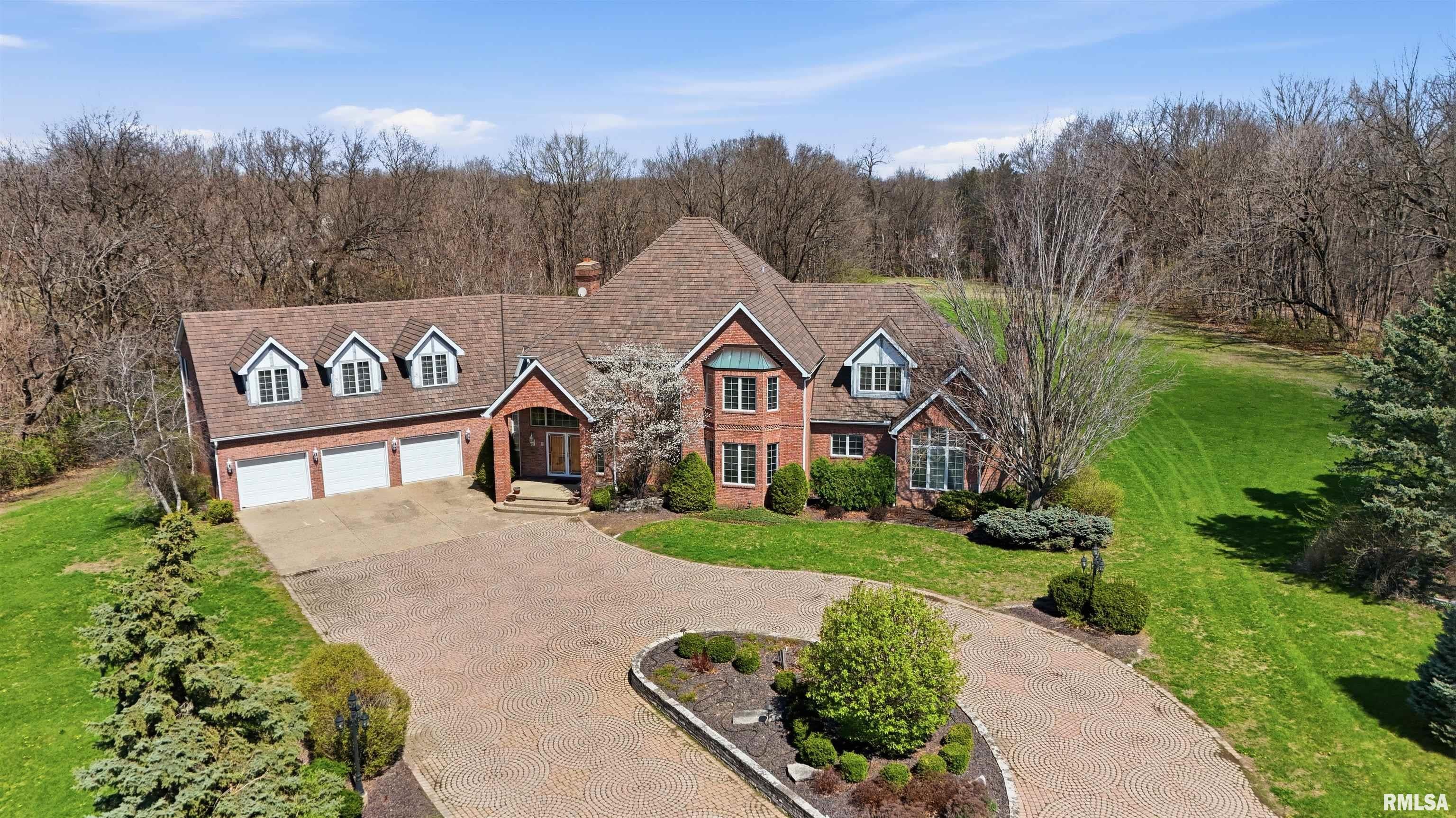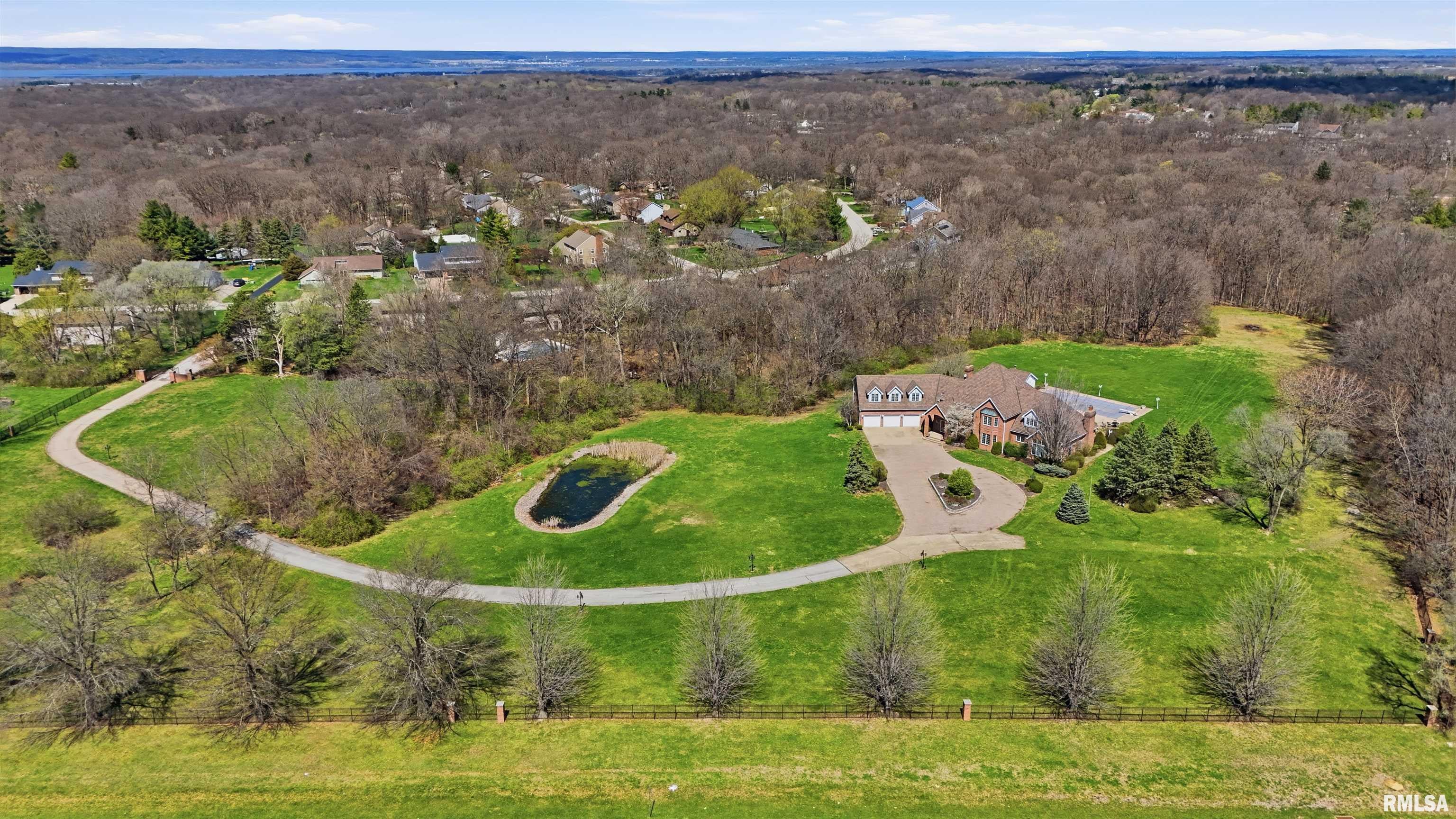 A private drive winds back to nearly 10 pristine wooded acres, revealing an extraordinary custom-built brick estate where masterful craftsmanship & breathtaking outdoor living converge in spectacular fashion. Nestled within the coveted Germantown Hills school district, this residence embodies a level of architectural distinction that would be virtually impossible to replicate in todays market. Beyond the grand entry foyer, a sweeping curved staircase sets an unmistakable tone of elegance. The main level unfolds with deliberate sophistication - a coffered ceiling office, a sunken family room warmed by a gas log fireplace & complemented by a wet bar plus a formal dining room crowned with a tray ceiling. The gourmet kitchen commands attention with its SubZero refrigerator, double ovens & expansive island, while the generous living room offers another fireplace & seamless patio access. Upstairs, 4 bedrooms showcase newer hardwood floors anchored by an incredible primary suite featuring a balcony with French doors, a WIC & a luxurious spa bathroom with whirlpool tub, tiled shower & dual vanities. A dedicated 4th bedroom suite includes its own living room, full bathroom & private laundry. The partially finished lower level delivers a theater area with a 3rd fireplace & a fully equipped entertaining kitchen. Make a splash this summer with your own inground pool with expansive patio! This estate promises enduring quality just 15 minutes from downtown Peoria.