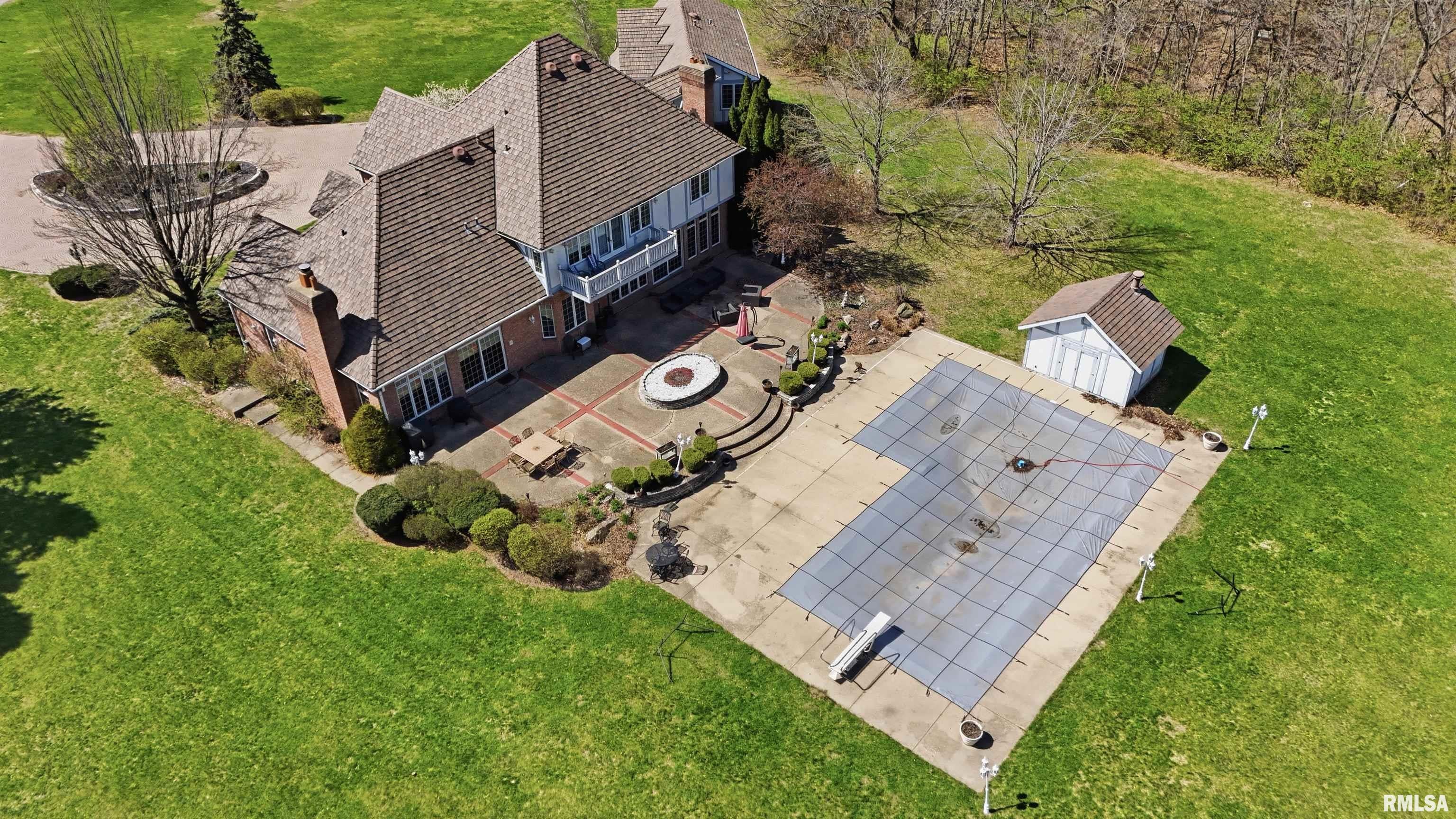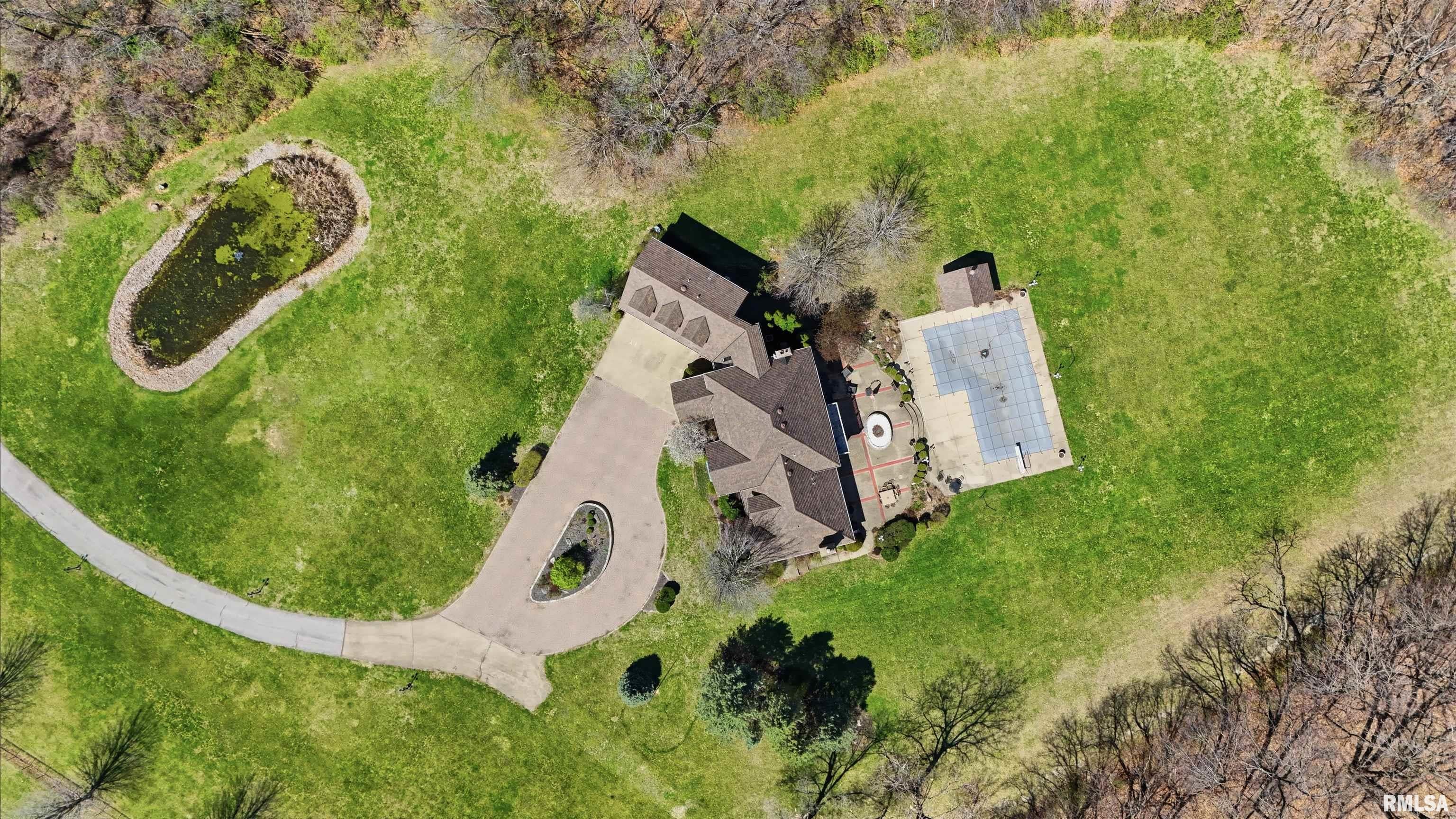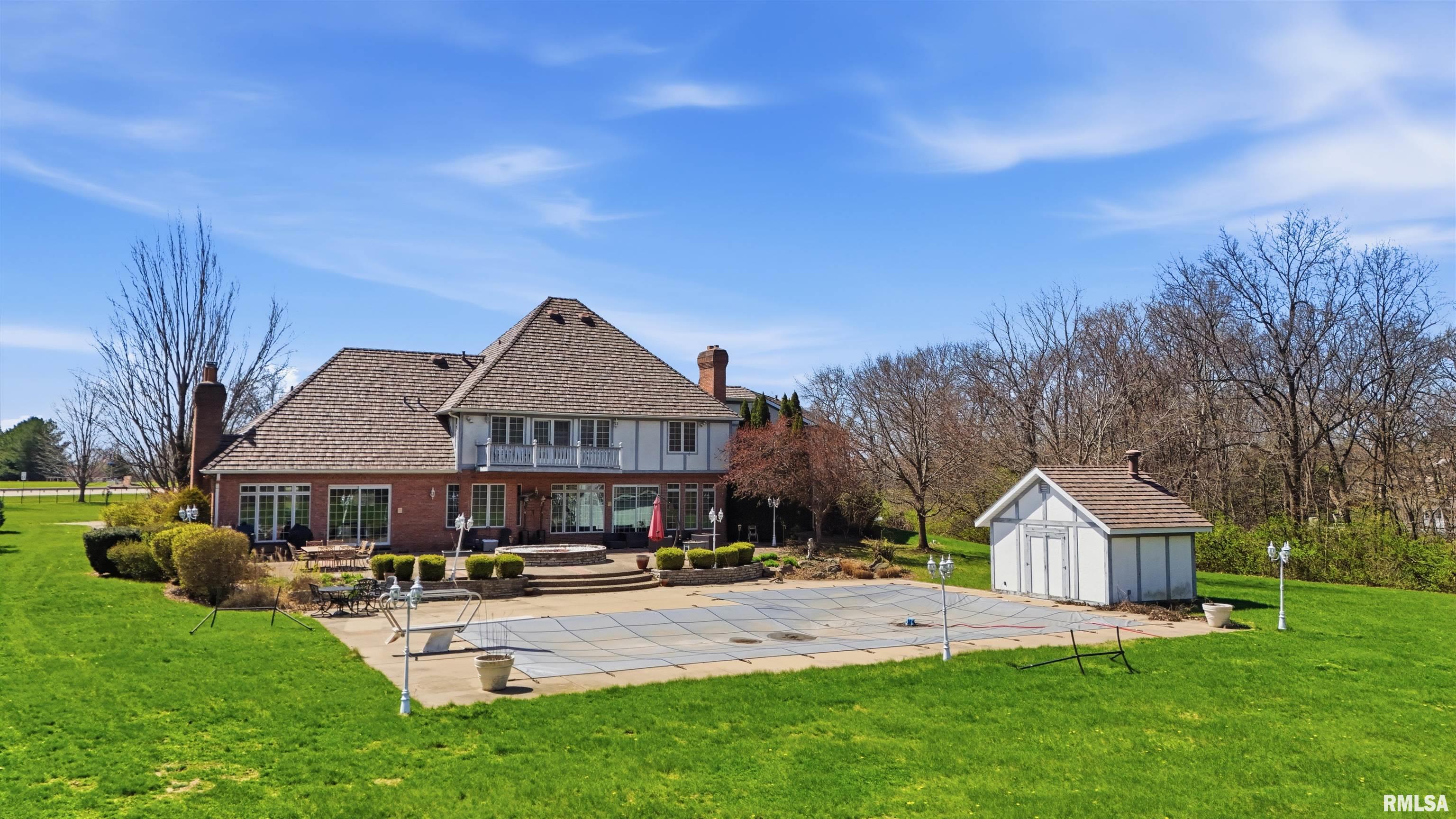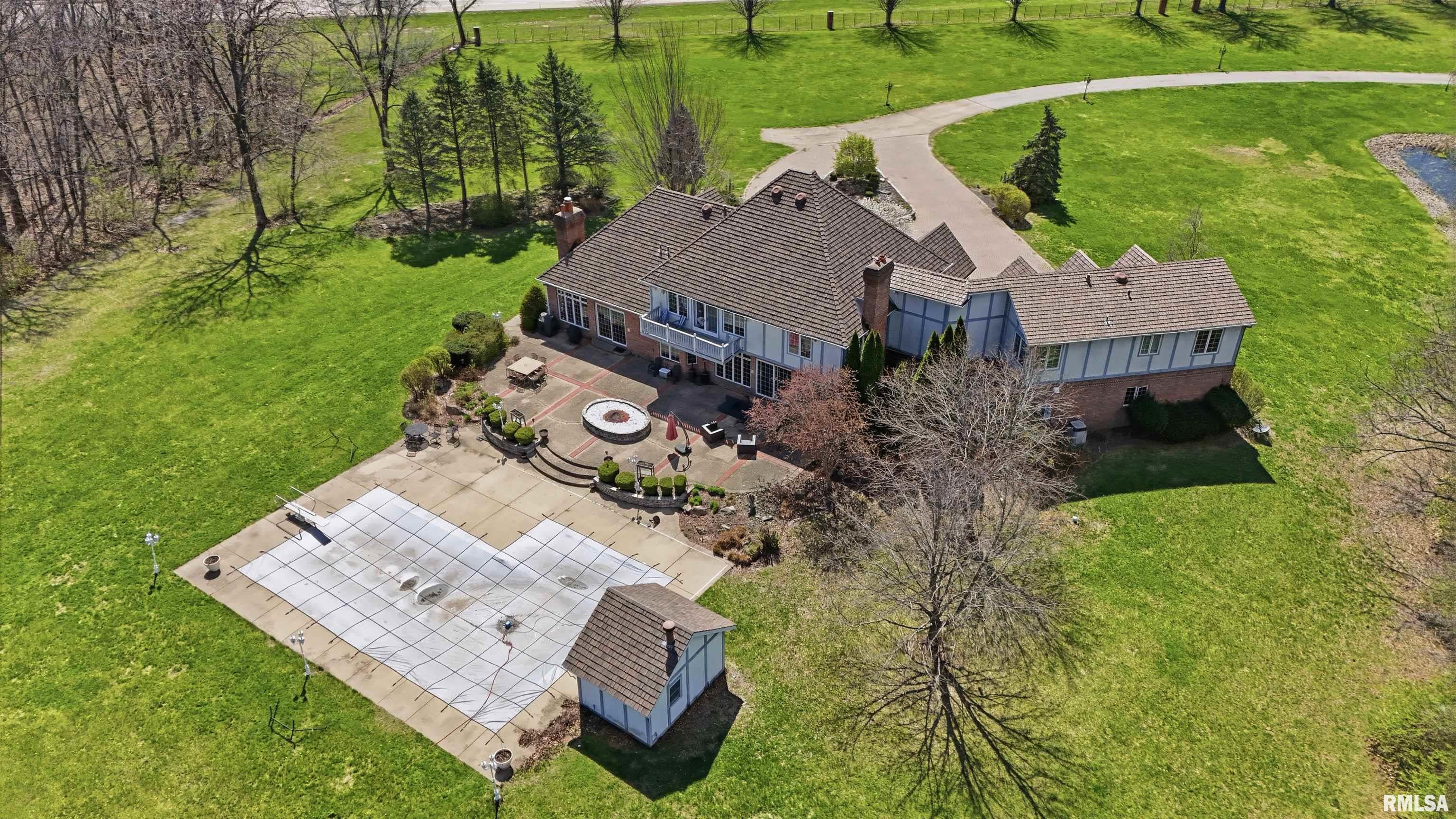 A private drive winds back to nearly 10 pristine wooded acres, revealing an extraordinary custom-built brick estate where masterful craftsmanship & breathtaking outdoor living converge in spectacular fashion. Nestled within the coveted Germantown Hills school district, this residence embodies a level of architectural distinction that would be virtually impossible to replicate in todays market. Beyond the grand entry foyer, a sweeping curved staircase sets an unmistakable tone of elegance. The main level unfolds with deliberate sophistication - a coffered ceiling office, a sunken family room warmed by a gas log fireplace & complemented by a wet bar plus a formal dining room crowned with a tray ceiling. The gourmet kitchen commands attention with its SubZero refrigerator, double ovens & expansive island, while the generous living room offers another fireplace & seamless patio access. Upstairs, 4 bedrooms showcase newer hardwood floors anchored by an incredible primary suite featuring a balcony with French doors, a WIC & a luxurious spa bathroom with whirlpool tub, tiled shower & dual vanities. A dedicated 4th bedroom suite includes its own living room, full bathroom & private laundry. The partially finished lower level delivers a theater area with a 3rd fireplace & a fully equipped entertaining kitchen. Make a splash this summer with your own inground pool with expansive patio! This estate promises enduring quality just 15 minutes from downtown Peoria.