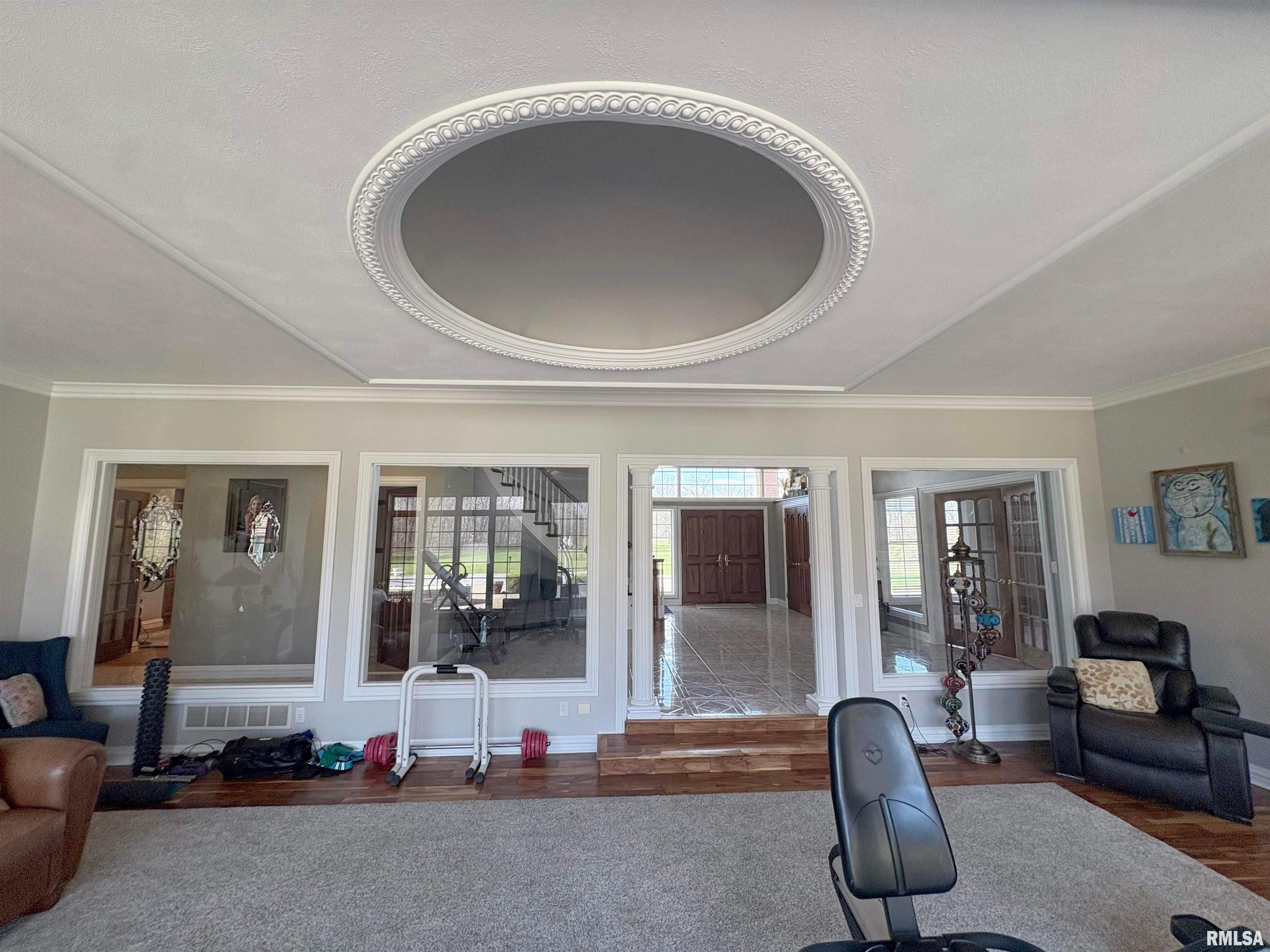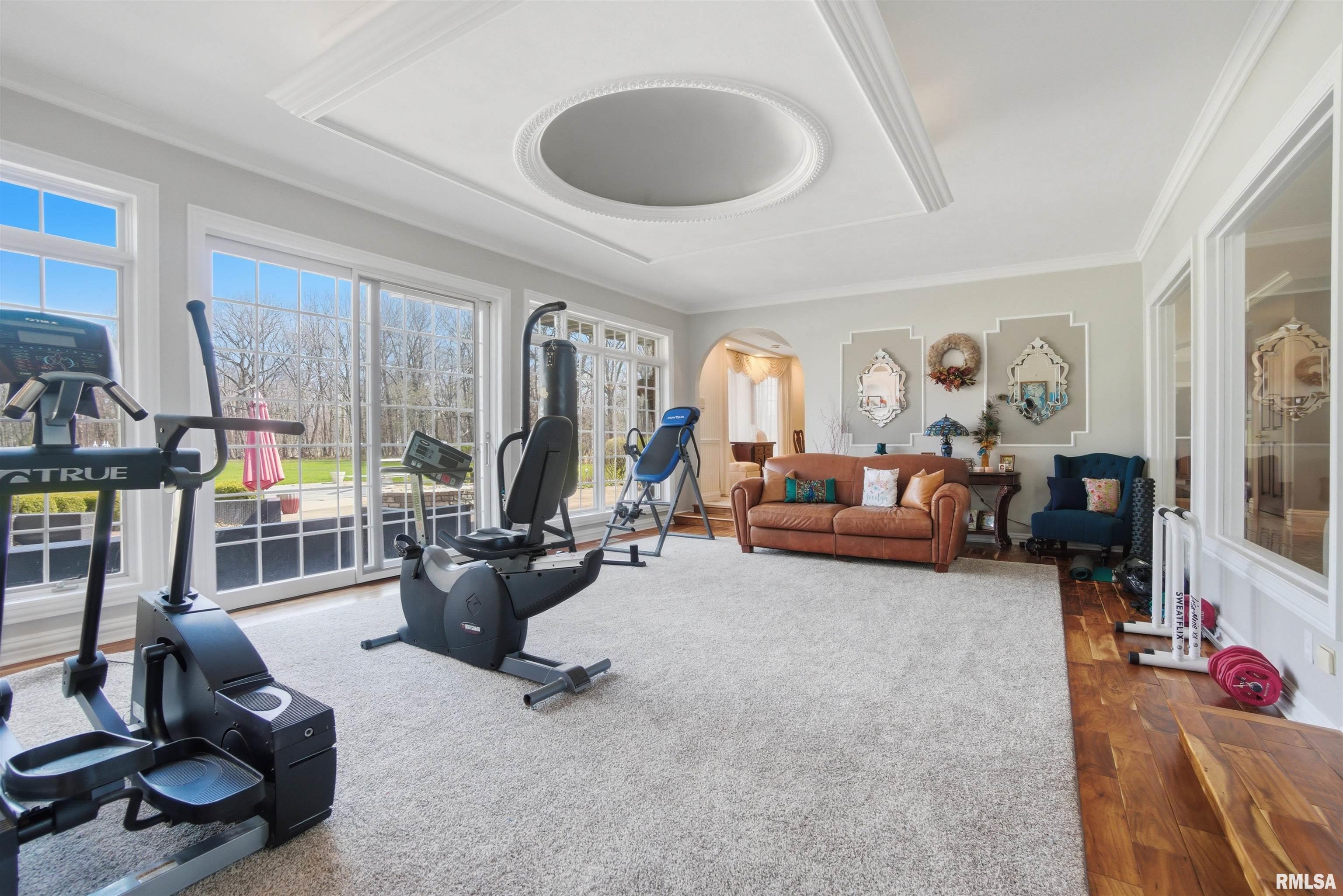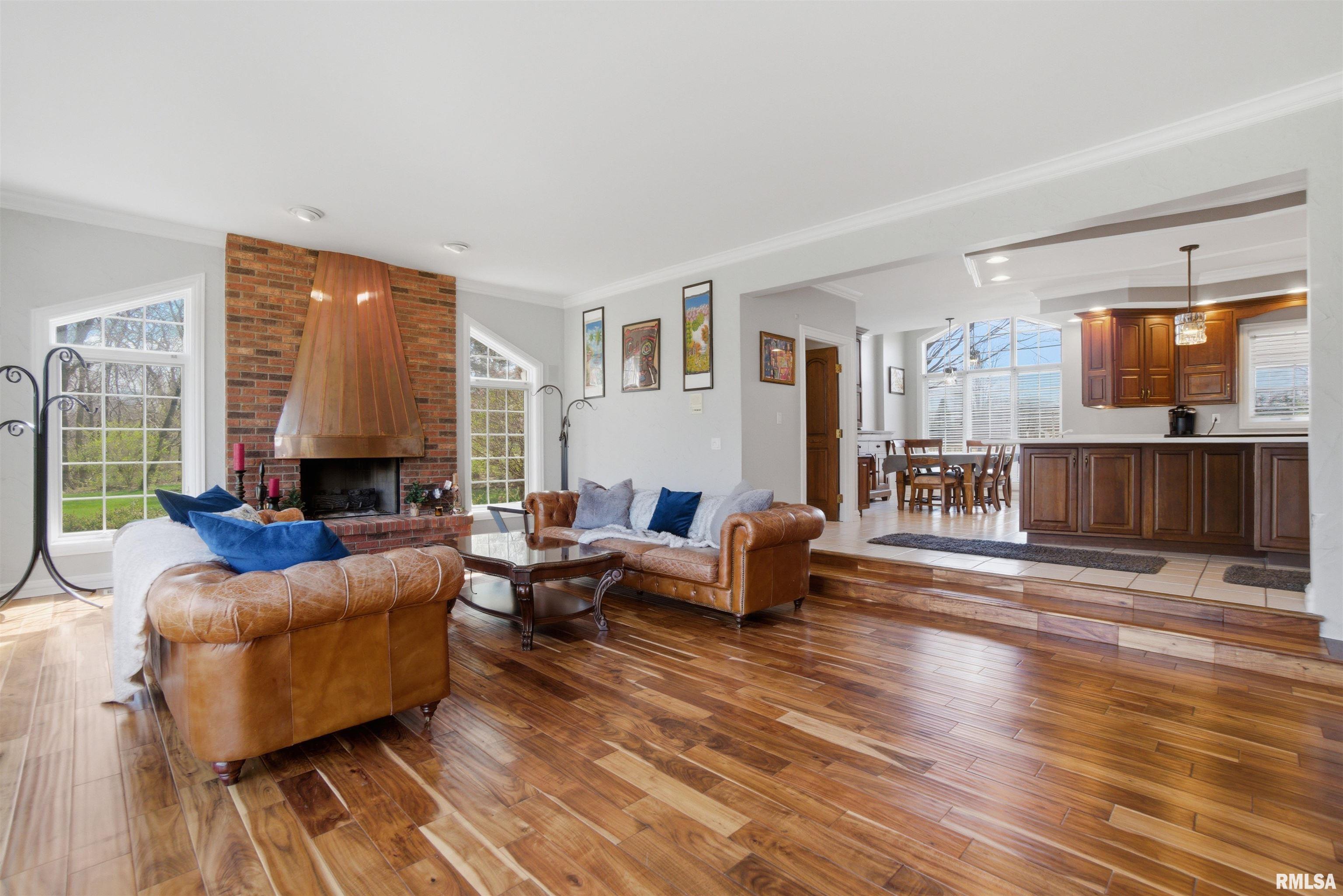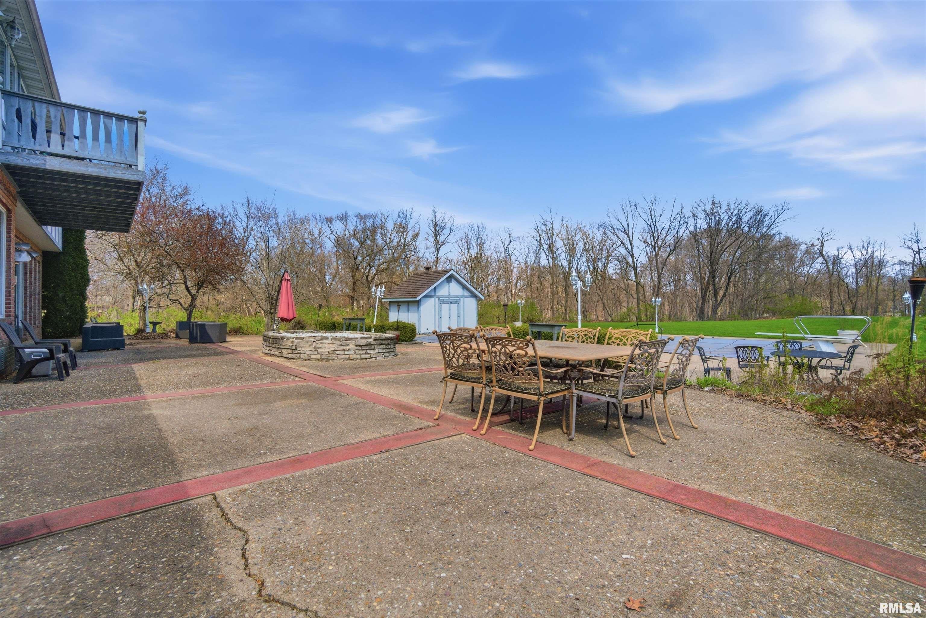 A private drive winds back to nearly 10 pristine wooded acres, revealing an extraordinary custom-built brick estate where masterful craftsmanship & breathtaking outdoor living converge in spectacular fashion. Nestled within the coveted Germantown Hills school district, this residence embodies a level of architectural distinction that would be virtually impossible to replicate in todays market. Beyond the grand entry foyer, a sweeping curved staircase sets an unmistakable tone of elegance. The main level unfolds with deliberate sophistication - a coffered ceiling office, a sunken family room warmed by a gas log fireplace & complemented by a wet bar plus a formal dining room crowned with a tray ceiling. The gourmet kitchen commands attention with its SubZero refrigerator, double ovens & expansive island, while the generous living room offers another fireplace & seamless patio access. Upstairs, 4 bedrooms showcase newer hardwood floors anchored by an incredible primary suite featuring a balcony with French doors, a WIC & a luxurious spa bathroom with whirlpool tub, tiled shower & dual vanities. A dedicated 4th bedroom suite includes its own living room, full bathroom & private laundry. The partially finished lower level delivers a theater area with a 3rd fireplace & a fully equipped entertaining kitchen. Make a splash this summer with your own inground pool with expansive patio! This estate promises enduring quality just 15 minutes from downtown Peoria.