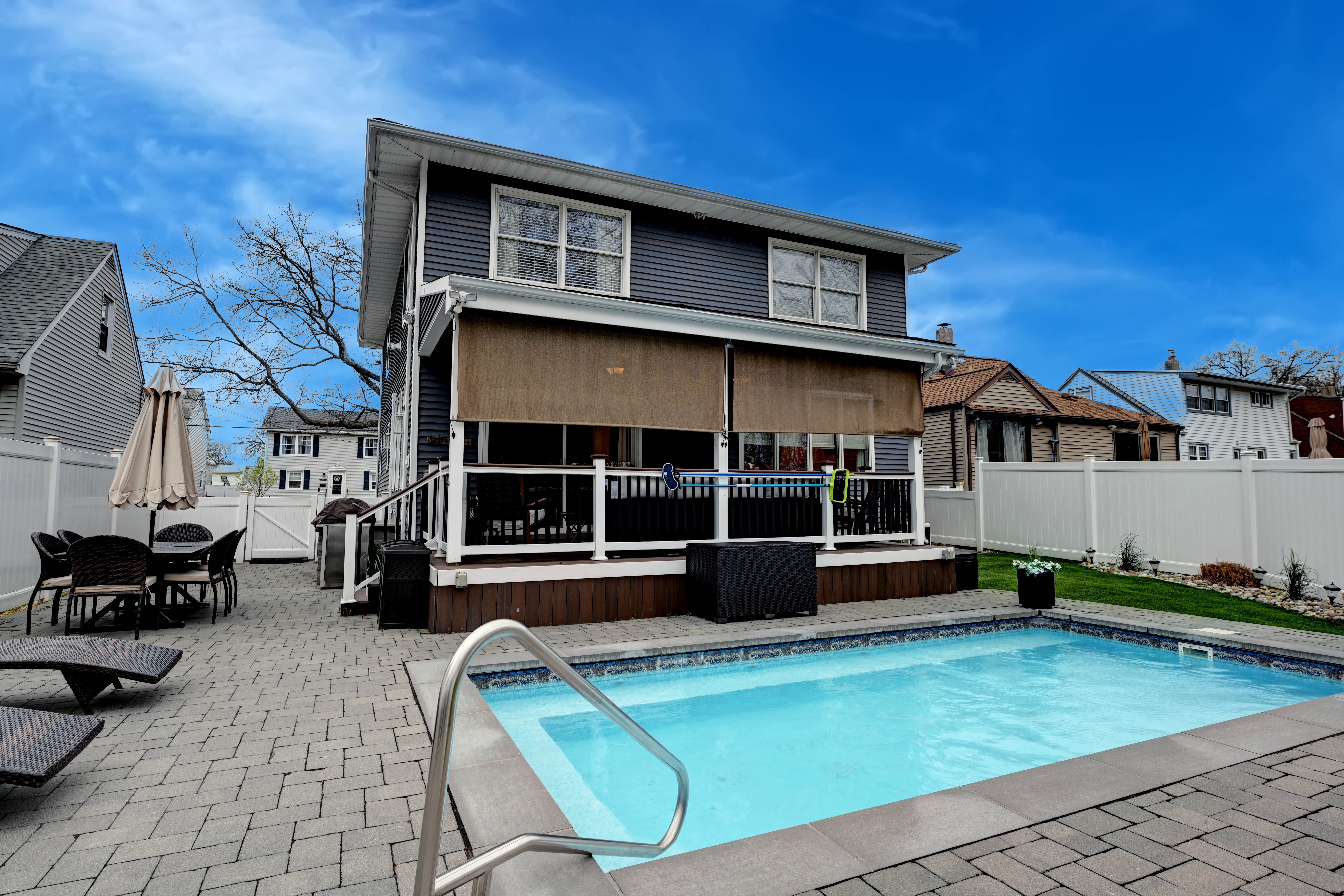 Designed for how you actually live, this fully expanded home offers four large bedrooms, a layout built for gathering, and a backyard that stands out. The main level is anchored by a large family room addition just off a spacious kitchen and dining area that come together as the heart of the home, along with a beverage pantry that adds both function and character.Upstairs, all four bedrooms are generously sized and set on one level, creating a sense of privacy, with second-floor laundry adding everyday practicality.The lower level is partially finished with a kitchenette, full bathroom, and walk-in closet, adding flexible space thats ready to use.Outside, the covered deck and pool are surrounded by trees, giving the backyard a quieter, more tranquil feel than most.Set in Rutherford, known for its vibrant community and a downtown filled with local shops and restaurants, with direct access to NYC.Come see it for yourself.