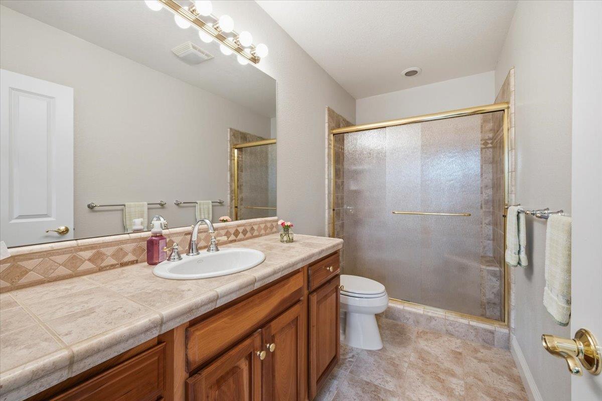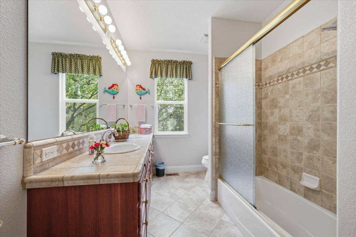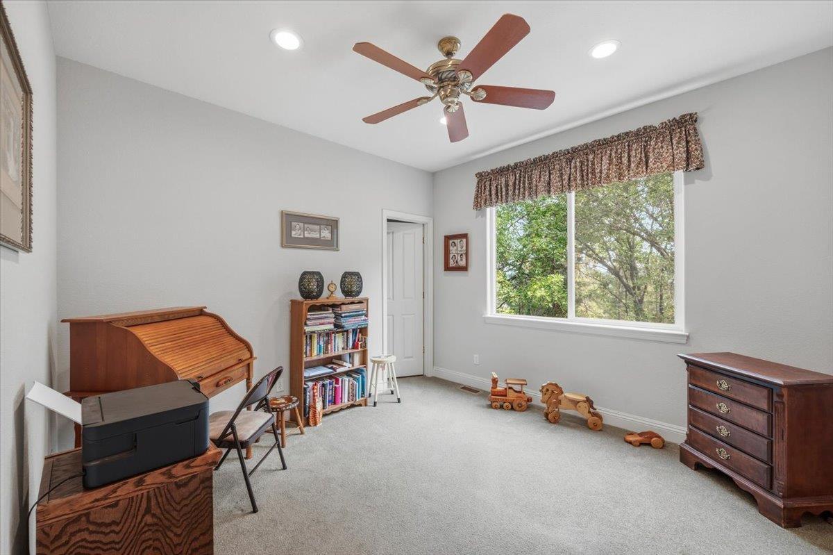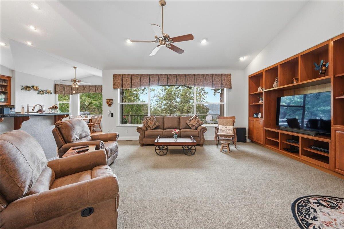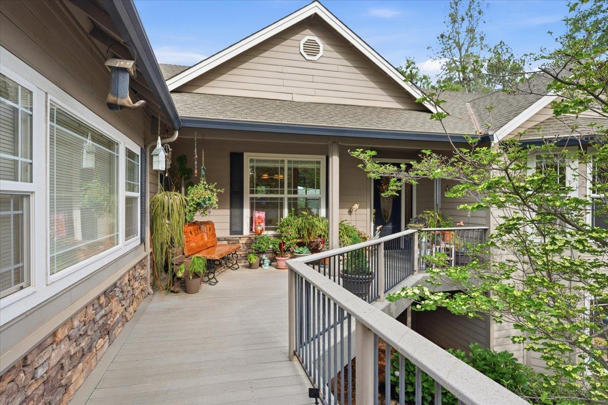 Nestled on a quiet, fire-wise cul-de-sac just minutes from downtown Grass Valley, this thoughtfully designed home offers comfort, convenience, and exceptional functionality in a welcoming neighborhood on Arianna Court where all utilities are underground for a clean, unobstructed streetscape. With easy access to Highway 49 and the benefit of nearby traffic lights, commuting is simple while still enjoying a peaceful residential setting. The main level features a spacious 2,776 sq. ft. floor plan with inviting curb appeal and a smart layout placing the private primary suite on one side of the home and additional bedrooms on the other for ideal separation. A versatile 590 sq. ft. finished extra room downstairs (included in original construction but not reflected in county records or total square footage) offers incredible flexibility. With both interior access and a private exterior entrance, its perfect for a guest suite, home office, gym, or multi-generational living. Accessibility is a highlight, with a gentle downslope driveway, a three-car garage with direct interior access, and no steps to the front door or main living areas. Energy efficiency and preparedness are top-notch, featuring owned solar (29 panels producing approximately 7,600 watts) and a 22 kW Generac generator for peace of mind. Outdoor and utility features include a permitted 20x20 metal shop (installed in 2022), and retractable remote-controlled awning for afternoon shade. Additional highlights include an interior laundry room, Beam whole-house vacuum system, Smarter Broadband internet, an Advantex engineered septic system, and reliable city water service. This property blends thoughtful design, modern amenities, and a prime location offering a rare opportunity to enjoy both convenience and tranquility.