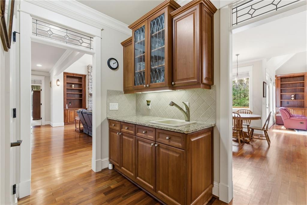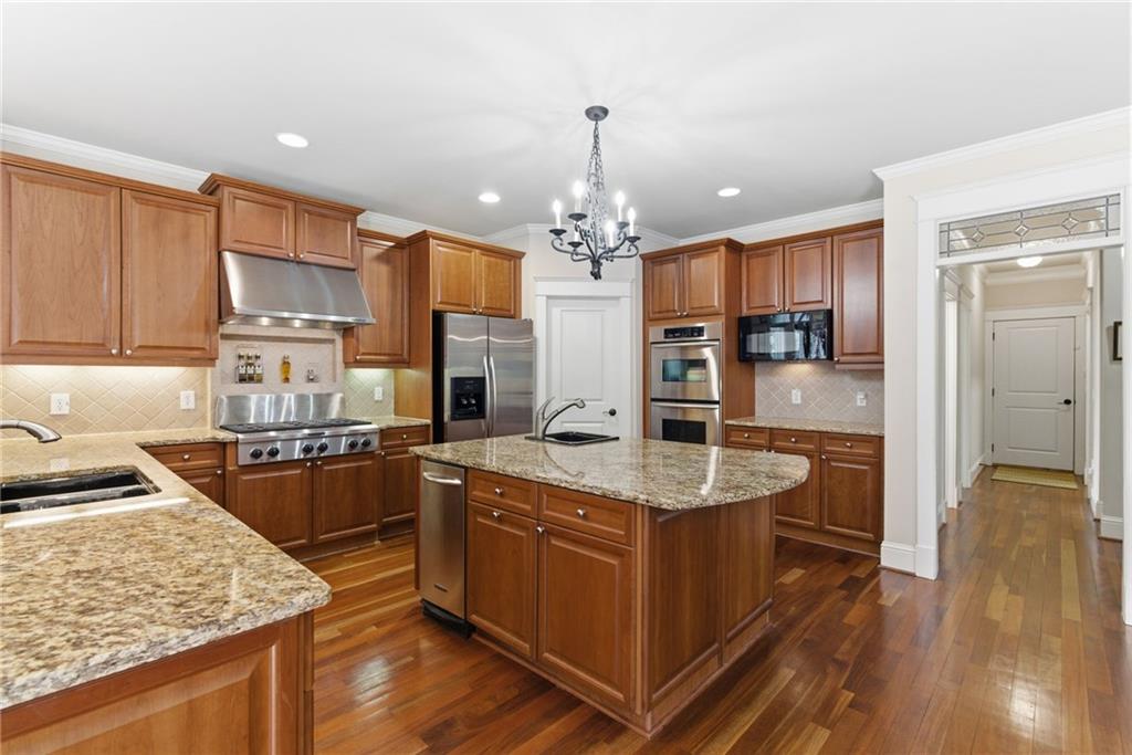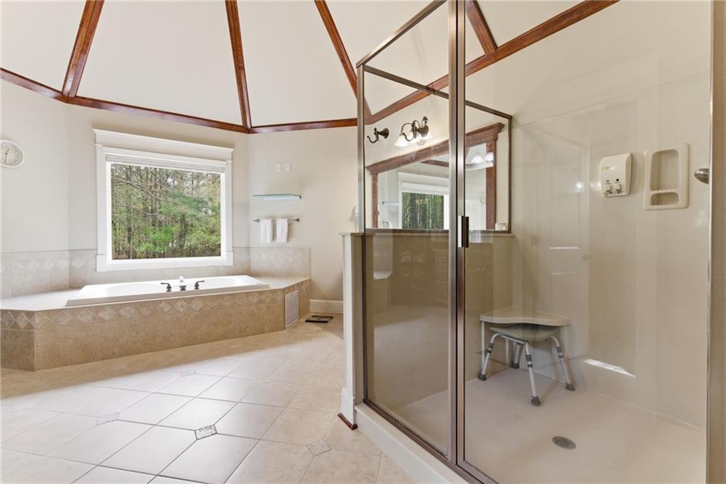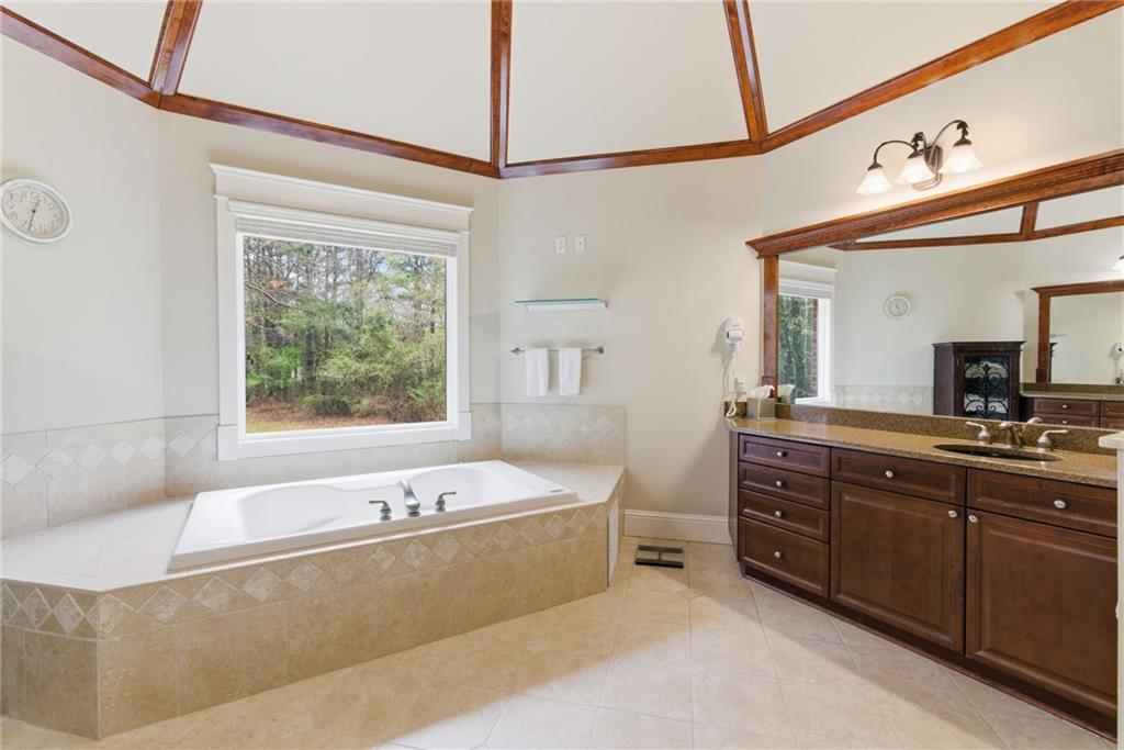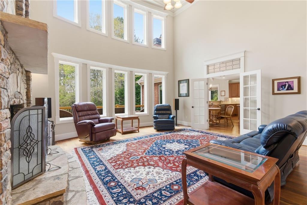 You feel it the moment you walk in—warm, inviting, and effortlessly elegant—this private 2-acre estate in gated Blackberry Ridge redefines what luxury living should feel like. Warmth and timeless design define this exceptional 4-sided brick estate on 2 private acres in gated Blackberry Ridge. Located in Cherokee County (lower taxes) and zoned for Creekview High School, this home offers luxury, privacy, and convenience just minutes from Milton, Crabapple, and Downtown Alpharetta. Inside, you'll find substantial custom millwork throughout—rich, architectural trim that sets this home apart—paired with mahogany hardwood floors, soaring ceilings, and 5 interior fireplaces. The main level features an oversized primary suite with sitting room, stacked stone fireplace, and custom built-ins, plus an additional bedroom and full bath—ideal for multigenerational living or a home office. The gourmet kitchen with granite countertops, gas range, walk-in pantry, and butler's pantry opens to the fireside keeping room—the true heartbeat of the home. Upstairs offers multiple ensuite bedrooms and flexible living space. The terrace level is a true extension of the home—finished to the same high standard as the main level and designed for entertaining. Highlights include a one-of-a-kind hand-built custom bar, an elevated theater room with ambient lighting entry, game areas, and multiple exterior access points. With abundant windows and doors, the space feels bright, open, and connected—not like a basement. Additional features include: 3 laundry rooms (one on each level),Oversized 3-car side-entry garage, level, private backyard—ideal for a future pool, Expansive 2-acre setting with exceptional privacy. A rare opportunity to own a private, move-in ready luxury estate in one of the area's most desirable gated communities.