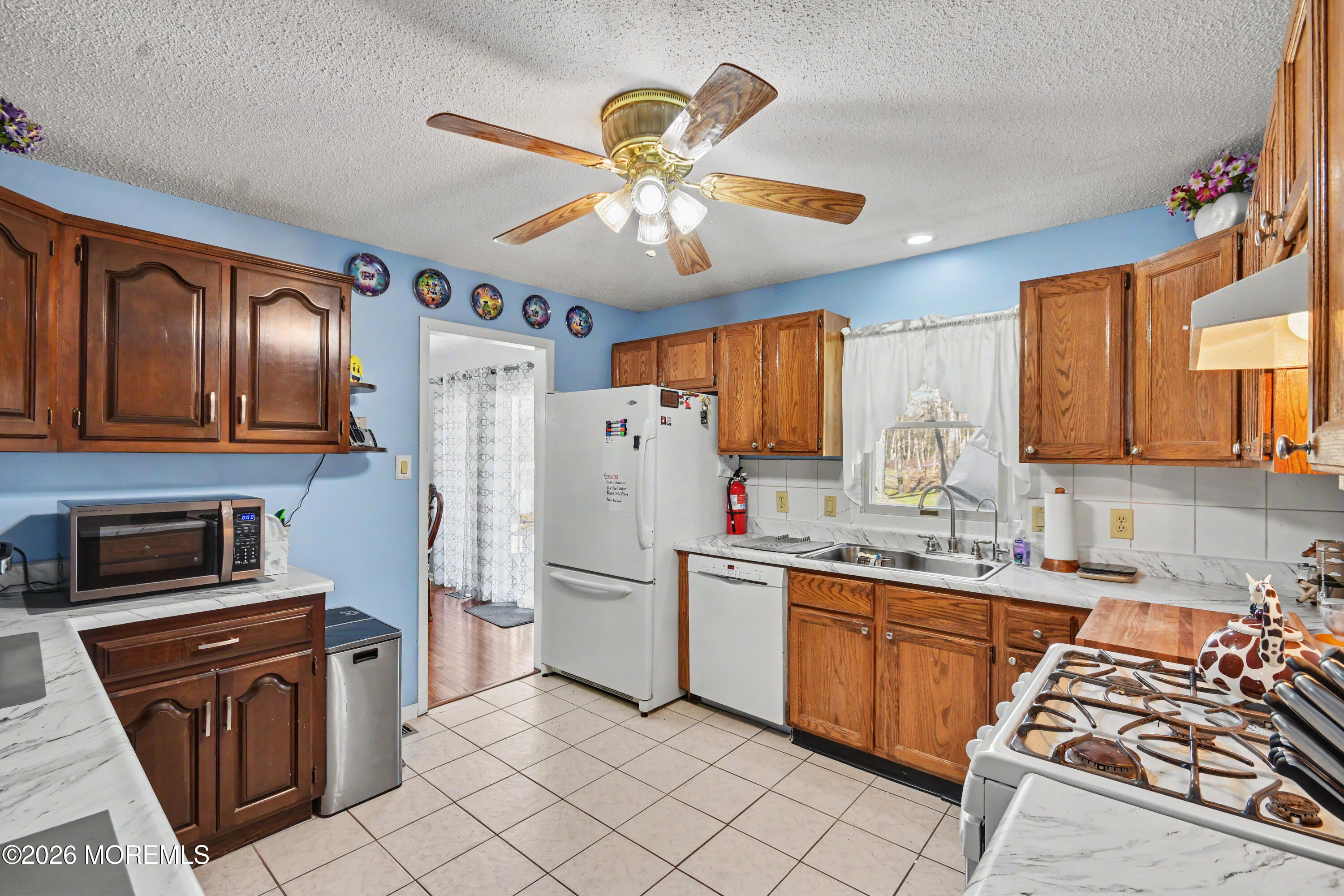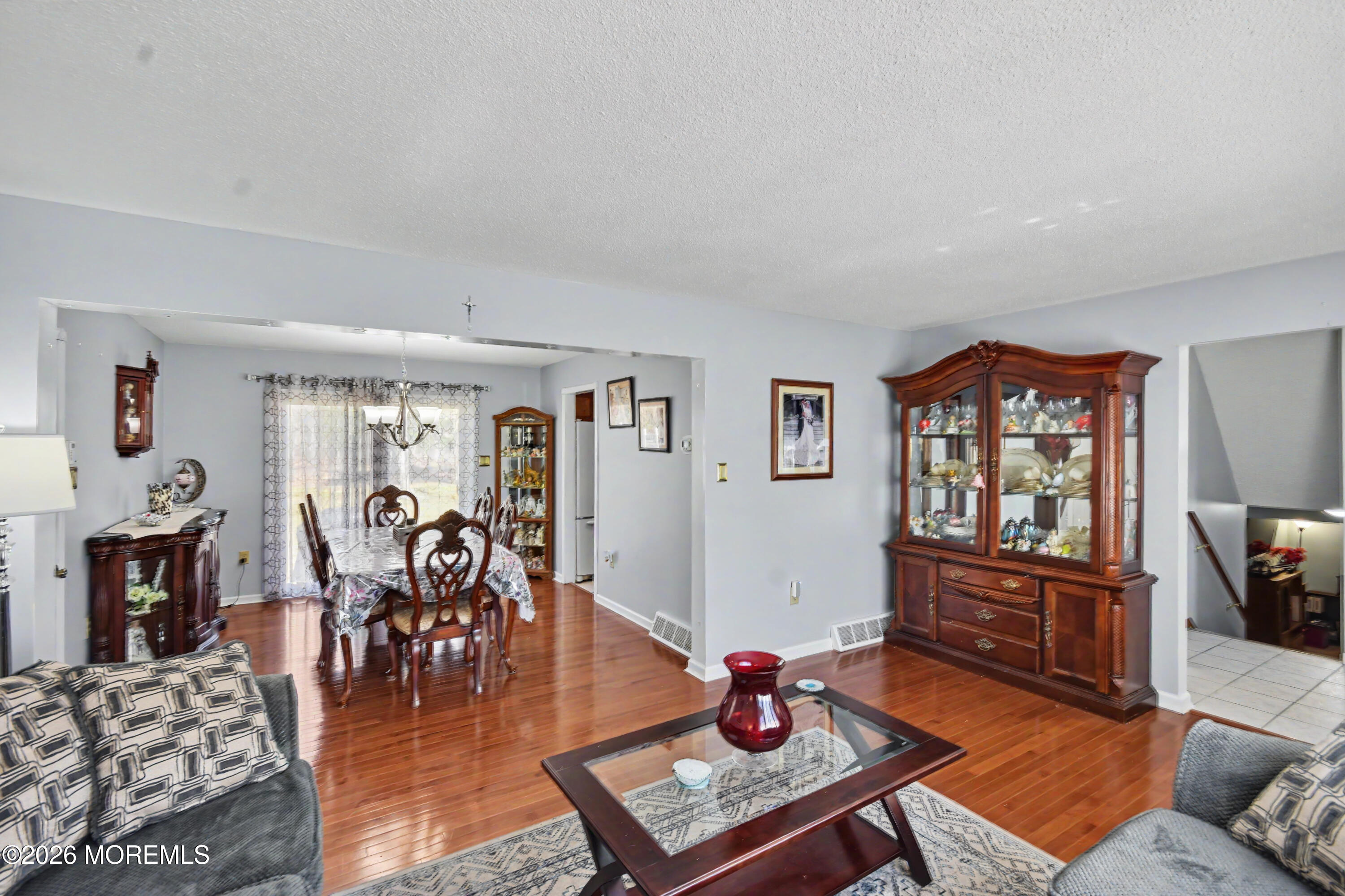 Welcome to 190 Deepdale Dr. Tucked away on a private lane in the highly sought after Oak Hill neighborhood of Middletown. This beautifully maintained 4 bedroom, 2 1/2 bath home offers a welcoming atmosphere, refined updates and a peaceful, private setting. Step inside the sun filled interior featuring neutral decor and hardwood floors throughout. The expansive living room is bathed in natural light and features a cozy wood burning fireplace, perfect for relaxing or entertaining. At its center, the kitchen seamlessly blends performance and design with Decora cabinetry, quartz countertops, ceramic tile, KitchenAid appliances and walk in pantry. The adjoining dining and family room, includes custom built ins and French doors that lead to an expansive bluestone patio, ideal for outdoor gatherings while enjoying the surrounding natural beauty. Upstairs, the generous primary includes an ensuite bath with granite countertops, ceramic stall shower, and walk in closet. Three additional bedrooms share a well designed center hall bathroom. A fully finished basement provides versatile space for recreation, wellness or storage and includes a dedicated laundry area. In addition, a flexible bonus space above the garage with interior access awaits your vision, perfect for a home office, studio, or expanded master suite. Enjoy the perfect balance of privacy and convenience, with easy access to the GSP, Red Bank, NYC transit, shopping, beaches and parks. The current owners have continuously enhanced the home, resulting in a residence that feels warm welcoming and move in ready. Major improvements have been updated over time, including but not limited to replaced roof (2021), windows (2023), kitchen renovation (2017), and AC units(2025).