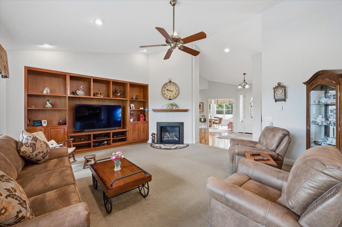 Warm & Inviting single story home in Blossom Valley!Attractive exterior leads to front courtyard w/sitting area.Entry opens to living/formal dining room w/sliding doors to rear patio.Kitchen/family room w/dinette,updated cabinets & appliances.Step-down family room w/dining area;gas fireplace w/stone mantel;sliding doors to patio.3 Bedrooms separated from living areas.
