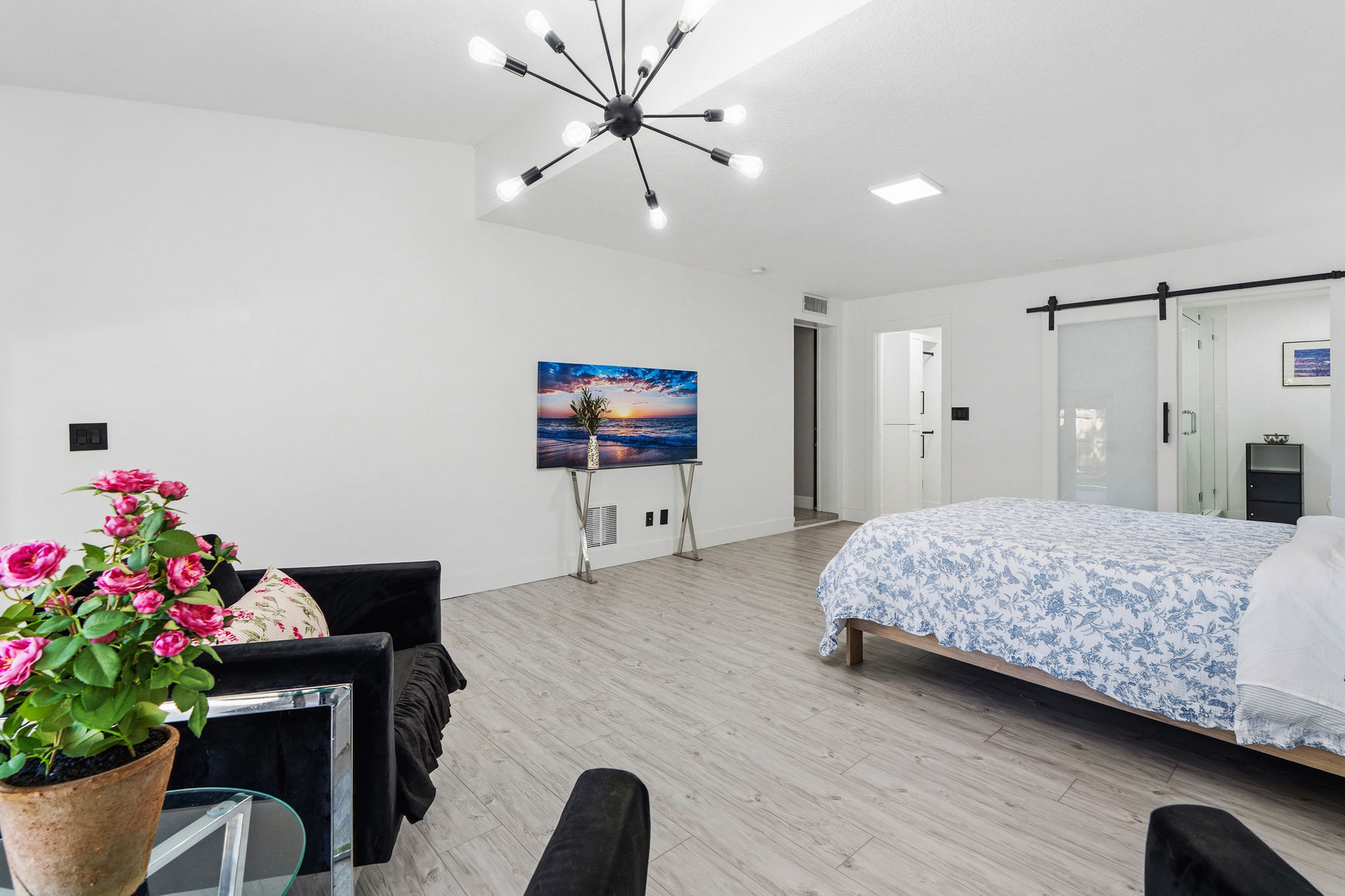 Truly one-of-a-kind, this stunning home features two castle-like spires and is perfect for kids—young and old. The chef’s kitchen boasts Calacatta quartz countertops and high-end stainless appliances. Enjoy the flexibility of two primary suites—one on each level. Upstairs, the expansive primary bedroom offers abundant natural light and private access to a huge wraparound balcony.