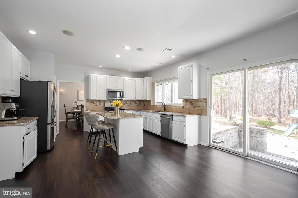 Sprawling brick ranch offering approximately 5000 sq ft of total finished living space, proudly owned by one family and thoughtfully maintained throughout. Upon entry, a spacious living room welcomes you with a classic bay window overlooking the professionally landscaped, tree-lined backyard. The main level features a generous master suite with a beautifully remodeled bath, complete with a walk-in shower, jetted tub and dual sinks. Three additional bedrooms, a full bath with dual sinks, and a convenient powder room provide ample space for family and guests. The kitchen is well-appointed with abundant cabinetry, granite countertops, modern appliances, and two large skylights that fill the space with natural light. Adjacent to the kitchen, the spacious dining room is perfect for hosting large gatherings and is highlighted by a gorgeous chandelier. Hardwood flooring extends through most of the main level. A cozy family room showcases a stunning brick natural fireplace and a bay window. The 210 sqft sunroom offers year-round enjoyment with four skylights, and central heating and cooling. Main floor laundry adds everyday convenience. The expansive 1700 sqft finished basement is ideal for entertaining or extended living, featuring two large egress windows, a second kitchen with wet bar, newer refrigerator (2020), abundant cabinetry, a full bath, and a versatile bonus room. Enjoy entertaining on the deck and brick-paver patio, perfect for outdoor gatherings. In the spring, the garden comes alive with vibrant, well-established perennials that have been lovingly maintained by the current owner. New Windows 2017, new roof 2019 with Leafguard gutters, new washer, dryer and water heater 2020. The home is also equipped with a central alarm system with monitored security for added peace of mind. Home is not in flood zone and is never flooded. Located in a desirable neighborhood close to schools, shopping, and dining, this home combines space, comfort, and convenience. Call for your private tour today!