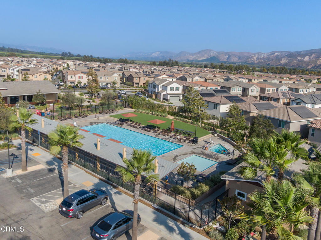 Welcome to Limoneira at Harvest, a newer community where modern living meets vintage charm. This highly upgraded immaculate 4-bedroom corner lot home offers privacy with no shared walls, mountain views and a thoughtfully designed open layout. Warm finishes, wainscoting accents and custom vintage lighting create a cozy, inviting atmosphere throughout. The kitchen features GE Cafe appliances, under-cabinet lighting and opens to a spacious living area with added cabinetry for extra storage. Enjoy turnkey convenience with custom window treatments, included washer and dryer, and a low-maintenance backyard complete with pavers, synthetic turf and storage shed. The garage is outfitted with additional shelving and the home also comes equipped with solar panels making this home as functional as it is beautiful.