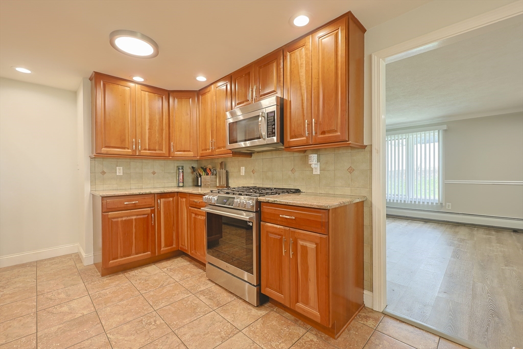 West Peabody home in the highly sought-after Burke School District! This sprawling ranch offers 7 rooms, 3 bedrooms, and 2 baths with approx 1,738 sq ft of easy one-level living, set on a corner lot tucked back from the street for added privacy and curb appeal. Designed for both comfort and entertaining, the kitchen flows seamlessly into an open layout with two expansive living areas , creating an accessible, flexible layout ideal for today's lifestyle. One of the living rooms features a gas fireplace. Key updates include a young Bosch heating and hot water system, newer fence install, and sewer line replaced in 2022. A double-wide driveway provides ample parking, while the covered stone patio offers the perfect outdoor space to relax or entertain. Located on a street that flows into a newer development of homes valued at 1M, this property offers strong surrounding value and long-term upside. This is a stand out opportunity in one of West Peabodys most desirable neighborhoods.