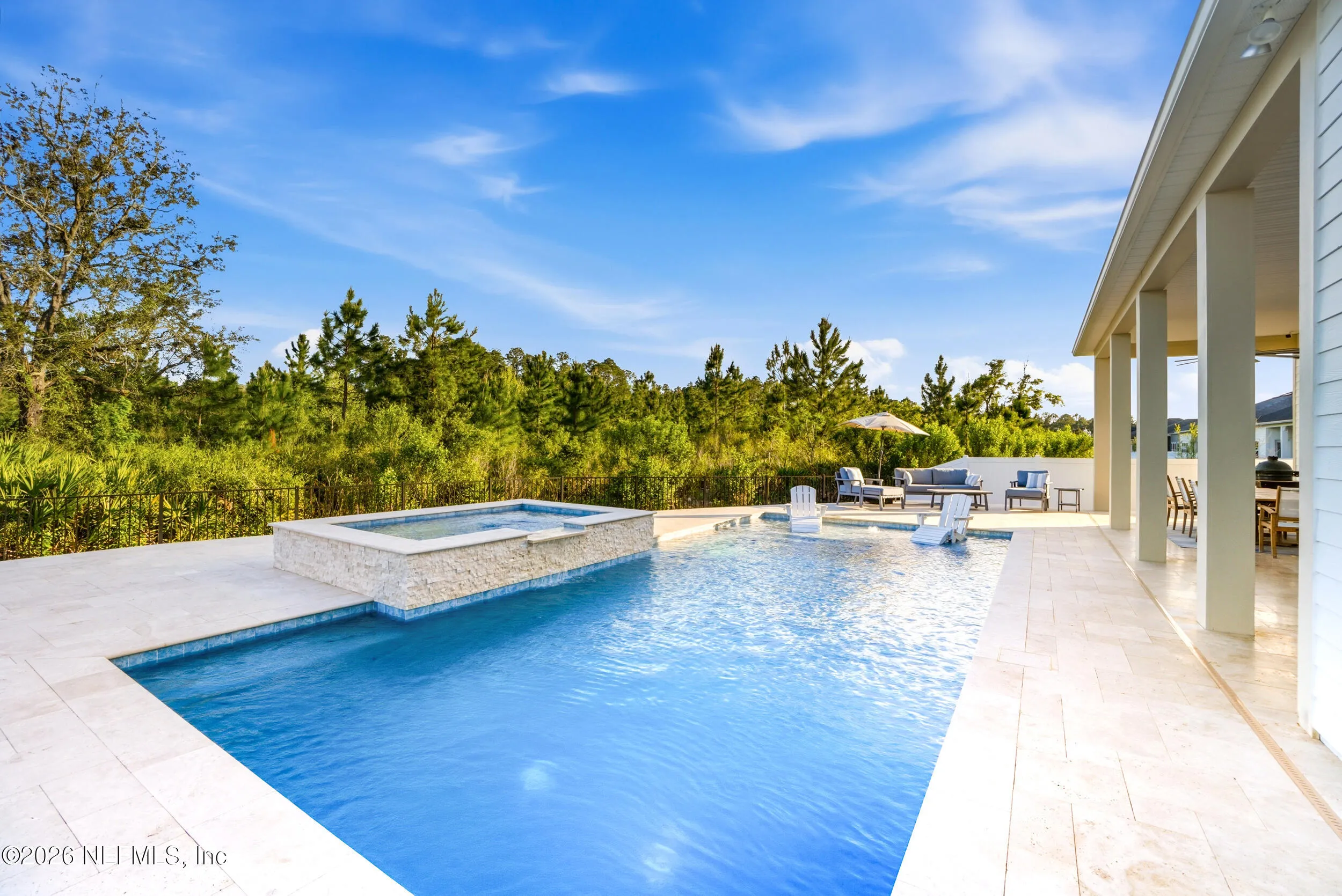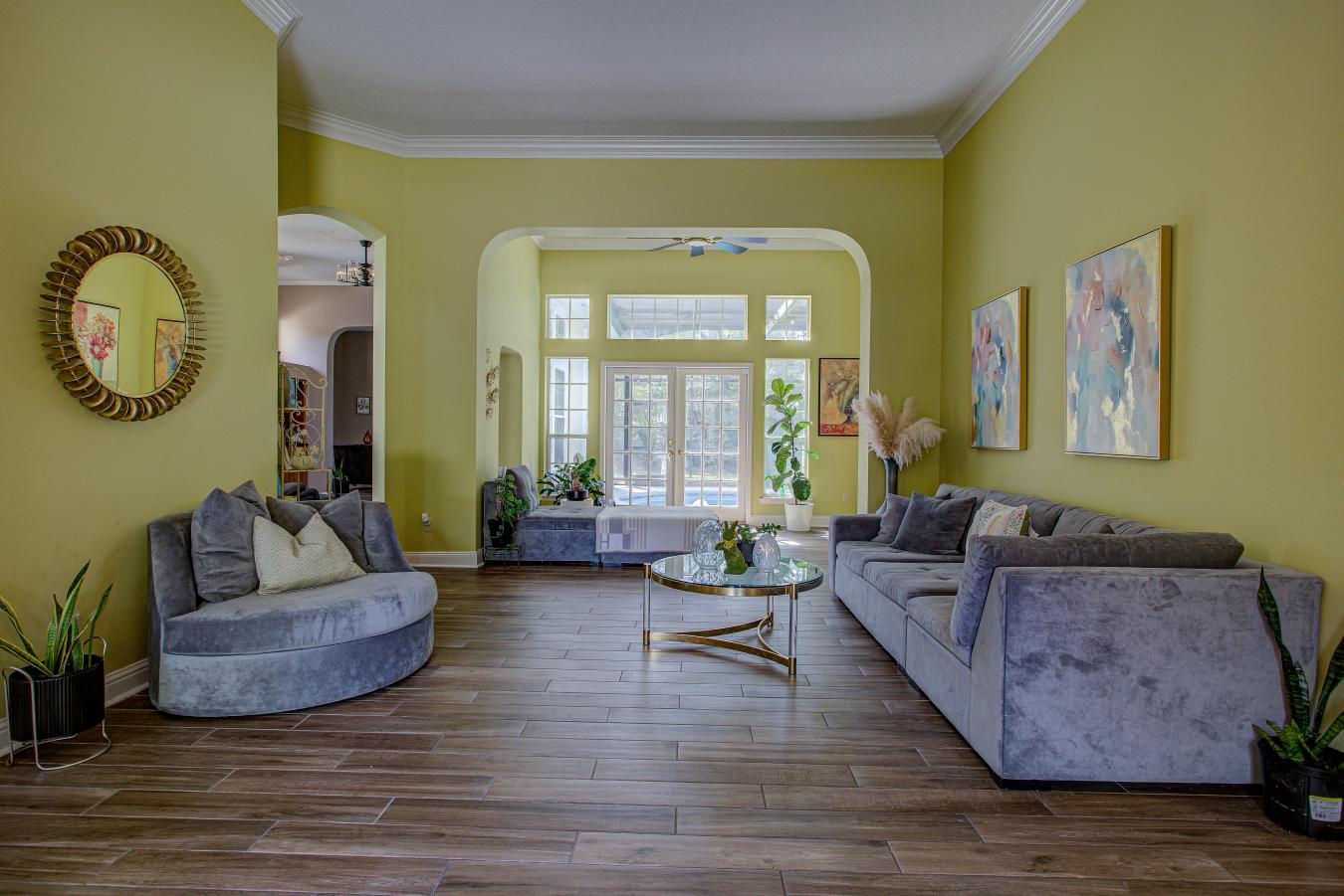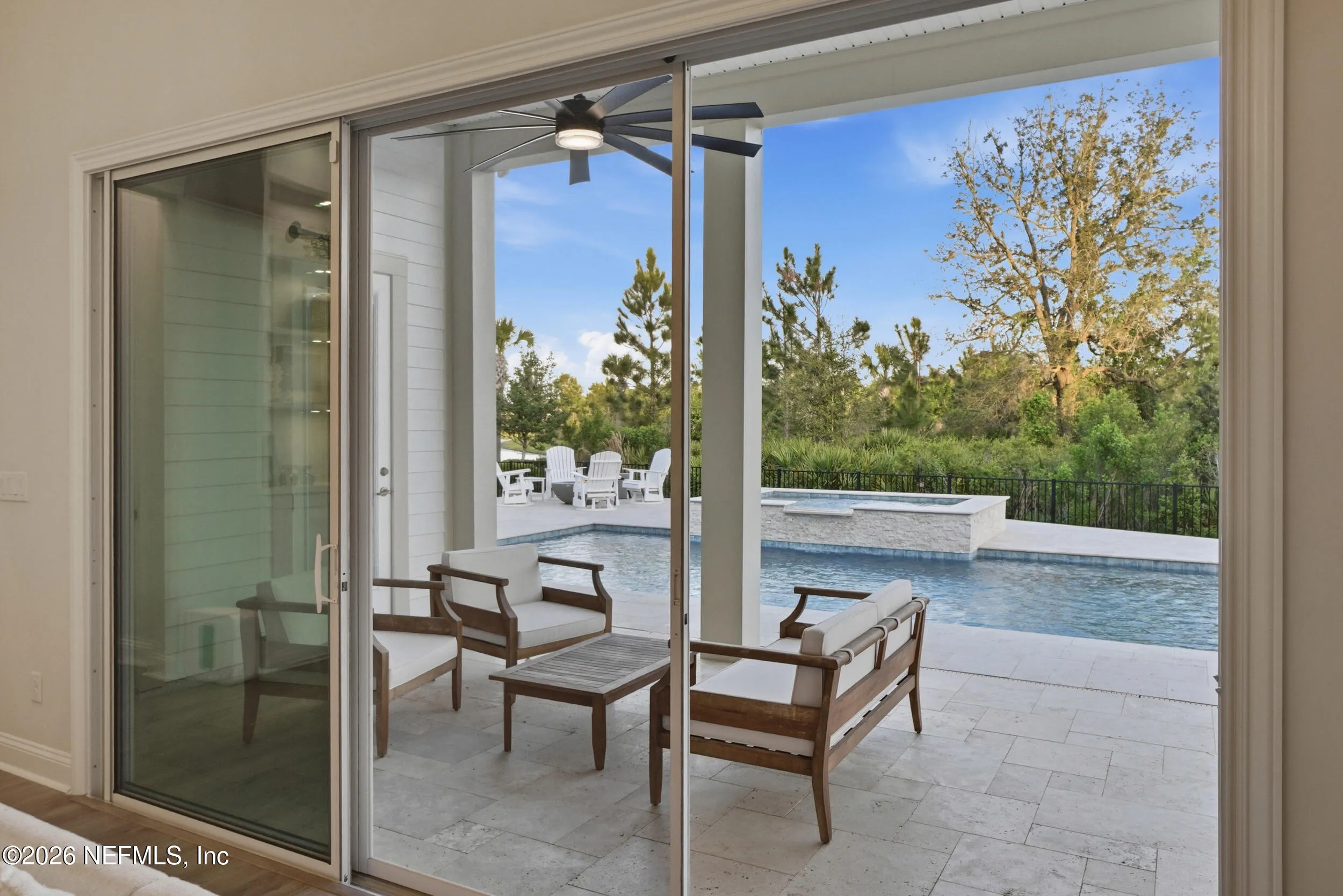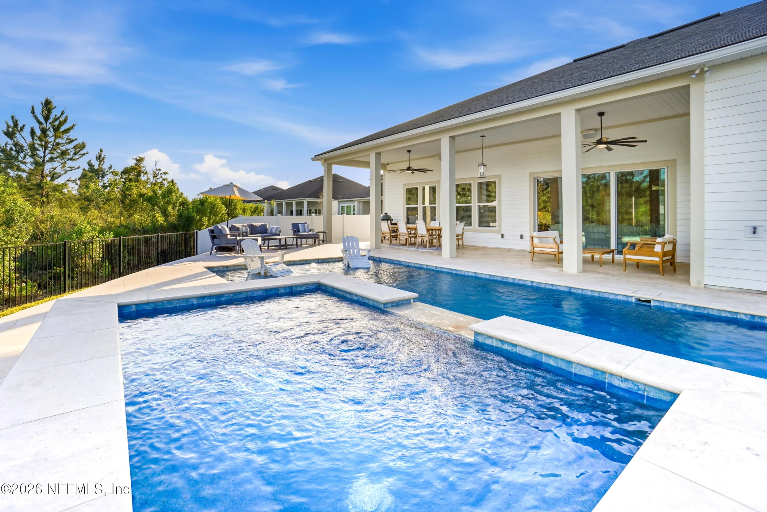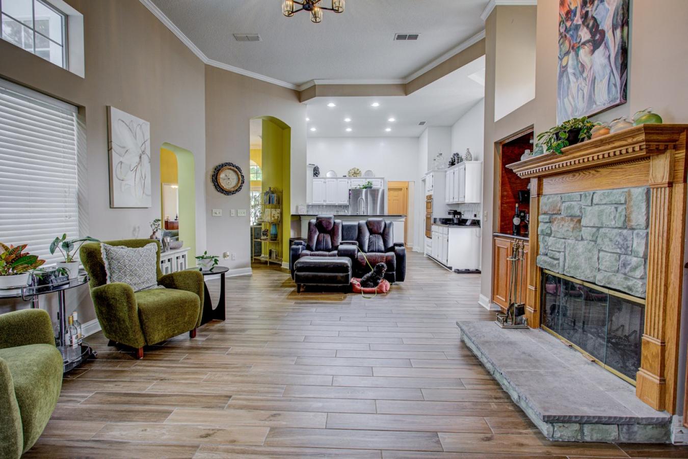 Deercreek Country Club presents a single-family home on a quiet cul-de-sac, occupying a .58-acre lot with serene wooded views, a private lake, a large screened lanai, and an in-ground pool. The home offers 2,984 square feet of living space with high-volume ceilings and an open-concept great room that flows into a formal living room and sunroom. The interior includes an office with a built-in window seat, a family room featuring wood floors, a wood-burning fireplace, and multiple built-ins, plus an adjoining first-floor bonus room. The formal dining room showcases architectural moldings and trim and connects seamlessly to the living areas. The kitchen, remodeled in 2020, boasts new stainless-steel appliances, granite countertops, a breakfast bar, a walk-in pantry, and a breakfast nook. The primary suite and additional bedrooms provide comfortable living arrangements, with layout designed for easy access between the living room, sunroom, lanai, and dining areas. Exterior highlights include a large screen lanai overlooking the private views and lake, along with the in-ground pool. The community features 24-hour manned gated security, a clubhouse with an indoor heated pool and spa, outdoor pool, fitness room, sauna, and courts for tennis, basketball, bocce ball, and pickleball. A boat ramp adjoins the Intracoastal Waterway, and there is a marina with boat slips (sold separately), as well as RV/Boat storage based on availability. Updates include a kitchen remodel in 2020, windows/sliders in 2020, and HVAC system upgrades with an air handler in 2016 and a condenser in 2023. The property is conveniently located minutes from historic St. Augustine and just steps to the beach.