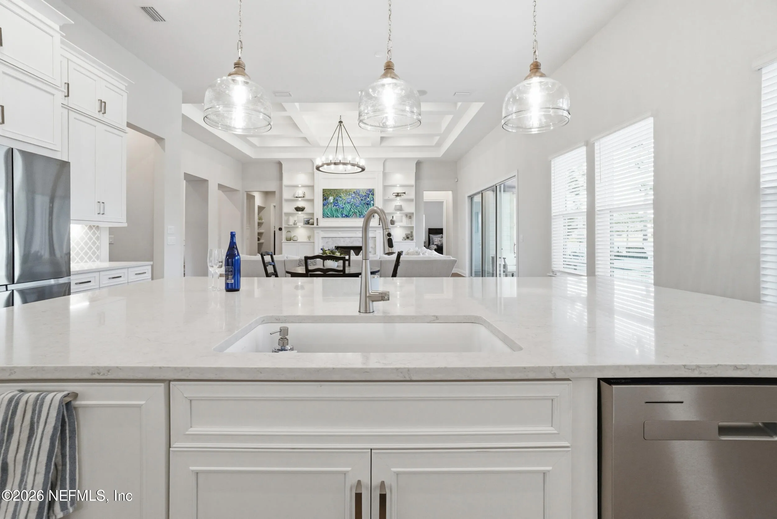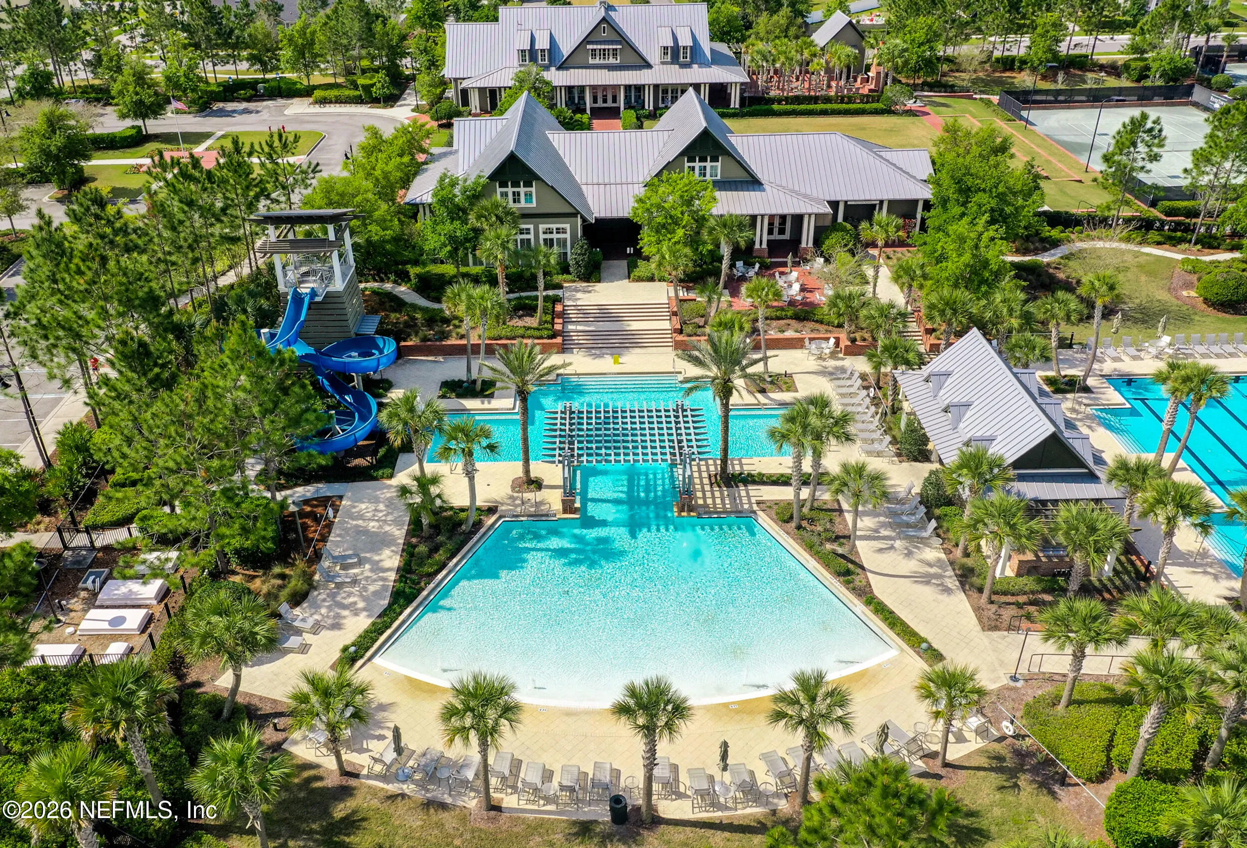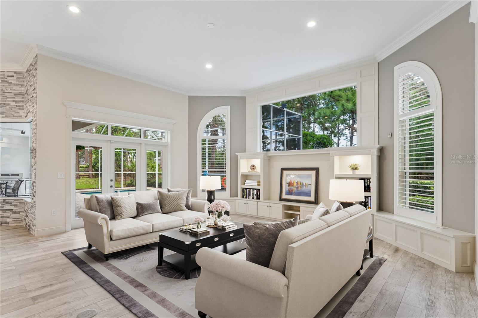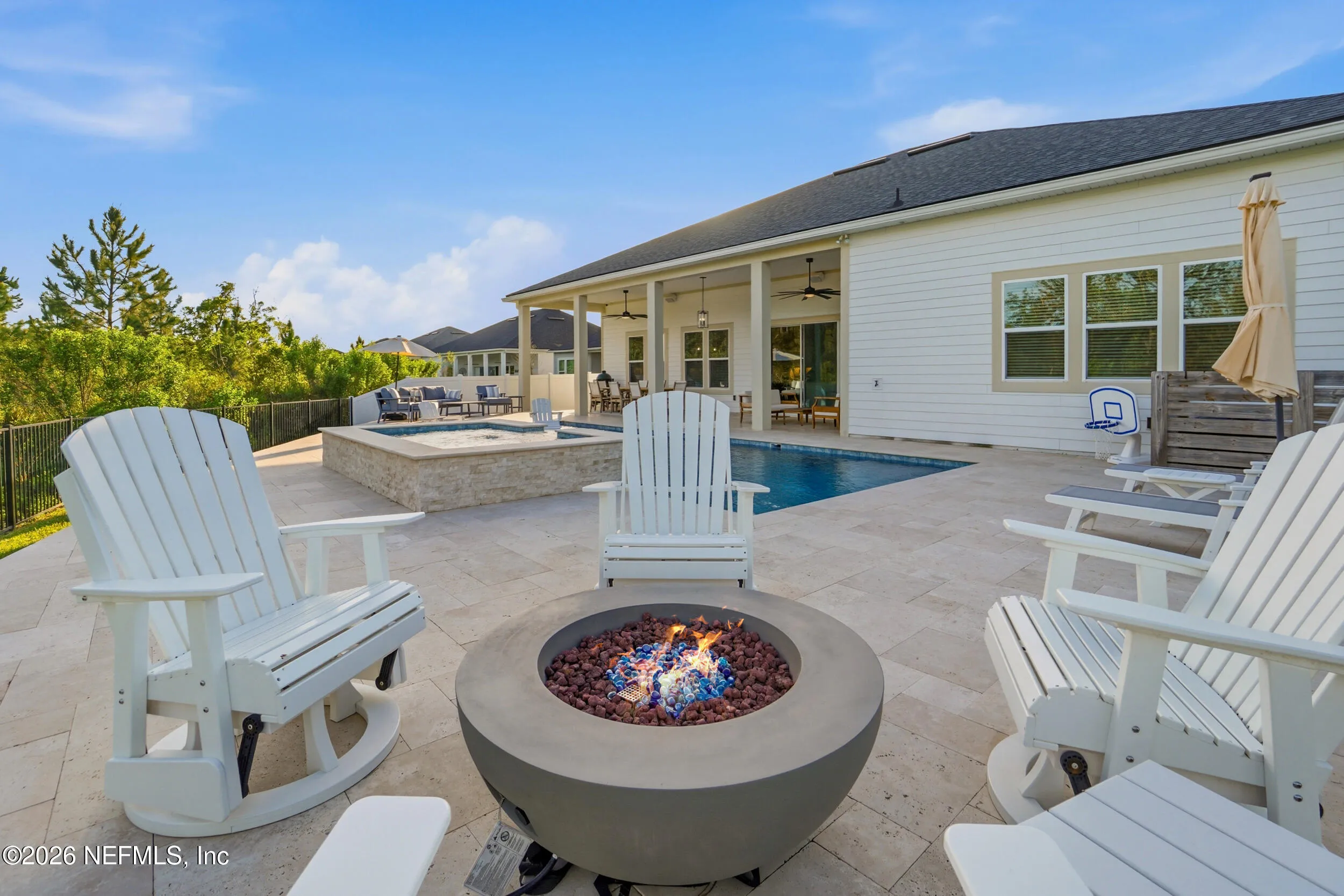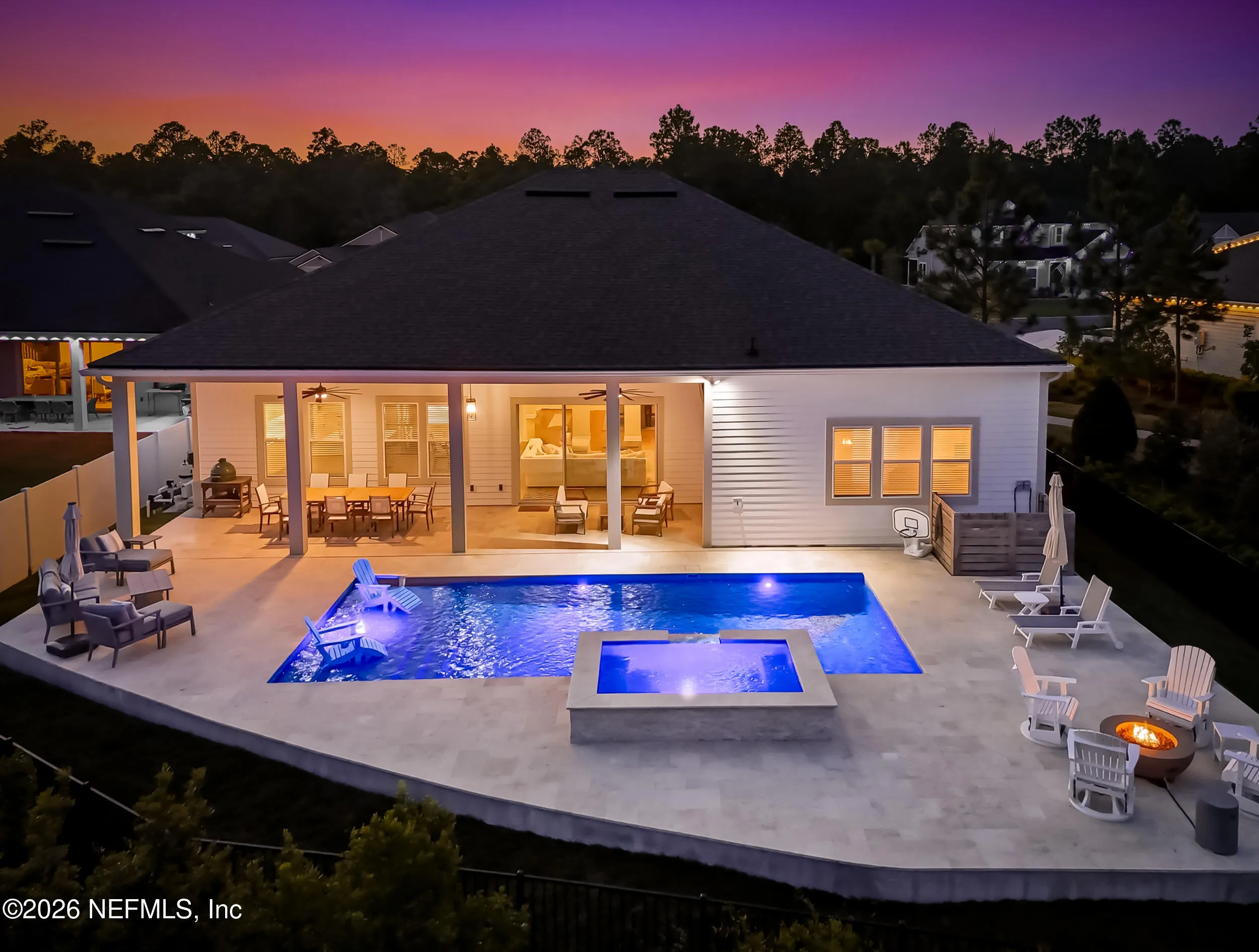 Deercreek Country Club presents a single-family home on a quiet cul-de-sac, occupying a .58-acre lot with serene wooded views, a private lake, a large screened lanai, and an in-ground pool. The home offers 2,984 square feet of living space with high-volume ceilings and an open-concept great room that flows into a formal living room and sunroom. The interior includes an office with a built-in window seat, a family room featuring wood floors, a wood-burning fireplace, and multiple built-ins, plus an adjoining first-floor bonus room. The formal dining room showcases architectural moldings and trim and connects seamlessly to the living areas. The kitchen, remodeled in 2020, boasts new stainless-steel appliances, granite countertops, a breakfast bar, a walk-in pantry, and a breakfast nook. The primary suite and additional bedrooms provide comfortable living arrangements, with layout designed for easy access between the living room, sunroom, lanai, and dining areas. Exterior highlights include a large screen lanai overlooking the private views and lake, along with the in-ground pool. The community features 24-hour manned gated security, a clubhouse with an indoor heated pool and spa, outdoor pool, fitness room, sauna, and courts for tennis, basketball, bocce ball, and pickleball. A boat ramp adjoins the Intracoastal Waterway, and there is a marina with boat slips (sold separately), as well as RV/Boat storage based on availability. Updates include a kitchen remodel in 2020, windows/sliders in 2020, and HVAC system upgrades with an air handler in 2016 and a condenser in 2023. The property is conveniently located minutes from historic St. Augustine and just steps to the beach.