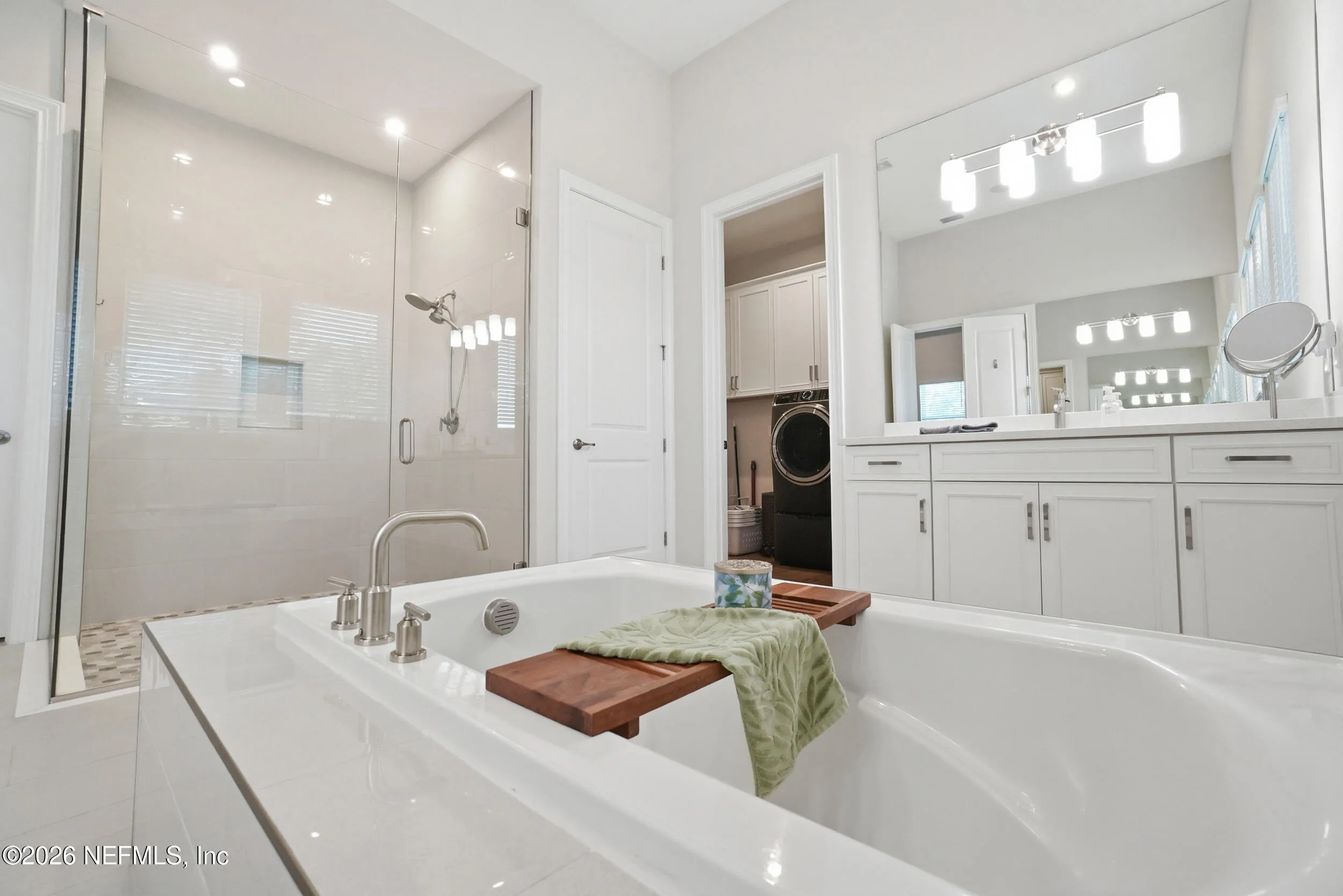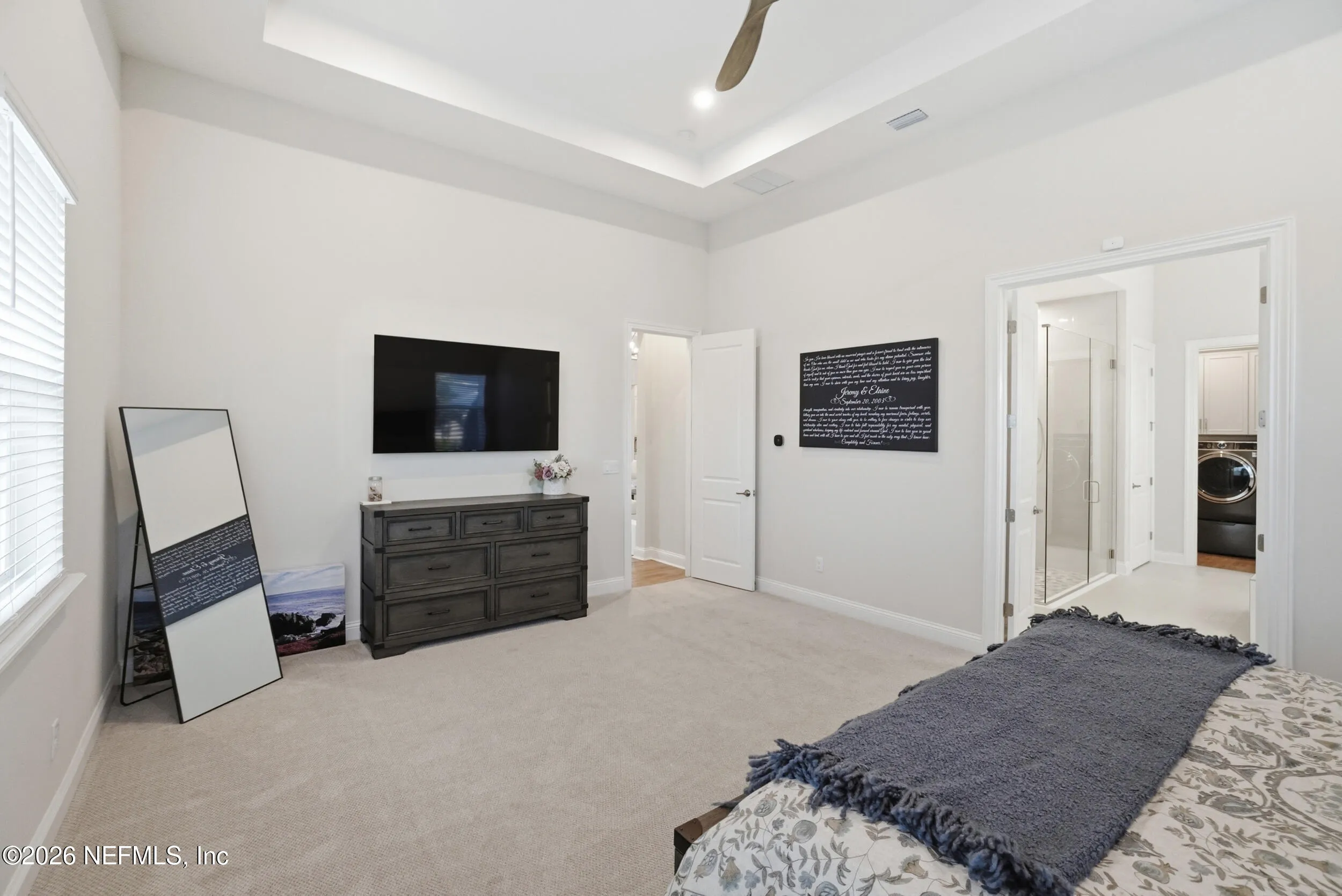 Set in the heart of Rivertown, this stunning Iris floor plan delivers elevated design and a true resort-style lifestyle. Offering 4 bedrooms, 3.5 baths, 3,390 sq ft, and a 3-car garage, this home is filled with high-end finishes including luxury vinyl plank flooring, custom built-ins, tray ceilings, designer lighting, and a gas fireplace with marble surround. The chefs kitchen is designed to impress with quartz countertops, gas cooktop, double ovens, an oversized island, butlers pantry, walk-in pantry, and wet bar with wine fridge. The primary suite offers a spa-like bath with soaking tub, walk-in shower, and direct laundry access through the closet. Step outside to a private backyard retreat featuring a pool, spa, and dedicated outdoor bath. Ideally located along the golf cart path, enjoy effortless access to Rivertowns riverfront amenities, trails, dining, and everyday convenience.