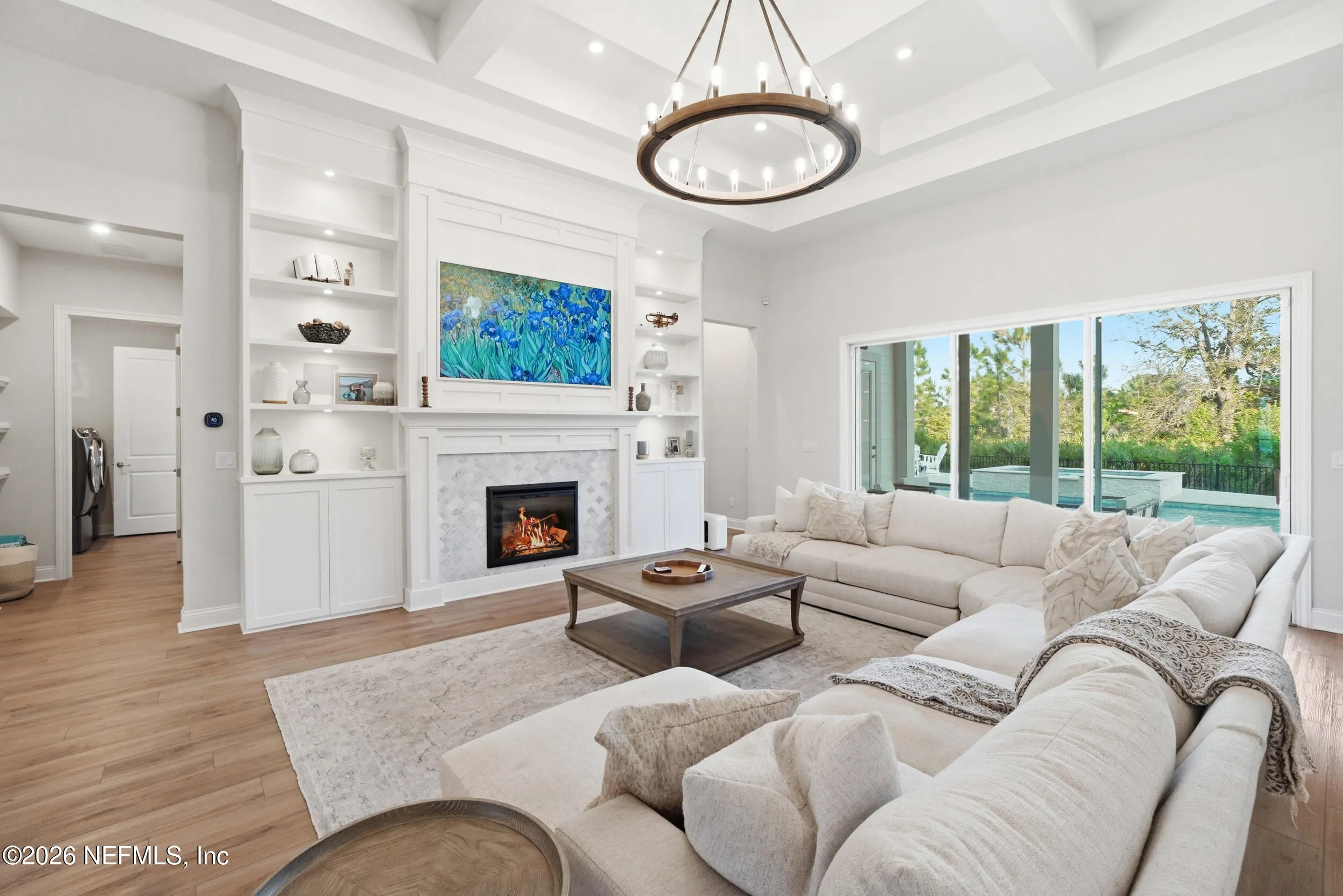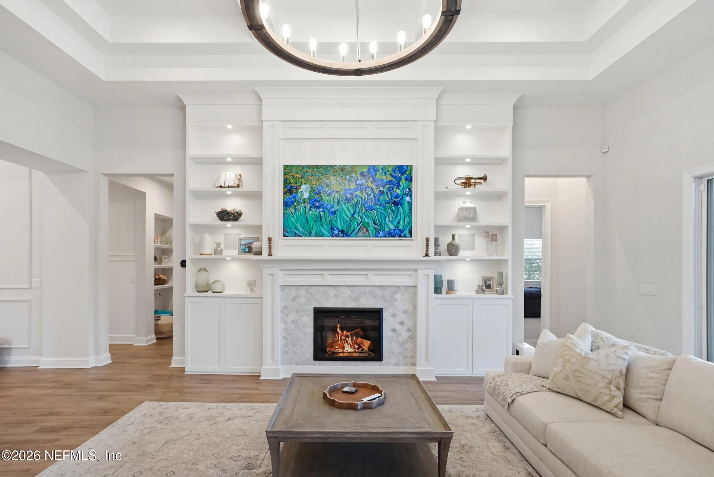 Set in the heart of Rivertown, this stunning Iris floor plan delivers elevated design and a true resort-style lifestyle. Offering 4 bedrooms, 3.5 baths, 3,390 sq ft, and a 3-car garage, this home is filled with high-end finishes including luxury vinyl plank flooring, custom built-ins, tray ceilings, designer lighting, and a gas fireplace with marble surround.